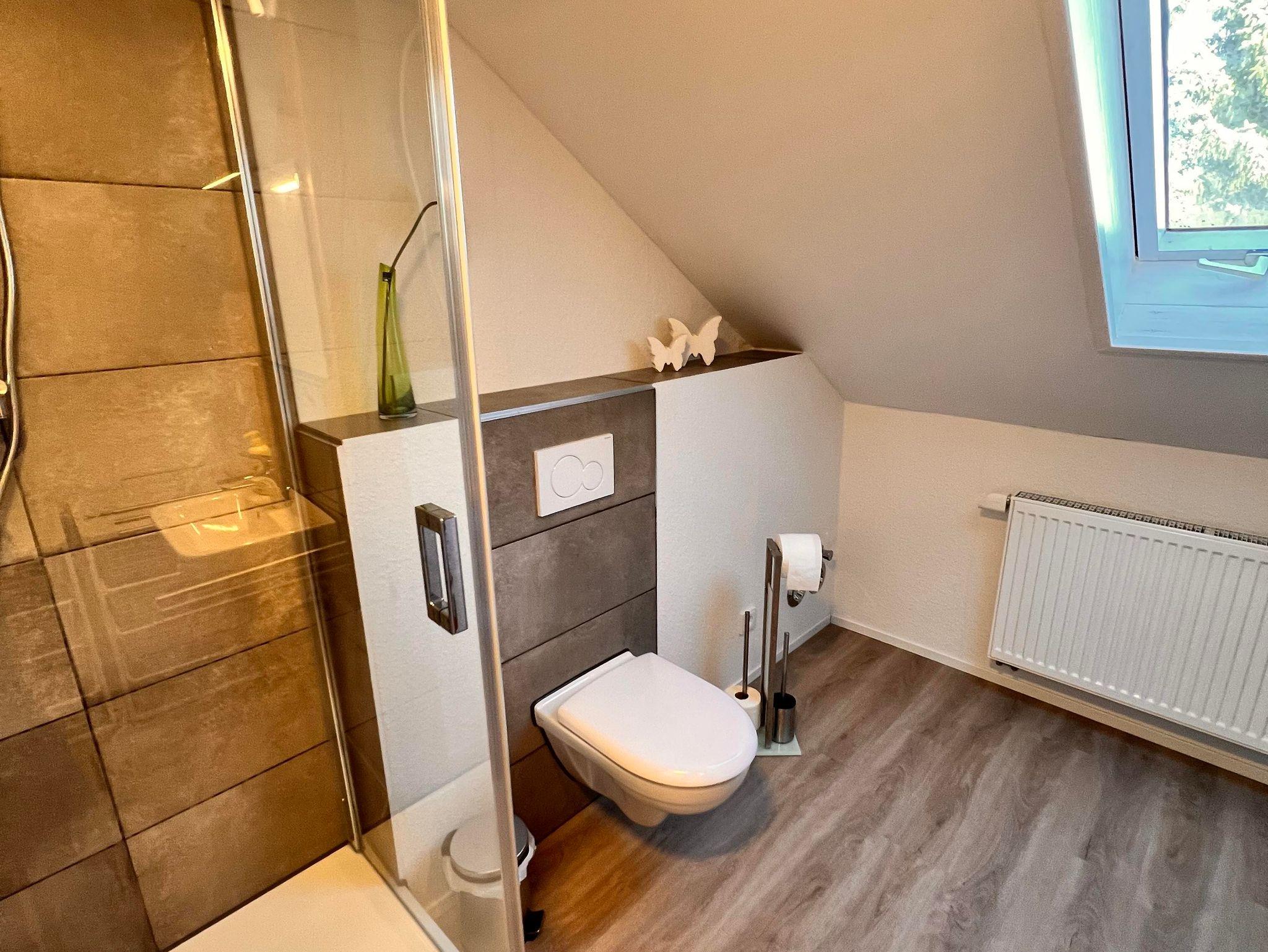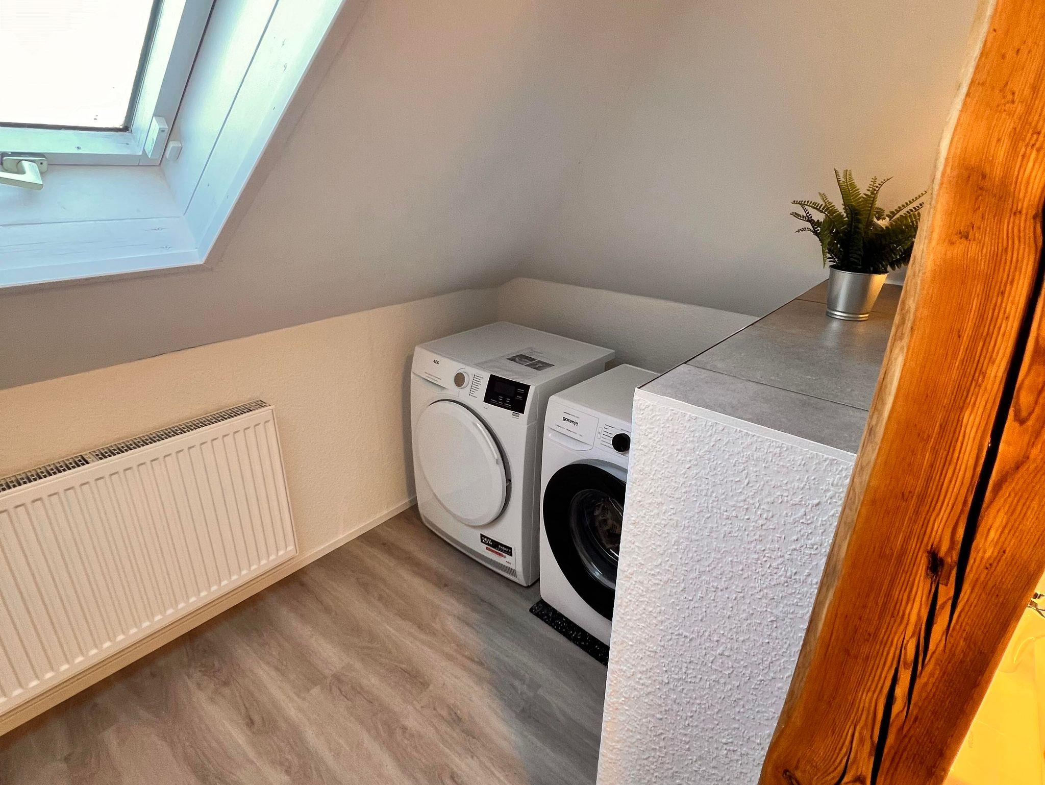Komfort, der keine Wünsche offen lässt! Das moderne Badezimmer ist mit einer erfrischenden Dusche, einem Haartrockner und einer praktischen Waschmaschine ausgestattet – für zusätzlichen Komfort während Ihres Aufenthalts. Und damit Sie sich rundum wohlfühlen, stellen wir Ihnen selbstverständlich frische Handtücher und Bettwäsche zur Verfügung.