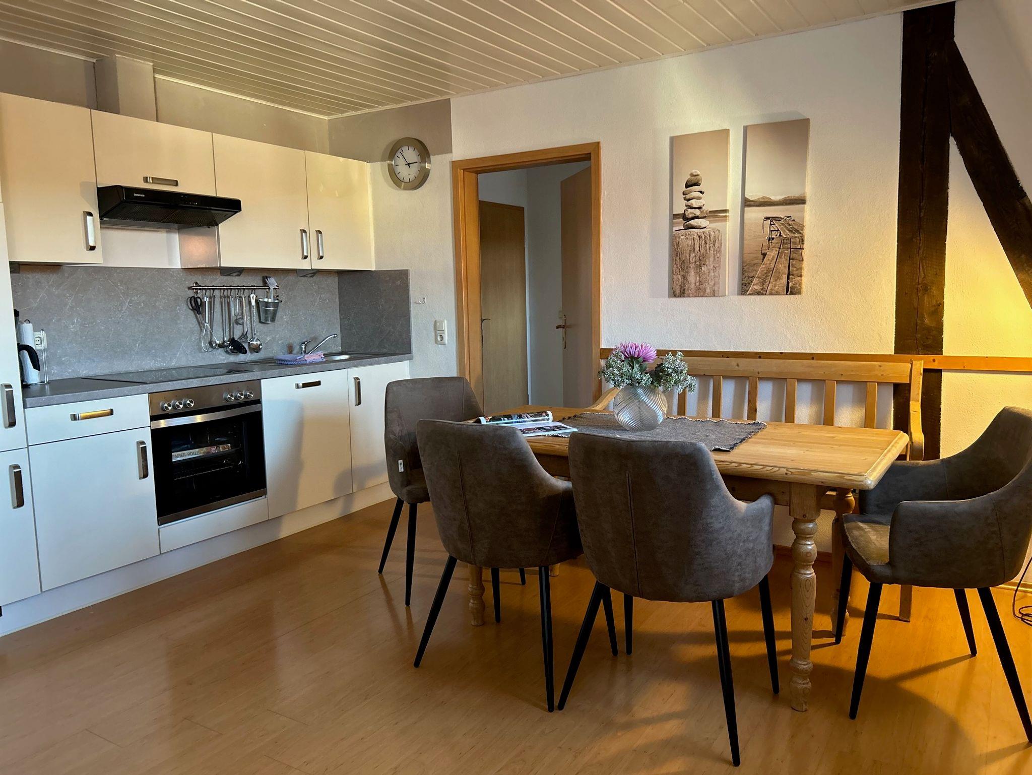 Ökonomiehof, Ferienwohnung Schmiede mit gemütlicher Essecke und Sofa