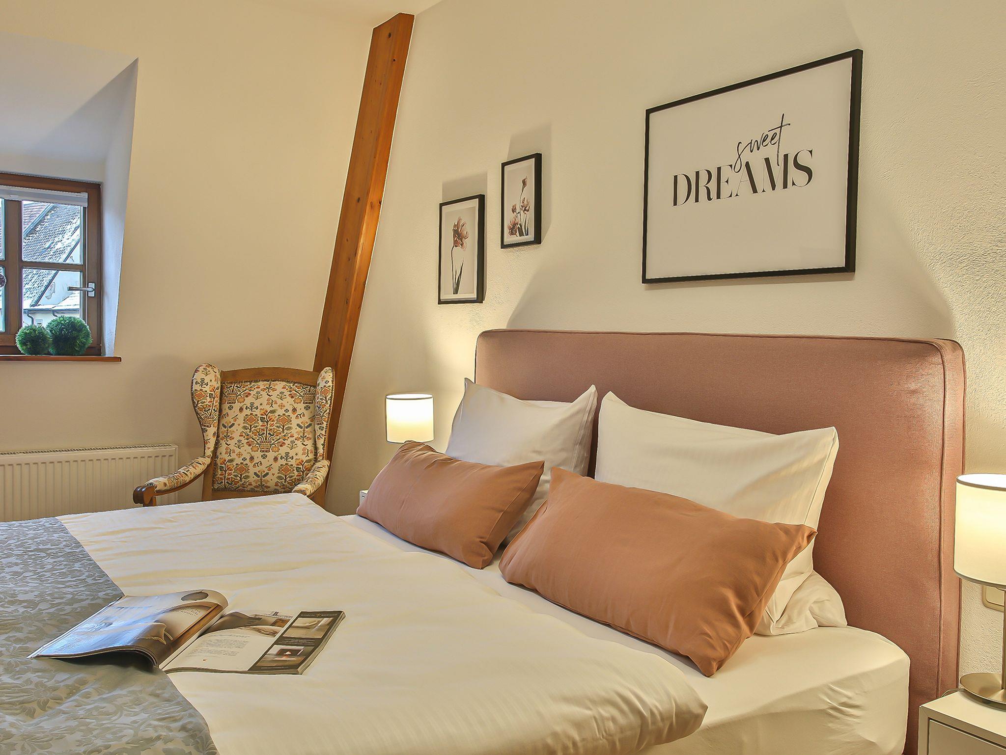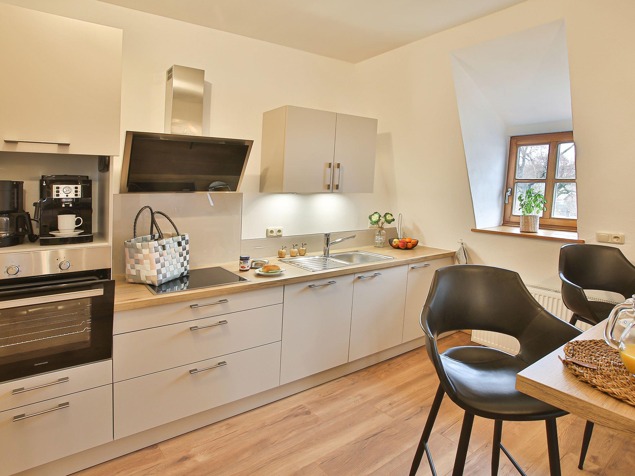 Ferienwohnung Klosterloft bietet für 1-6 Personen Platz und hat 140m². Es gibt ein DZ/TV, ein Zweibettzimmer, ein Loftzimmer mit zwei Einzelbetten. Wohnküche mit gemütlicher Essecke und Sofa /TV, Esszimmer mit großem Tisch, 1 Dusche/WC, 1 WC. Küche ist ausgestattet mit Induktionsherd, Backofen, Spülmaschine, Kühlschrank mit Gefrierfach, Toaster, Wasserkocher, Kaffeevollautomat. Bettwäsche und Handtücher sind vorhanden. Kostenlose Kinderausstattung auf Anfrage