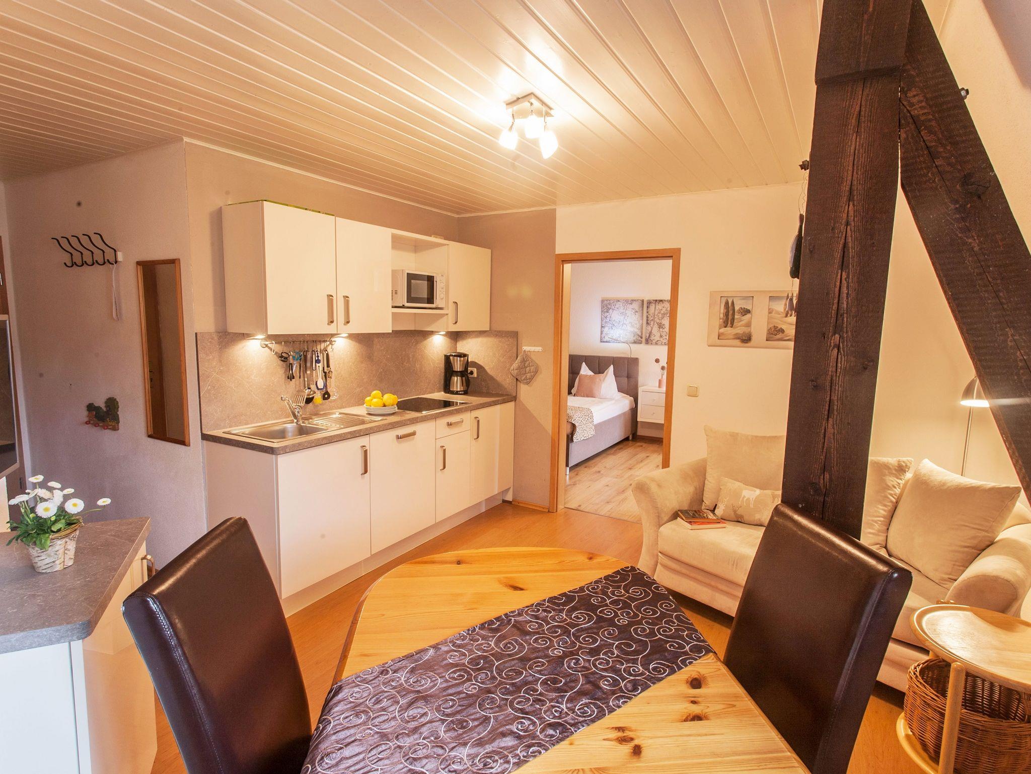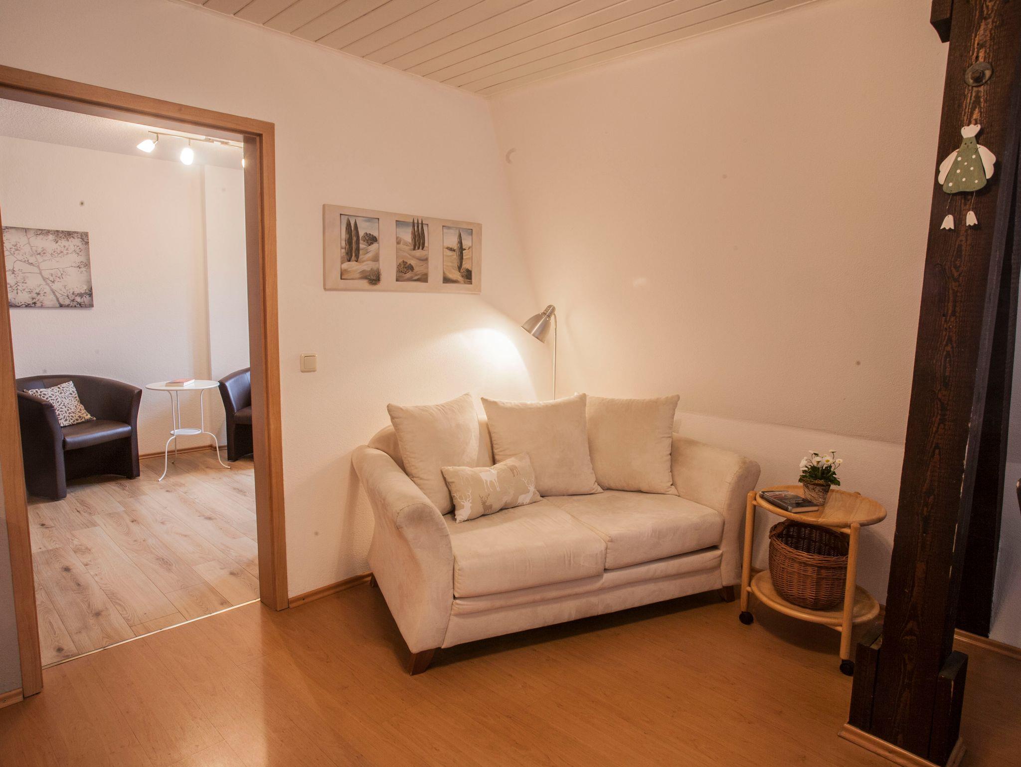 Ökonomiehof, Ferienwohnung Blauer Turm mit gemütlicher Essecke und sofa