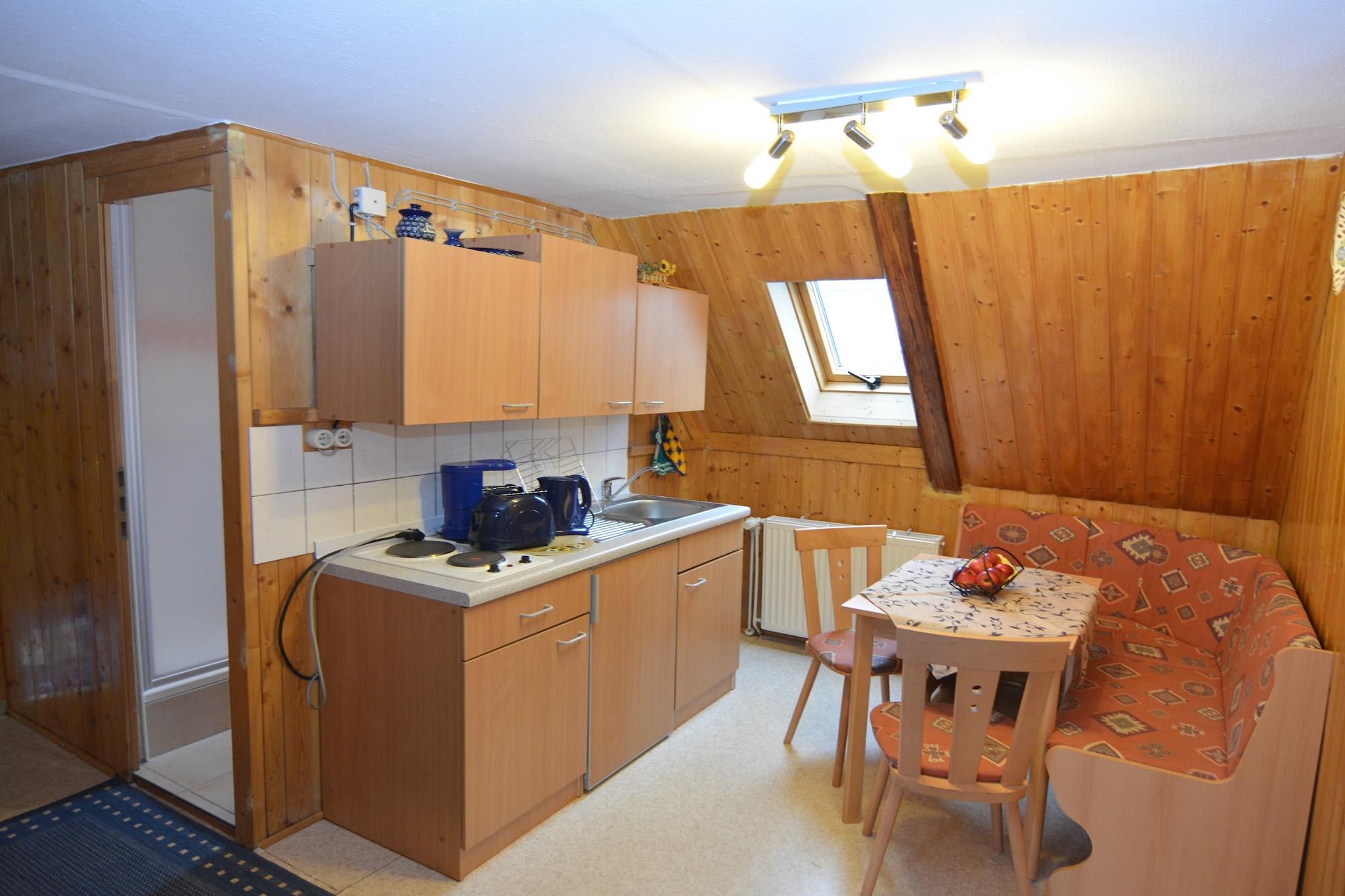 Set in the peaceful village of Lichtenhain, this expansive second-floor apartment is perfect for families or groups of up to 8 guests. With four bedrooms, including three with double beds (190 x 200 cm), it offers ample space for a comfortable stay. The home features two kitchens—both equipped with 2-ring electric stoves, microwaves, fridges, and filter coffee machines—ideal for preparing meals for a crowd. The living room and living/dining room each include a satellite TV, providing space to relax and unwind. The bathroom includes a shower, washbasin, and toilet, and heating ensures comfort in all seasons. Guests can enjoy a shared 1000 m² garden with a charcoal barbecue, pond, play equipment, and table tennis table—great for children and adults alike. A children’s bed and high chair are available, and parking is provided on-site. Located just 500 m from shops, restaurants, and public transport, and close to forests, horse riding, and ski slopes, this home is a fantastic base for exploring Saxon Switzerland year-round.