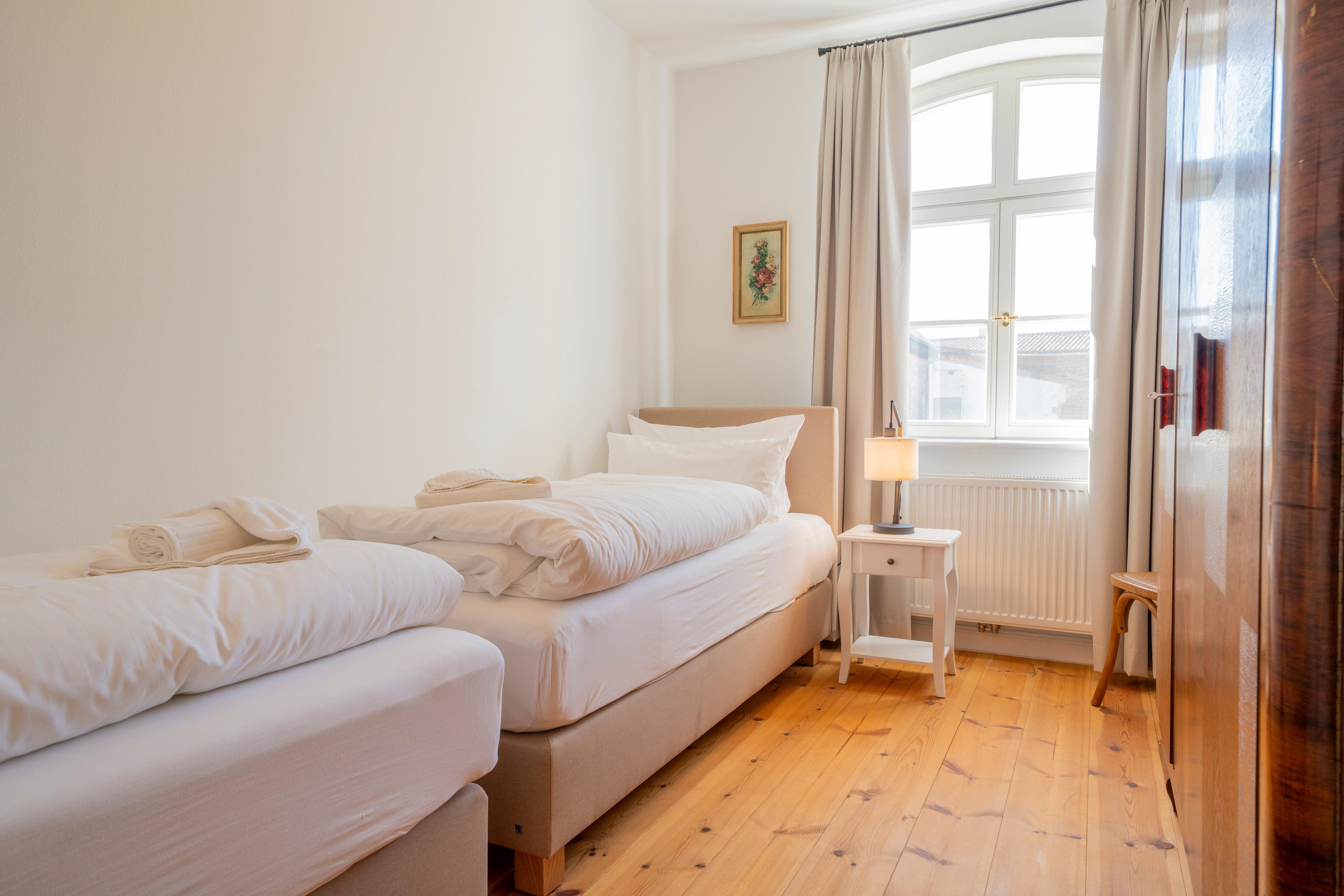 Schlafzimmer: 2 Zimmer mit Doppelbetten, 1 Zimmer mit 2 Einzelbetten – für erholsame Nächte.