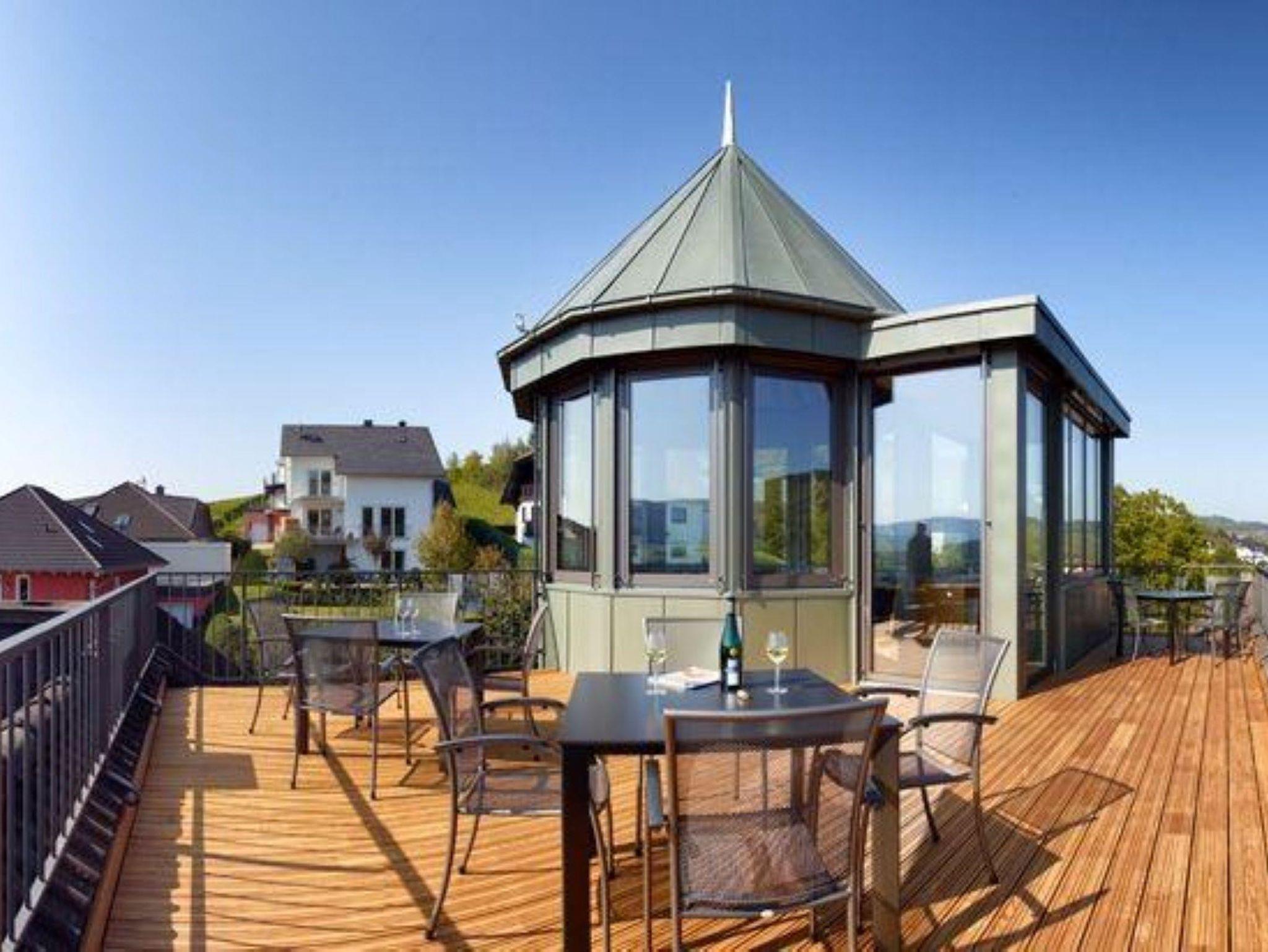 Nach einem Tag Wandern oder Fahrradfahren können Sie im Garten oder im Panorama-Turm oder auf der fantastischen Dachterrasse entspannen und ein hervorragendes Glas Wein vom eigenen mehrfach ausgezeichneten Weingut genießen und ins Moseltal blicken.
