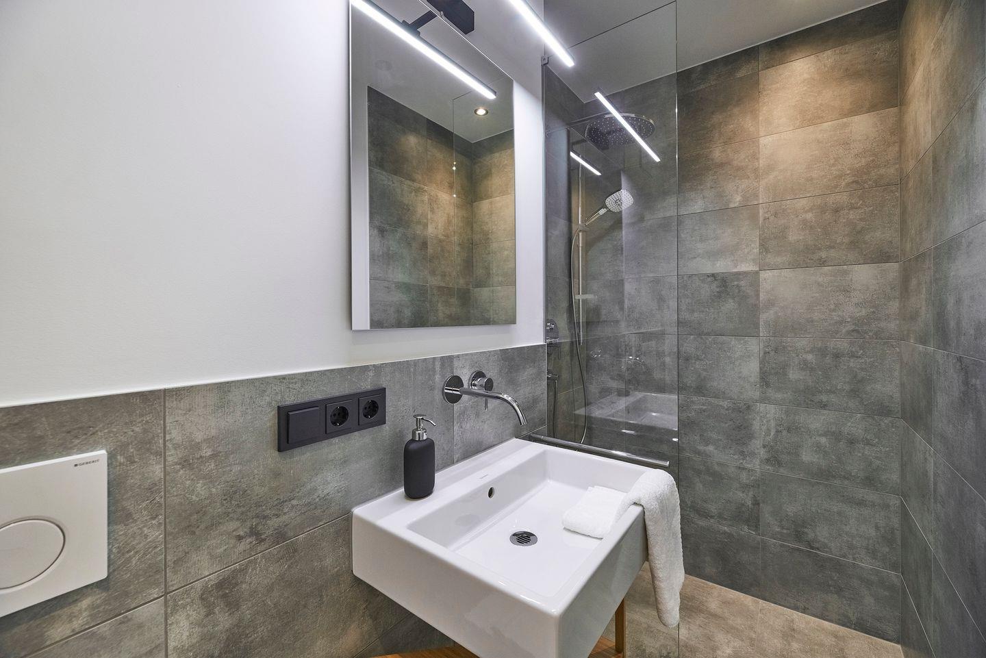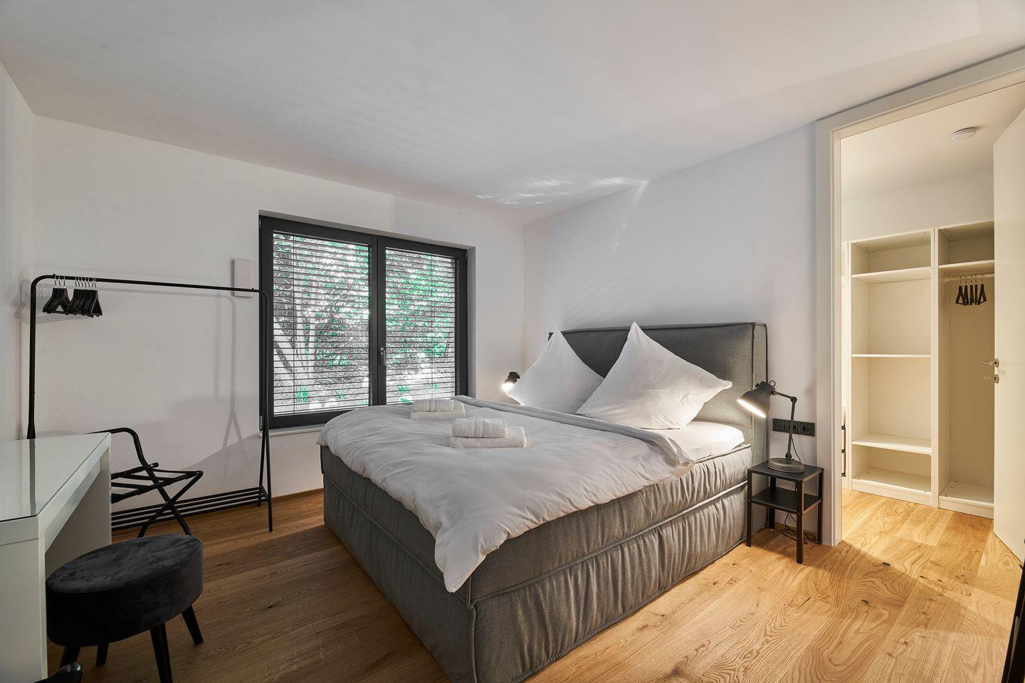 Die Inneneinrichtung präsentiert sich mit sorgfältig ausgewählten Möbeln und Dekorationselementen. Die Kombination aus hochwertiger Design-Ausstattung und exklusiver Einrichtung macht die Ferienwohnung zu einem Rückzugsort, der den Bedürfnissen von Paaren und Familien gerecht wird, ohne dabei auf Stil und Luxus zu verzichten. Annehmlichkeiten wie WLAN, Smart-TV, ein Safe und hochwertiger Eichenparkett mit Fußbodenheizung in den klimatisierten Räumen sorgen für Luxus und Komfort. Im separaten Hauswirtschaftsraum haben Sie Zugang zu einer Waschmaschine.