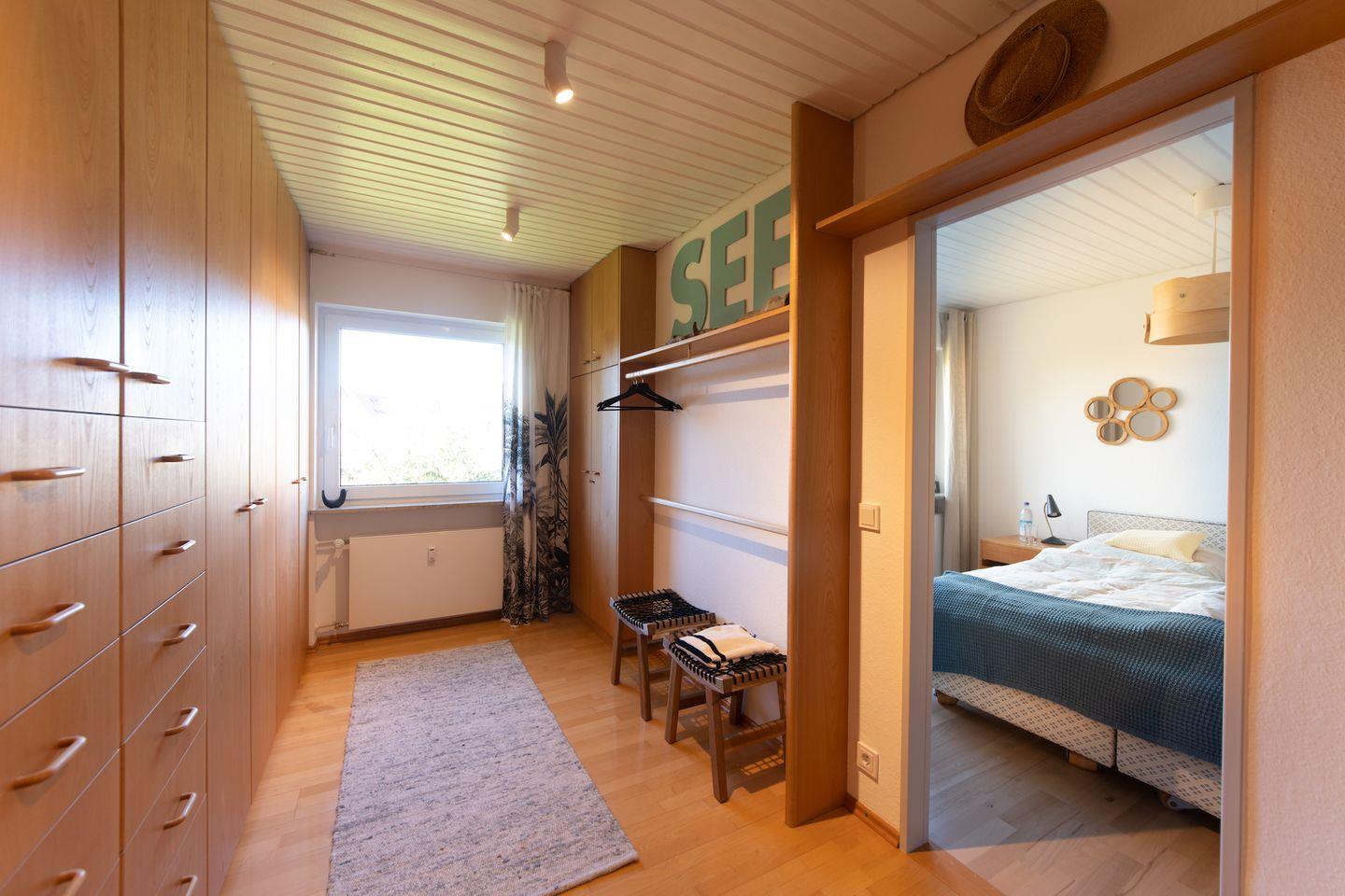 Das Wohnzimmer lädt mit seinem gemütlichen Ambiente zum Entspannen ein. Des Weiteren gibt es zwei Schlafzimmer mit komfortablen Doppelbetten und geräumigen Kleiderschränken, um Ihre persönlichen Gegenstände unterzubringen. Zusätzlich verfügt die seenahe Ferienwohnung über 2 Balkone.