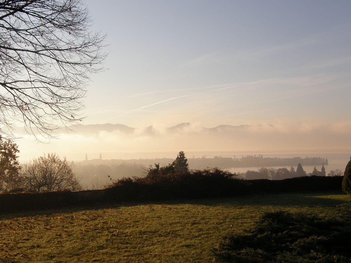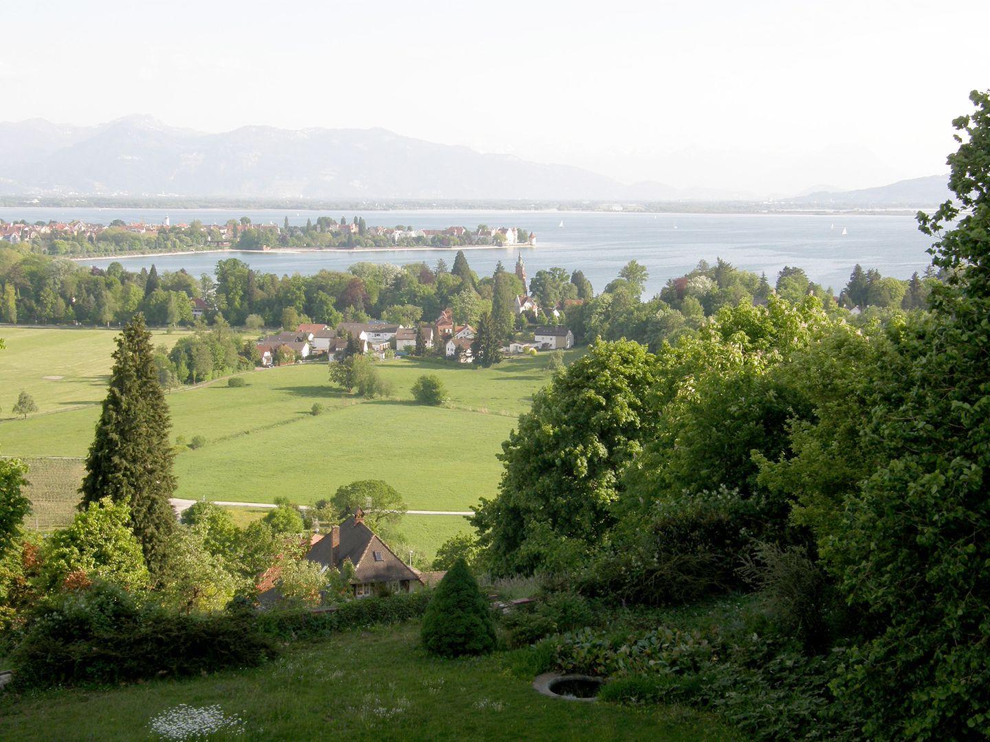 Schönste Aussicht auf Erholung: Der einzigartige Blick auf den Bodensee, vom Pfänder über die Lindauer Insel bis hin zum Schweizer Säntis Massiv sucht seines gleichen. Umgeben von naturgeschützten unbebauten Hängen und einem gewachsenen Umfeld bietet die Alleinlage der Villa Hoyerberg Ruhe und Erholung, nicht mitten drin und trotzdem nah dran.