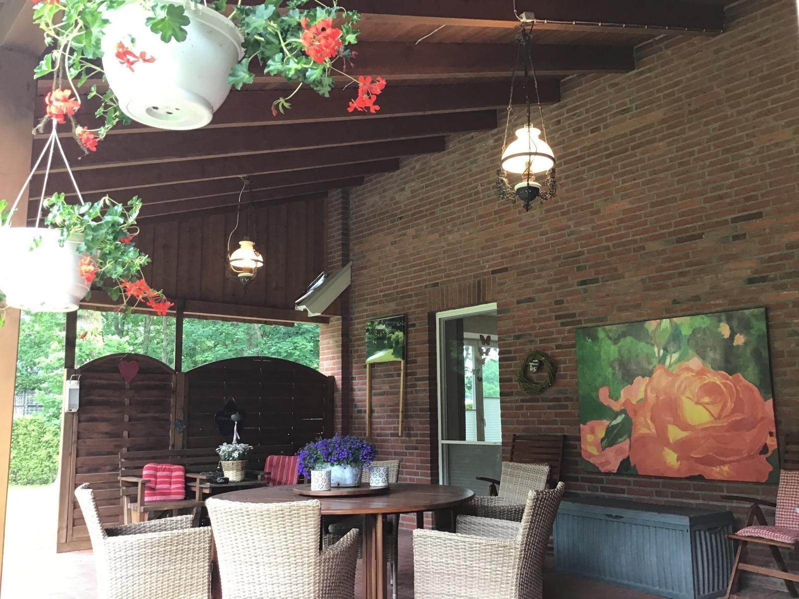 Herzlich Willkommen in unserer 5 Sterne Ferienwohnung "Beim Rosengarten" in Holthaus, einem Ortsteil der Gemeinde Lindern. Erleben Sie Ihren Urlaub in unserer komfortablen Nichtraucherwohnung. Auf 80 qm Wohnfläche bieten wir Ihnen eine Menge Komfort für 4 Personen. Unsere Ferienwohnung ist separat in einem 2009 komplett neu ausgebautem Gebäude auf unserem Hof untergebracht und teilt sich auf in 1 Wohnstube mit offenem Durchgang zur voll ausgestatteten Küche, Flur, 2 Schlafzimmer und 1 Badezimmer. Vom Wohnzimmer aus gelangt man direkt auf die 35 qm große überdachte Terrasse mit Blick auf den Rosengarten. Die Wohnung ist barrierefrei und senioren- und kindgerecht eingerichtet. Haustiere können leider nicht mitgebracht werden, da auch an Allergiker vermietet wird.