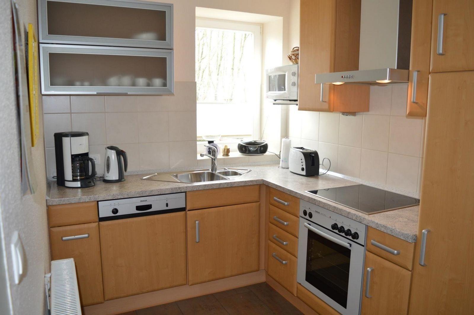 Die vollständig eingerichtete Küche (Backofen, 4-Zonen-Cerankochfeld, Kühlschrank mit Gefrierfächern, Spülmaschine, Mikrowelle, Kaffeemaschine, Wasser- und Eierkocher, Toaster etc.) ist durch einen offenen Durchgang mit dem Wohnzimmer verbunden. Ein Hochstuhl kann auf Wunsch zur Verfügung gestellt werden. Einkaufsmöglichkeiten für Ihren täglichen Bedarf finden Sie in der näheren Umgebung in Lindern oder Werlte.