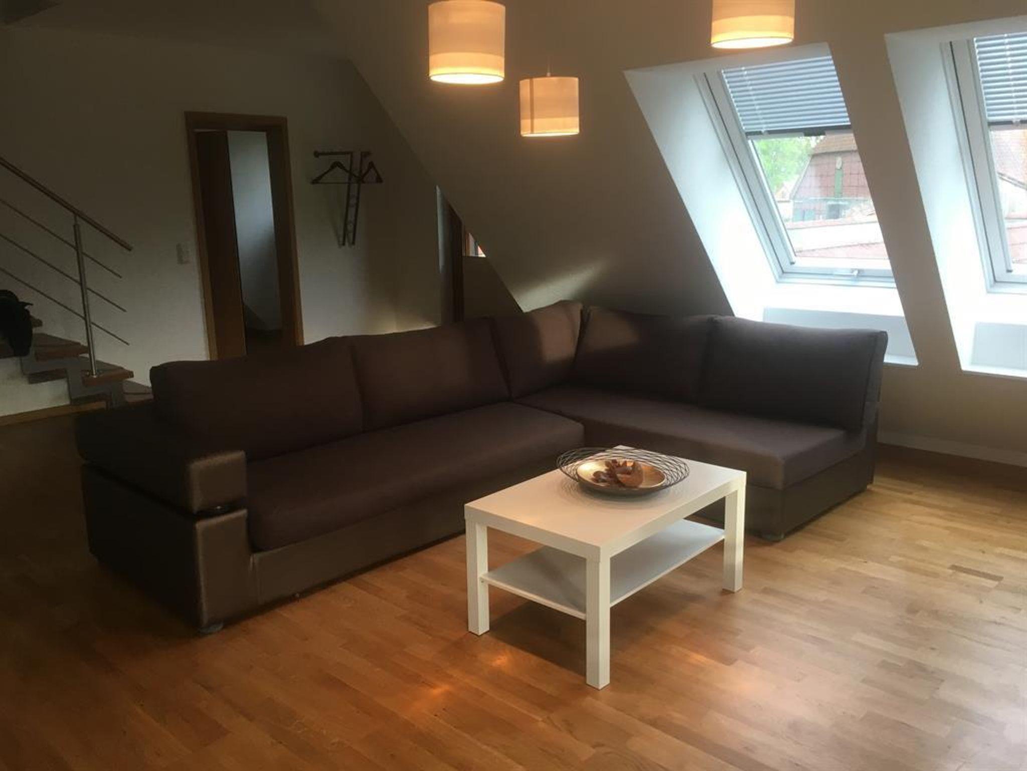 Größe: 71 qm: Wohn-/Esszimmer mit Wohnküche, 1 Schlafzimmer mit Doppelbett, 1 Badezimmer (jeweils mit Dusche / WC). Option der zusätzlichen Nutzung des Dachgeschosses (Einzelbett) zzgl. 35 qm (dann insgesamt 106 qm).