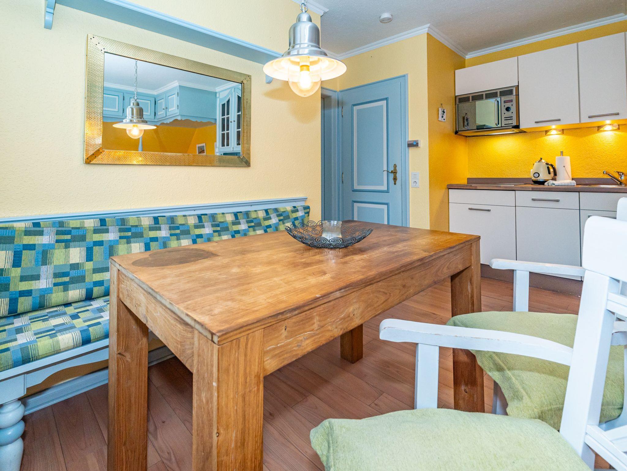 Im 1. Obergeschoss befindet sich das vierte Apartment. Der Wohn- und Essbereich mit 2 Schlafkojen sowie das separate Schlafzimmer mit 2 Schlafkojen bieten auf insgesamt 50 Quadratmeter Platz für 4 Personen. Das Badezimmer ist ausgestattet mit Dusche, WC und Waschbecken.
