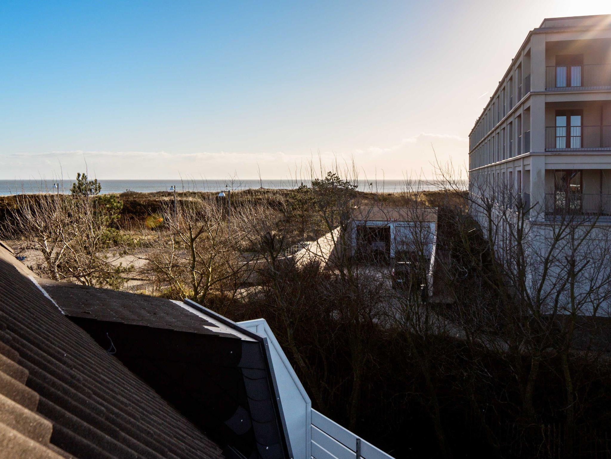 geschnittene Balkon mit Blick auf das Wattenmeer.