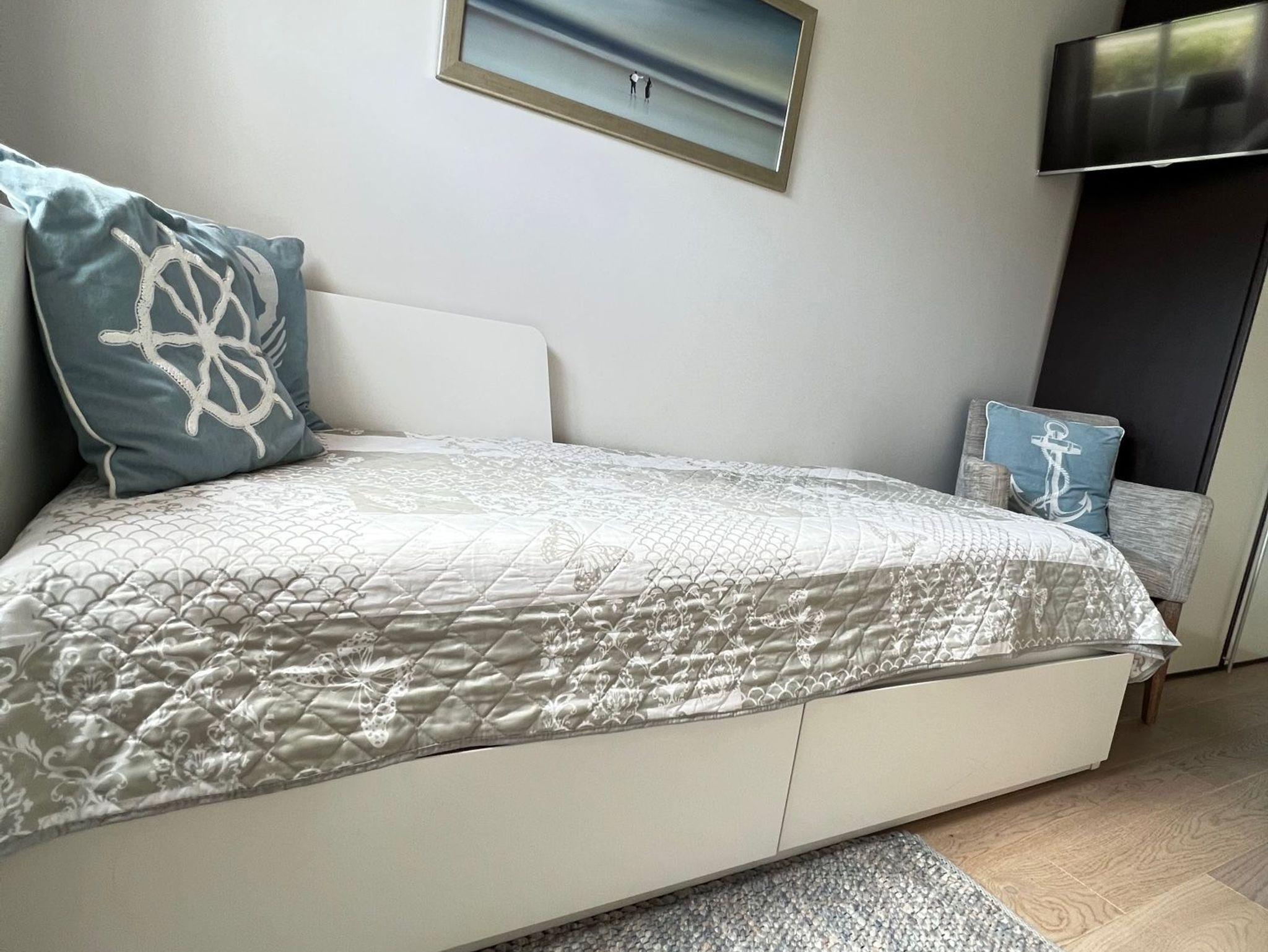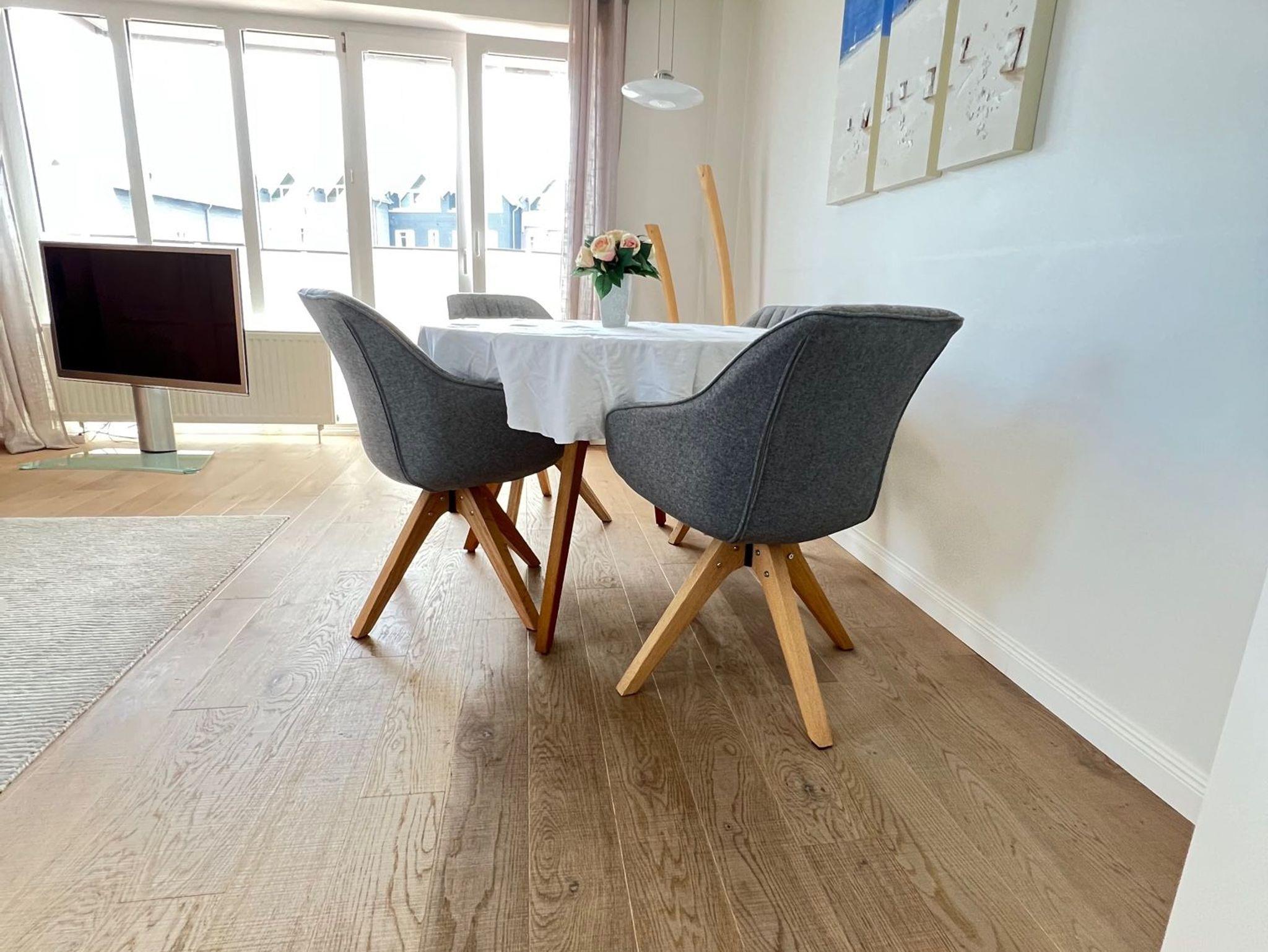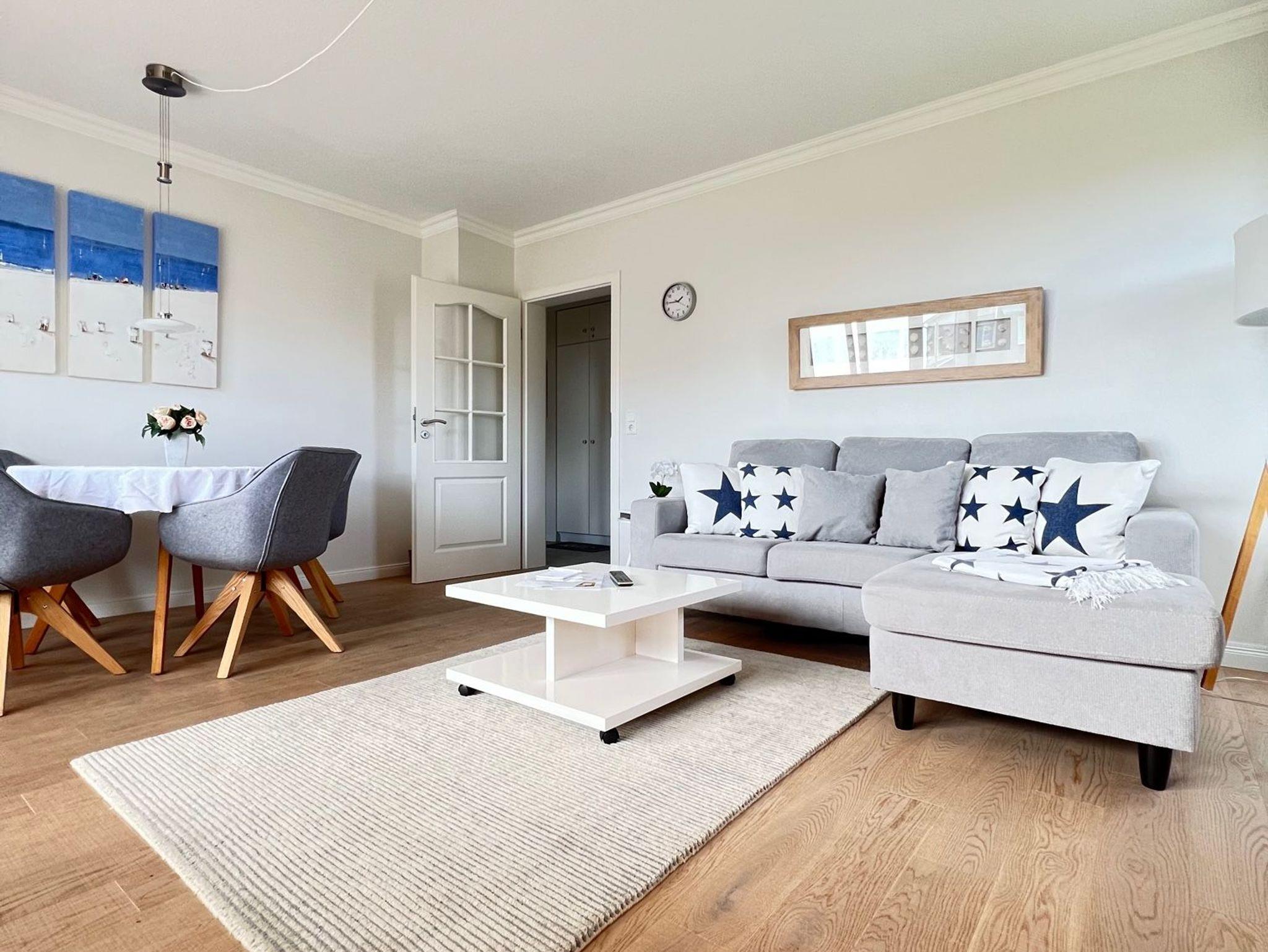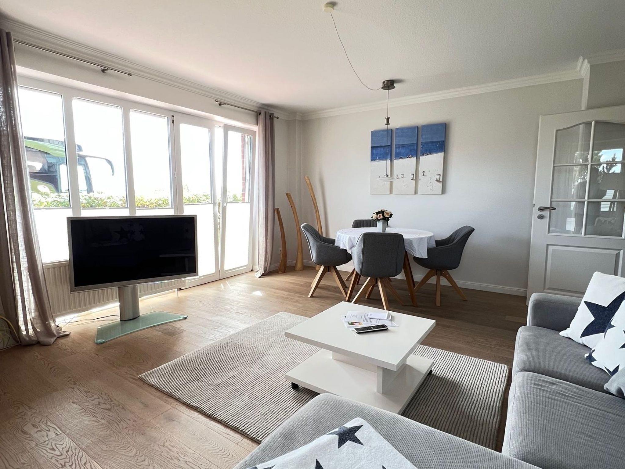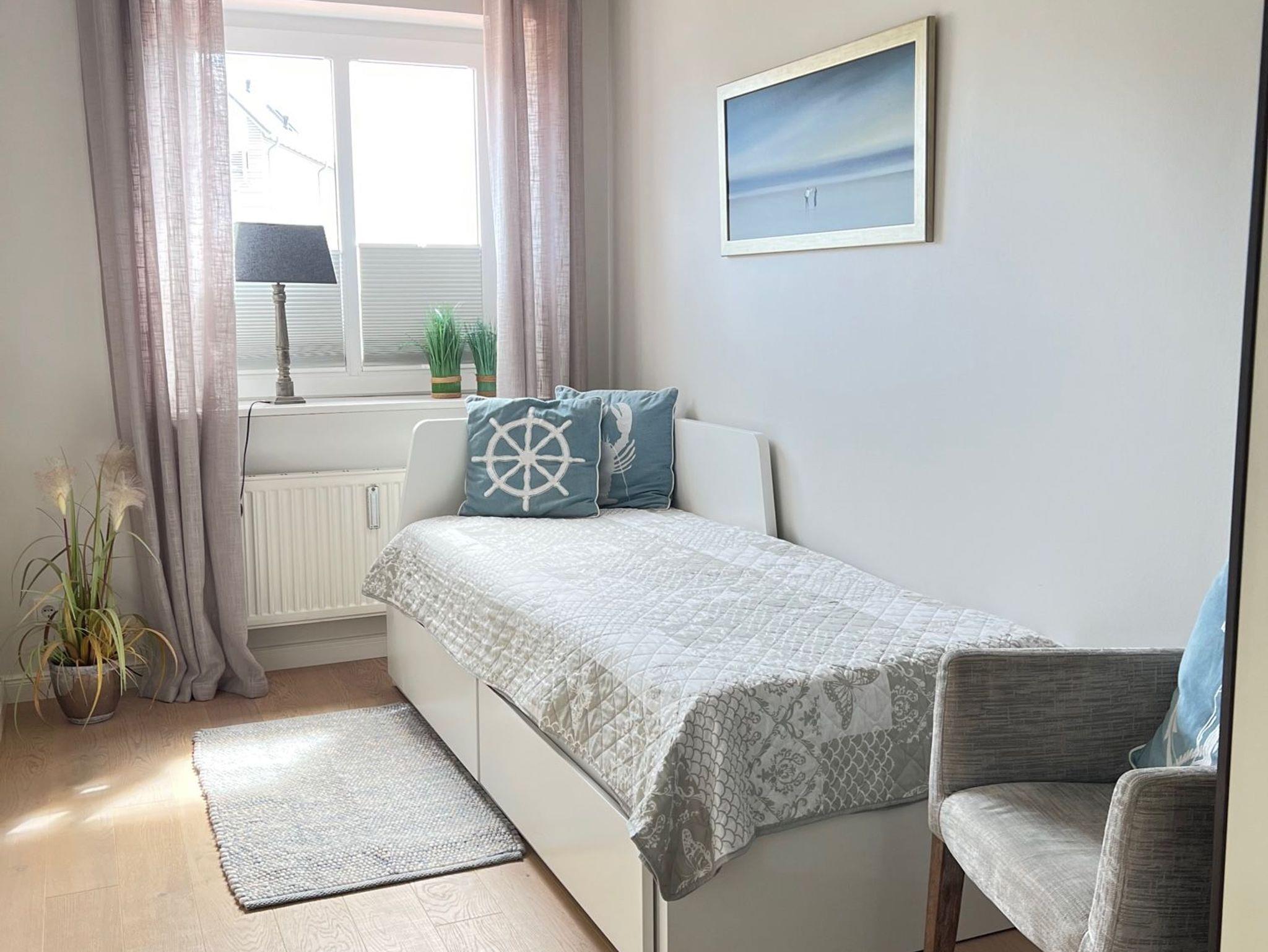 Unser Ferien-Apartment „Strandzeit“ vereint alles, was man sich von einem Urlaub auf der Insel Sylt wünscht: lichtdurchflutete Räume, nordisches Interieur und das Meer vor der Tür. Die Allergiker freundliche Unterkunft liegt ebenerdig und kann mit bis zu 3 Personen belegt werden. Sie integriert neben einem schönen Wohnraum mit angeschlossener Küche zwei Schlafzimmer mit einem Doppelbett bzw. einem Einzellbett sowie ein Badezimmer. Zur Wohnung gehört auch eine Terrasse mit Gartenmöbeln und einem Strandkorb. Ein Parkplatz komplettiert die Ausstattung.