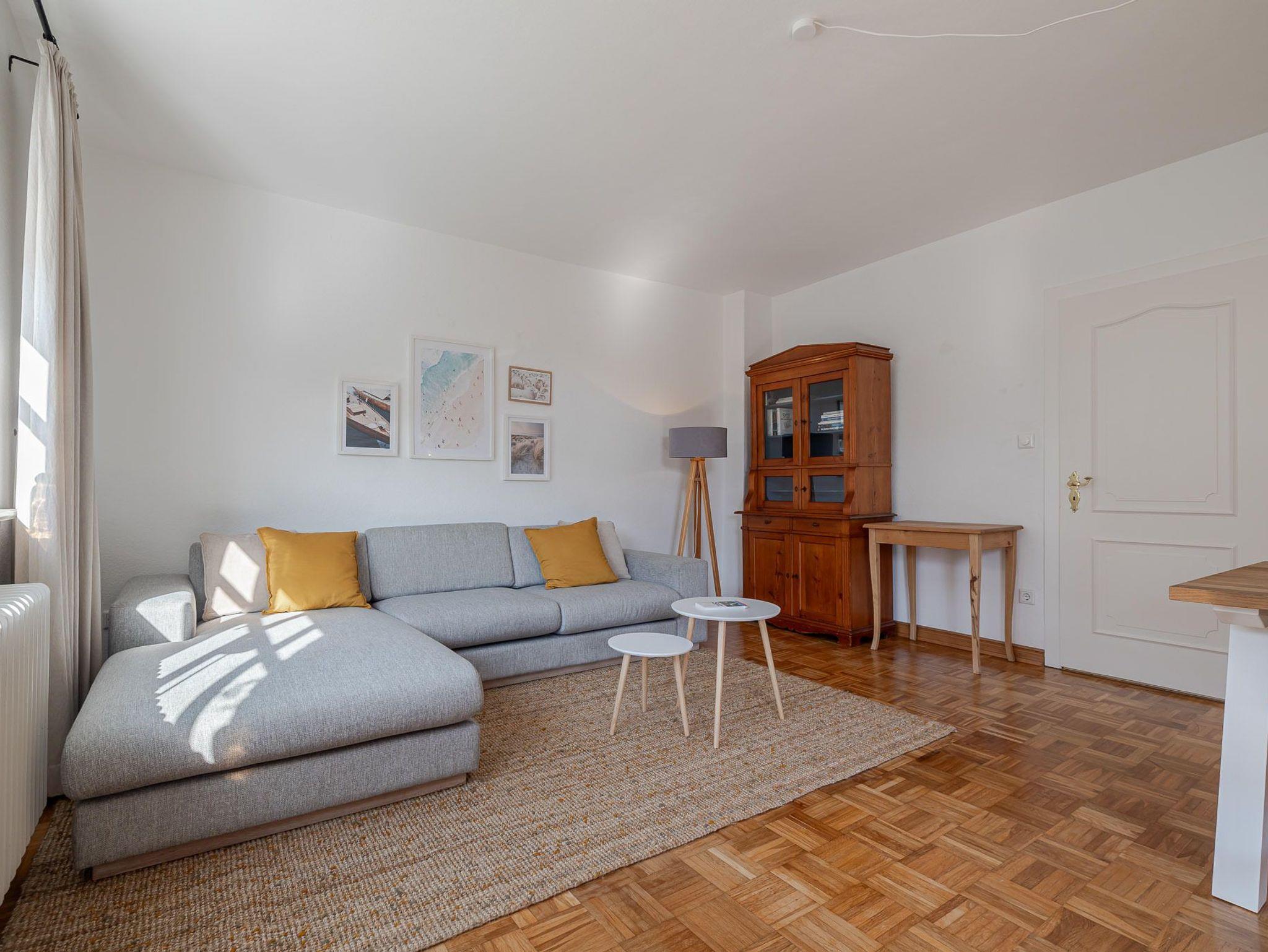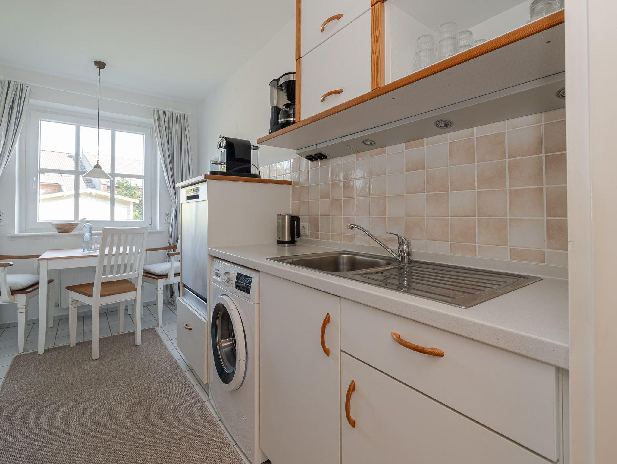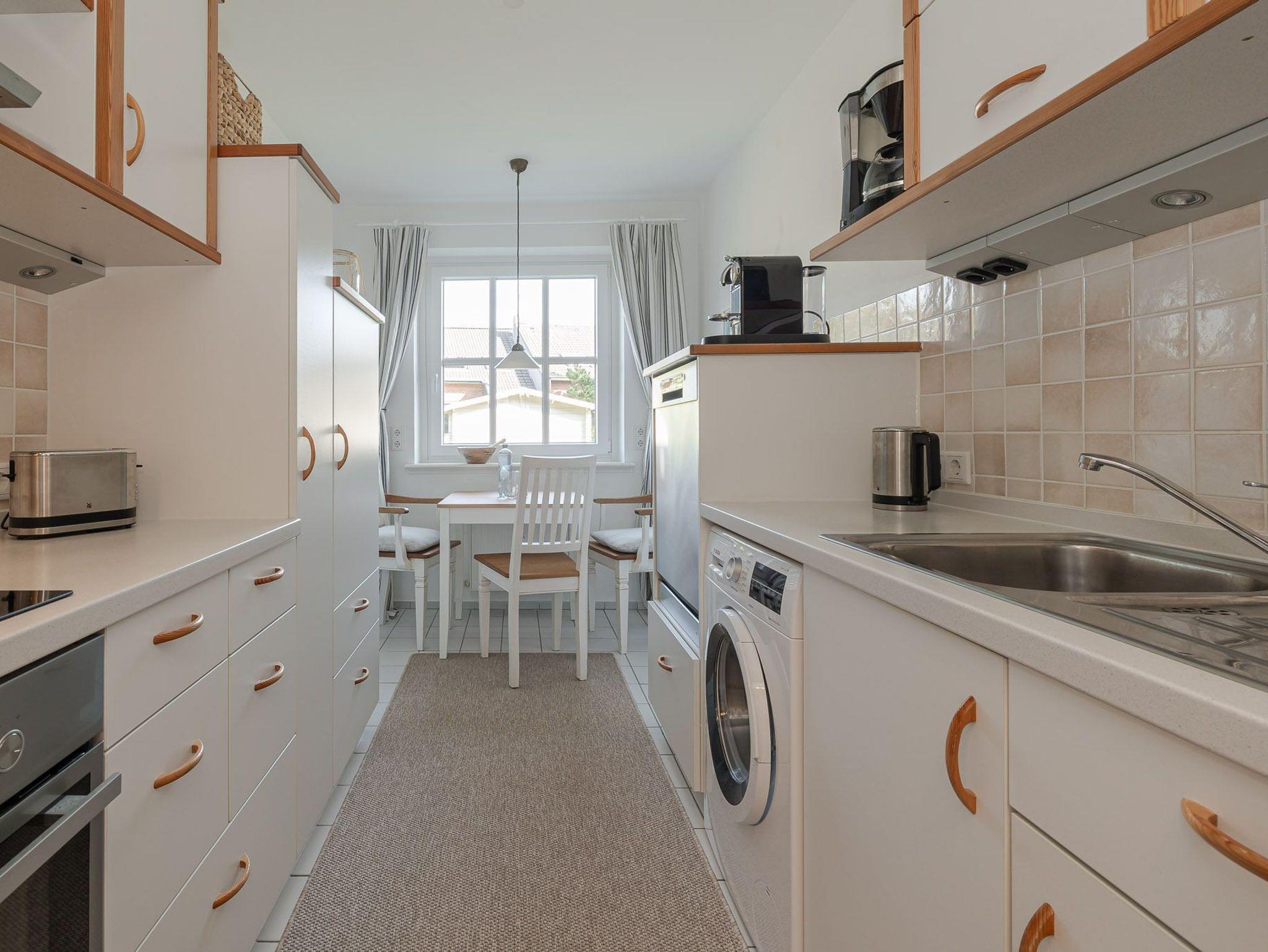 Die Wohnung verfügt über zwei gemütliche Schlafzimmer sowie ein modernes Badezimmer mit einer komfortablen, bodentiefen Dusche. Die voll ausgestattete Küche verfügt nicht nur über eine Spülmaschine, sondern auch eine Waschmaschine ? ideal auch für längere Aufenthalte. Im angrenzenden Wohnzimmer lädt die großzügige 3 Personen Couch mit Recamiere zum Entspannen ein.