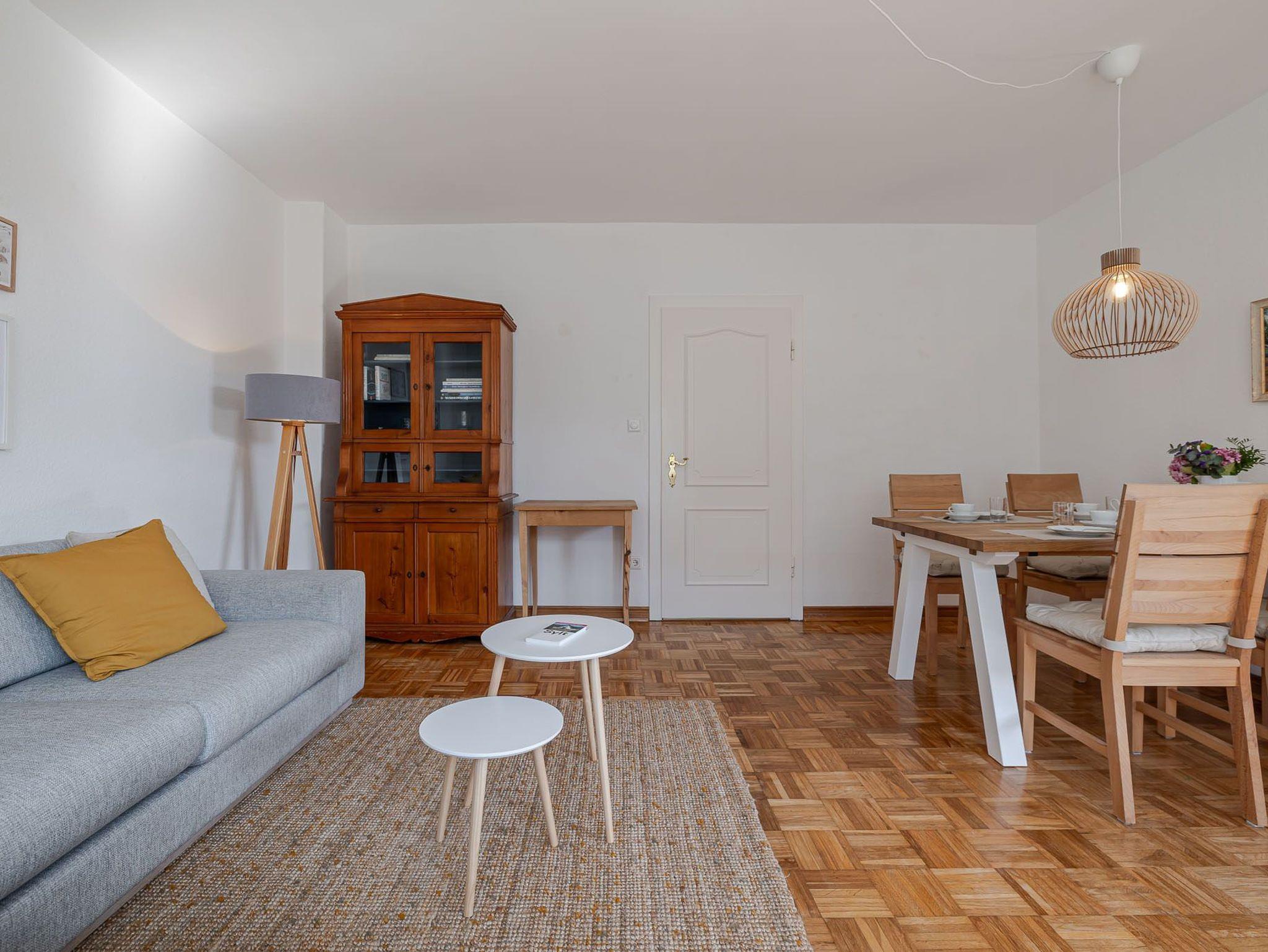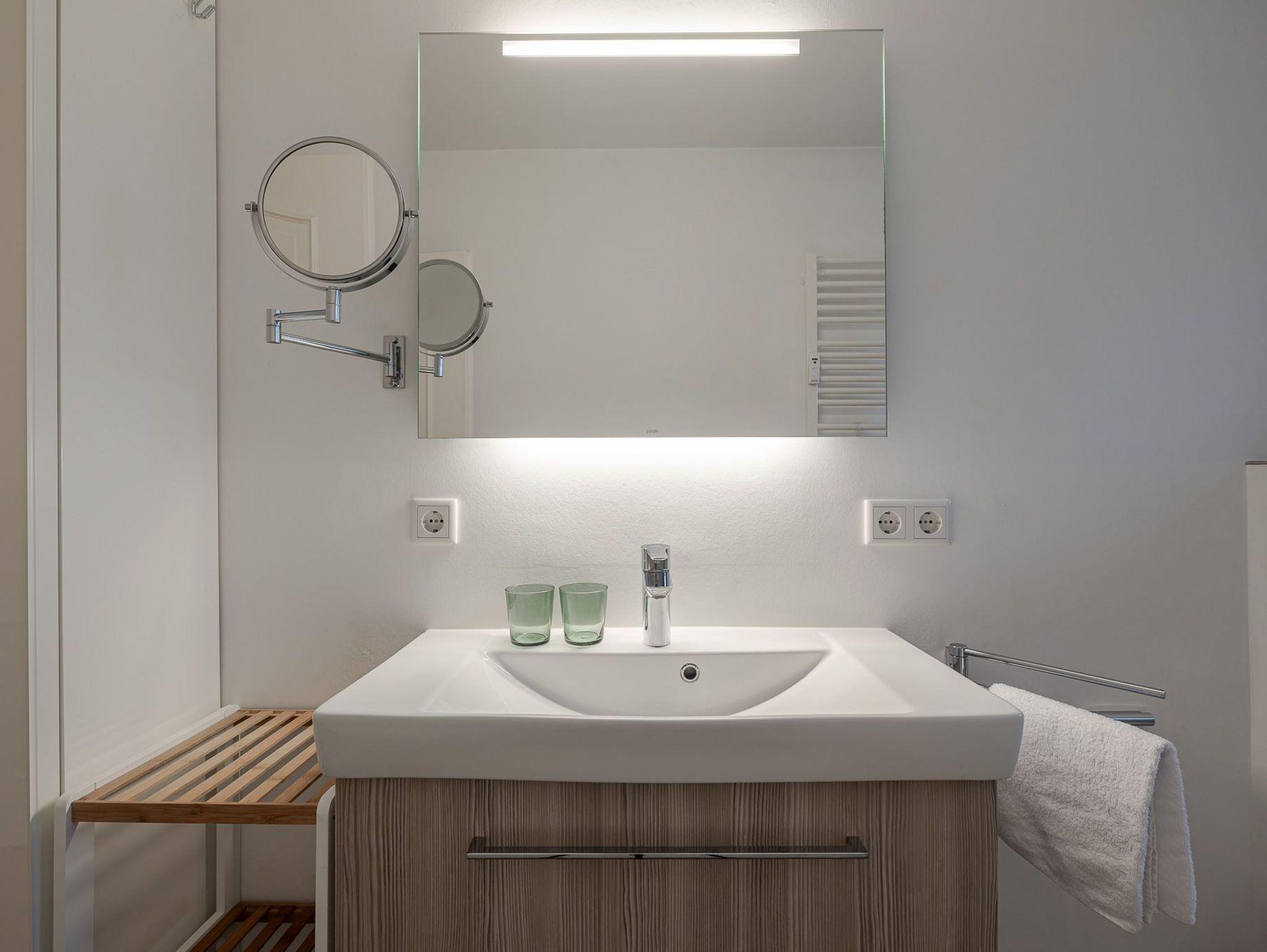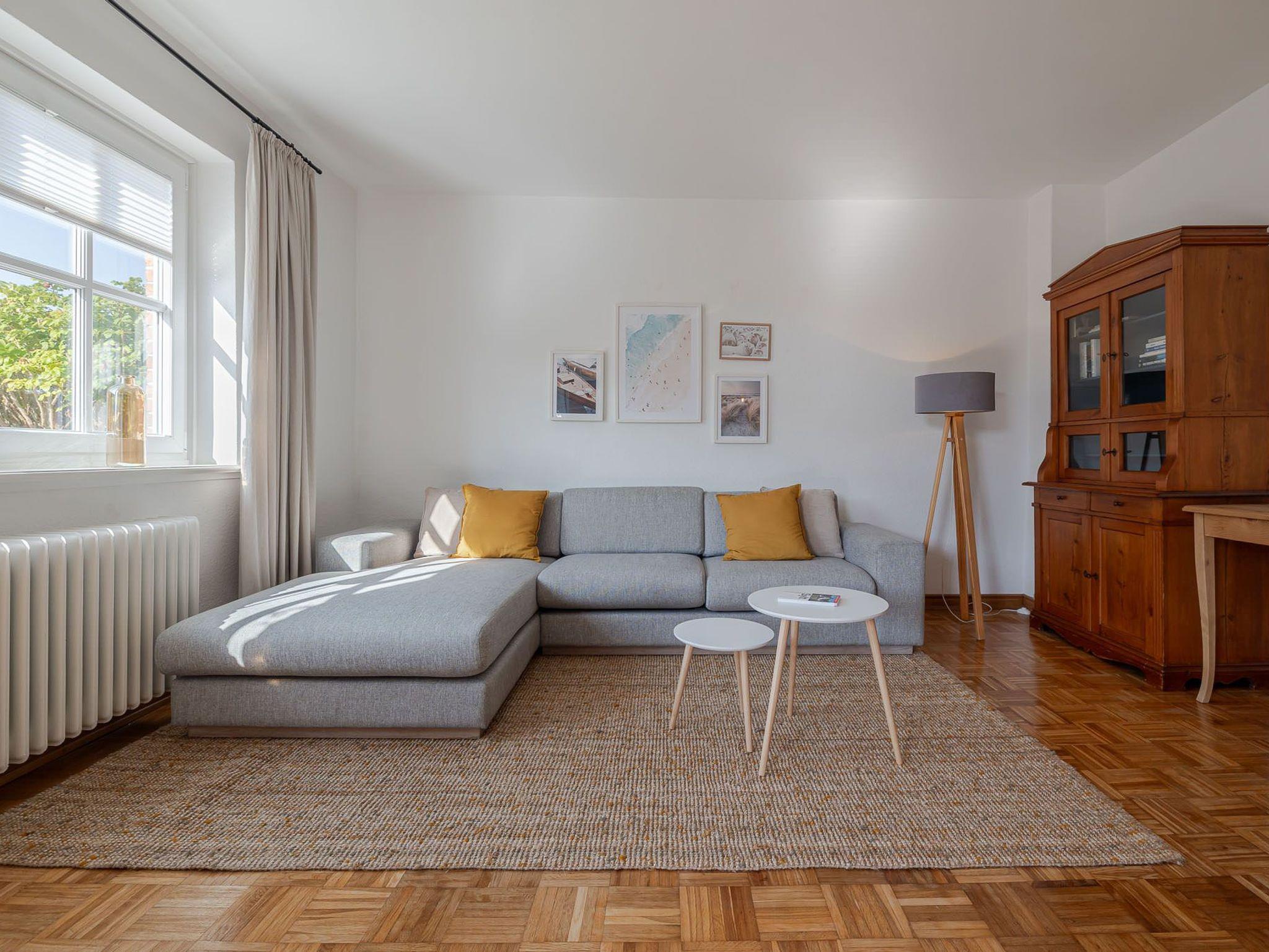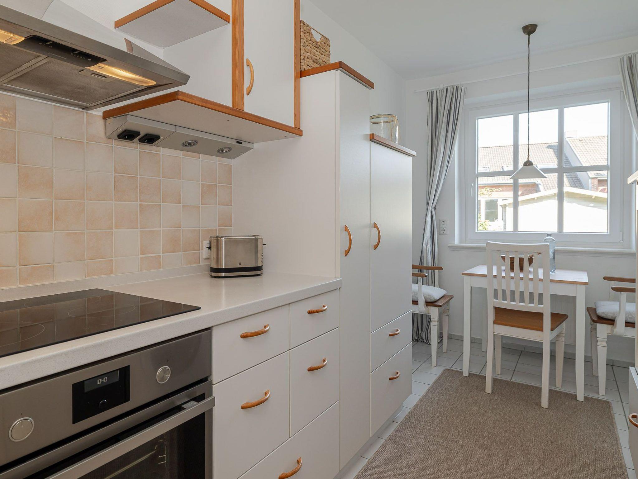 Die Wohnung verfügt über zwei gemütliche Schlafzimmer sowie ein modernes Badezimmer mit einer komfortablen, bodentiefen Dusche. Die voll ausgestattete Küche verfügt nicht nur über eine Spülmaschine, sondern auch eine Waschmaschine ? ideal auch für längere Aufenthalte. Im angrenzenden Wohnzimmer lädt die großzügige 3 Personen Couch mit Recamiere zum Entspannen ein.