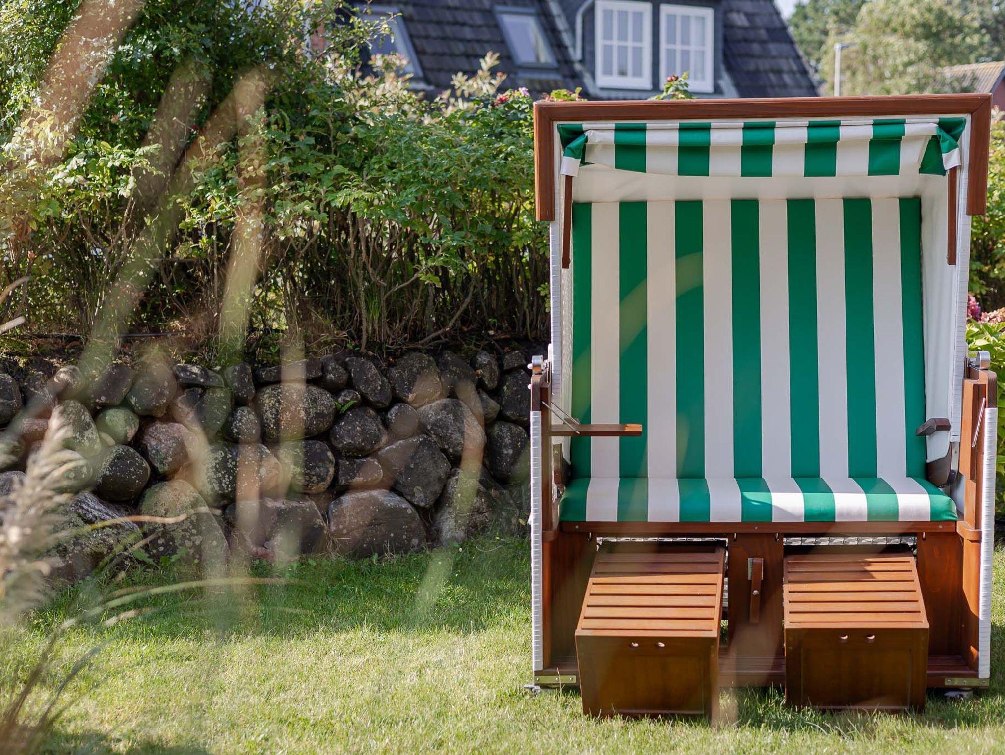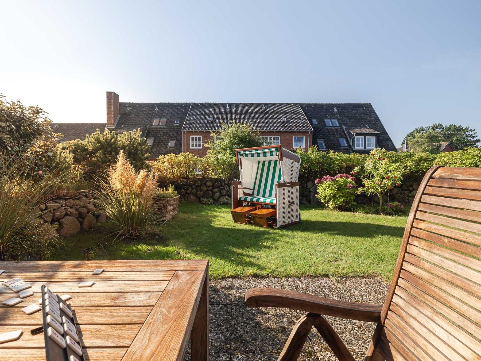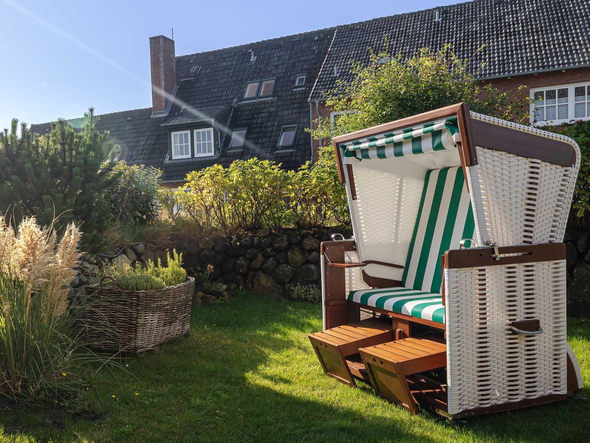 Ein weiteres Highlight dieser Wohnung ist der abgeschlossene, eigene Garten, der von einem traditionellen Friesenwall umgeben ist. Die geräumige Terrasse mit Strandkorb bietet Ihnen ausreichend Platz, um die frische Seeluft zu genießen. Der nach Süden ausgerichtete Garten sorgt den ganzen Tag über für Sonnenschein und lädt zum Verweilen ein.