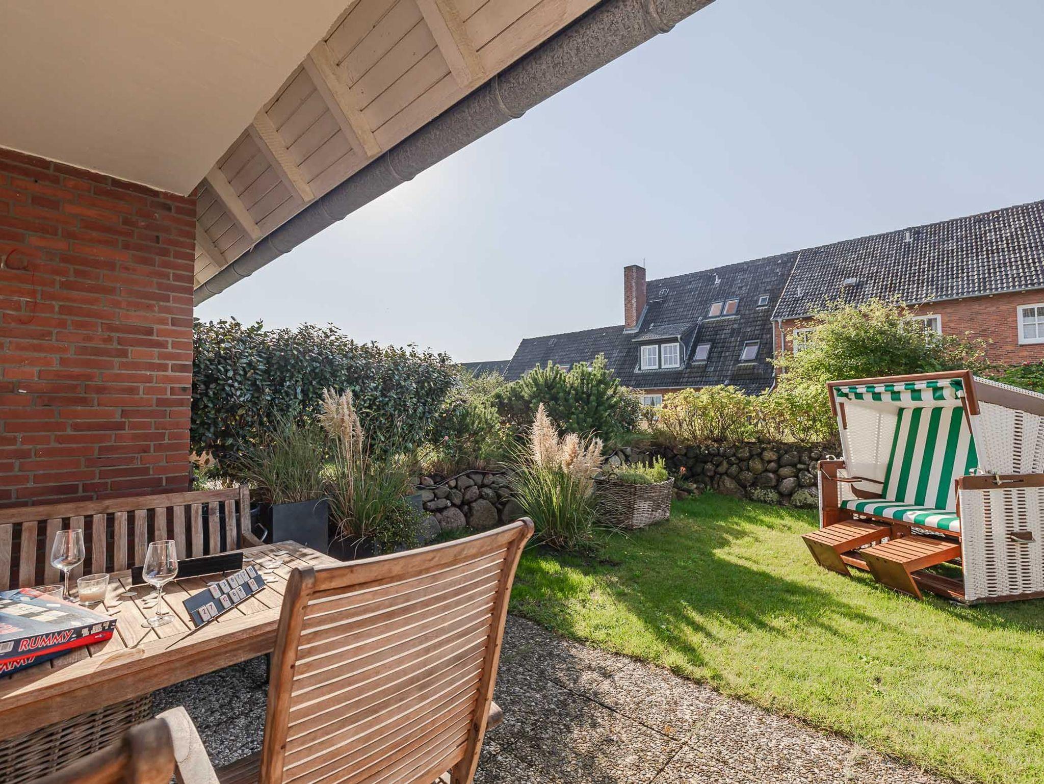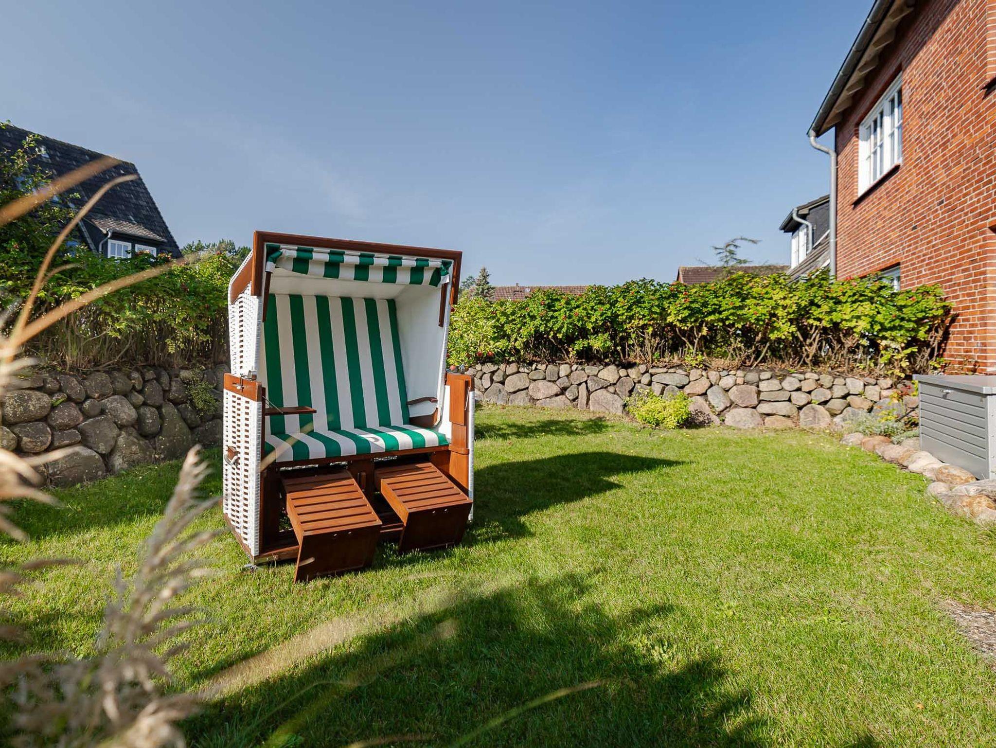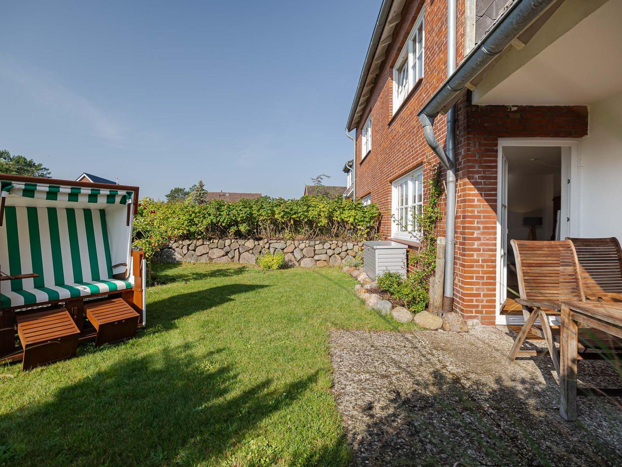 Ein weiteres Highlight dieser Wohnung ist der abgeschlossene, eigene Garten, der von einem traditionellen Friesenwall umgeben ist. Die geräumige Terrasse mit Strandkorb bietet Ihnen ausreichend Platz, um die frische Seeluft zu genießen. Der nach Süden ausgerichtete Garten sorgt den ganzen Tag über für Sonnenschein und lädt zum Verweilen ein.