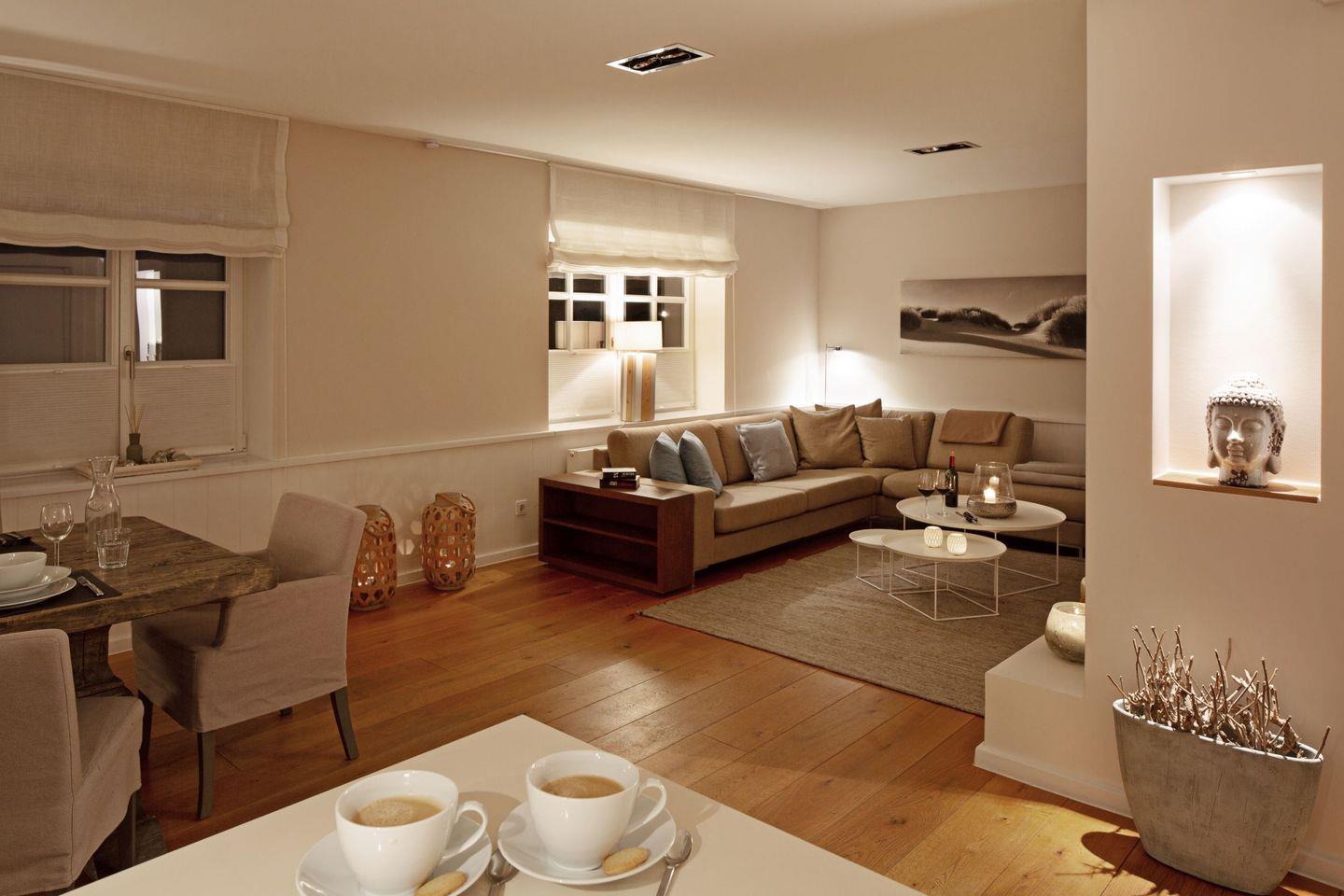Die offene Wohnküche ist ein echtes Highlight und lädt zum gemeinsamen Kochen und Verweilen ein. Sie ist mit hochwertigen Geräten ausgestattet, darunter ein Induktionsherd, eine Spülmaschine, eine Mikrowelle und eine Nespresso-Maschine. Der große Essbereich und die gemütliche Sofaecke im Wohnzimmer sind perfekt für gesellige Abende nach einem erlebnisreichen Tag an der frischen Luft. Für Unterhaltung sorgt ein modernes Entertainment-System mit mehreren TV-Geräten, einer HiFi-Anlage und einem Blu-ray-Spieler.