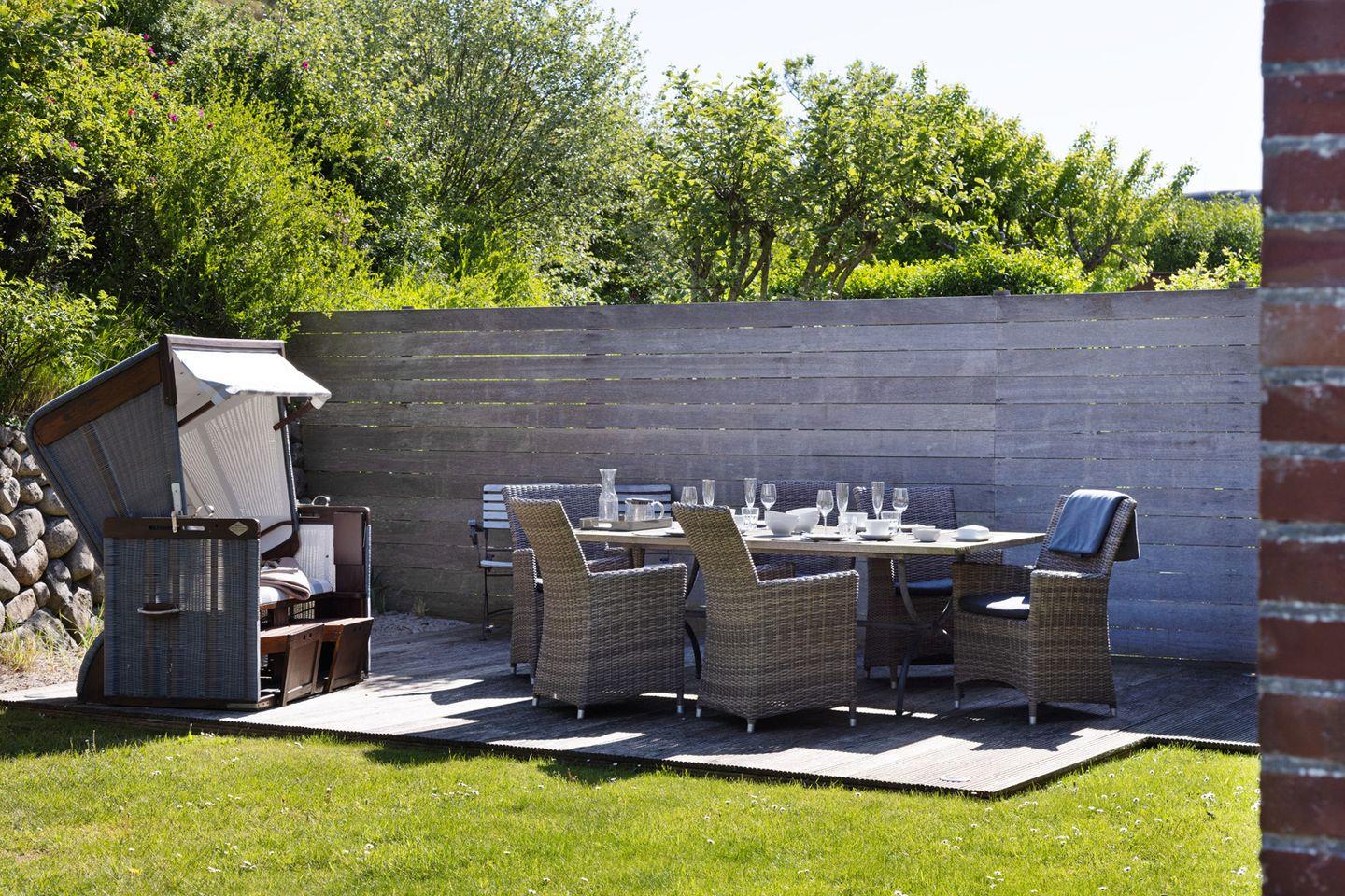 Genießen Sie entspannte Stunden auf der eigenen Terrasse, die sich hervorragend für gemütliche Grillabende oder ein ausgiebiges Frühstück im Freien eignet. Hier können Sie die frische Salzwind genießen und den Blick in den umliegenden Garten werfen. Der Garten ist ideal für Kinder zum Spielen und für Erwachsene zum Entspannen in einem der bereitgestellten Strandkörbe.