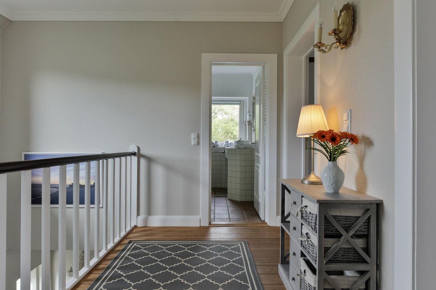 Diese schöne Doppelhaushälfte unter Reet bietet auf 115 m² eine großzügige Wohnfläche für bis zu 6 Personen. Positioniert auf einer Dünenerhöhung haben Sie aus dem Wohnbereich einen traumhaften Panoramameerblick über das Lister Watt. Die Lage stellt einen perfekten Ausgangspunkt dar, um sowohl das malerische Watt im Osten als auch die lebendige Innenstadt von List bequem zu Fuß zu erreichen (bis Lister Hafen ca. 20 Minuten Fußweg). Im Erdgeschoss empfängt Sie ein offener, heller Wohn- und Essbereich. Die separate Küche ist vollständig ausgestattet. Direkt im Eingangsbereich des Hauses befindet sich ein Duschbad. Das Obergeschoss beherbergt drei helle Doppelschlafzimmer sowie ein weiteres Tageslichtbad samt Dusche und Badewanne. Die Terrasse mit angrenzendem Garten und einem Strandkorb (saisonabhängig) lädt zu entspannten Stunden im Freien ein. Darüber hinaus stehen Ihnen WLAN sowie eine Waschmaschine zur Verfügung. Einen zugehörigen PKW-Stellplatz gibt es leider nicht. Öffentliche, kostenfreie Parkmöglichkeiten befinden sich direkt an der Straße vor dem Haus. Haustiere sind hier herzlich willkommen, sodass auch Ihr vierbeiniger Begleiter sich wie zu Hause fühlen kann. Erkunden Sie tagsüber den charmanten Ort List und die Insel Sylt und lassen Sie den Abend in gemütlicher Runde vor dem Kamin ausklingen.