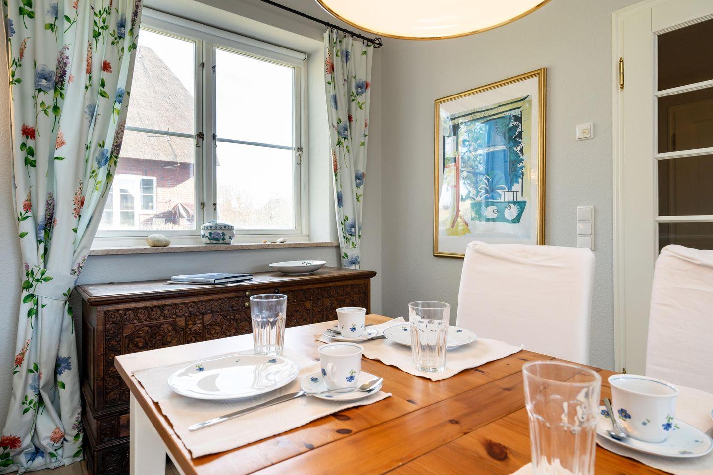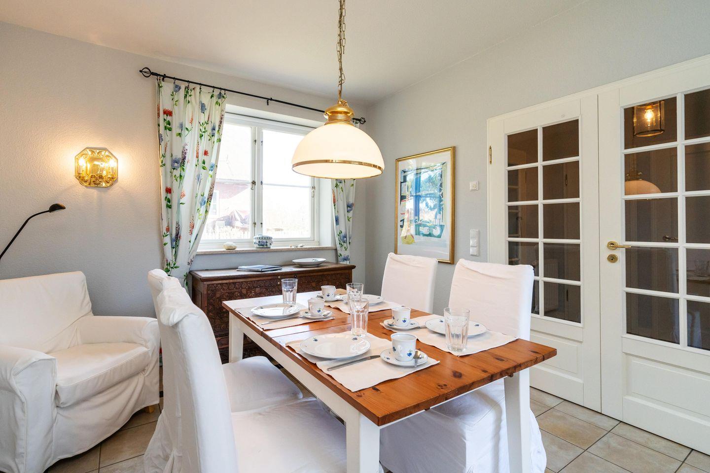 Familienfreundliche ca. 100 m² große reetgedeckte Doppelhaushälfte am Ortsrand von List für bis zu 4 Personen mit schönem Garten, Standkorb und WLAN. Haustiere sind willkommen.