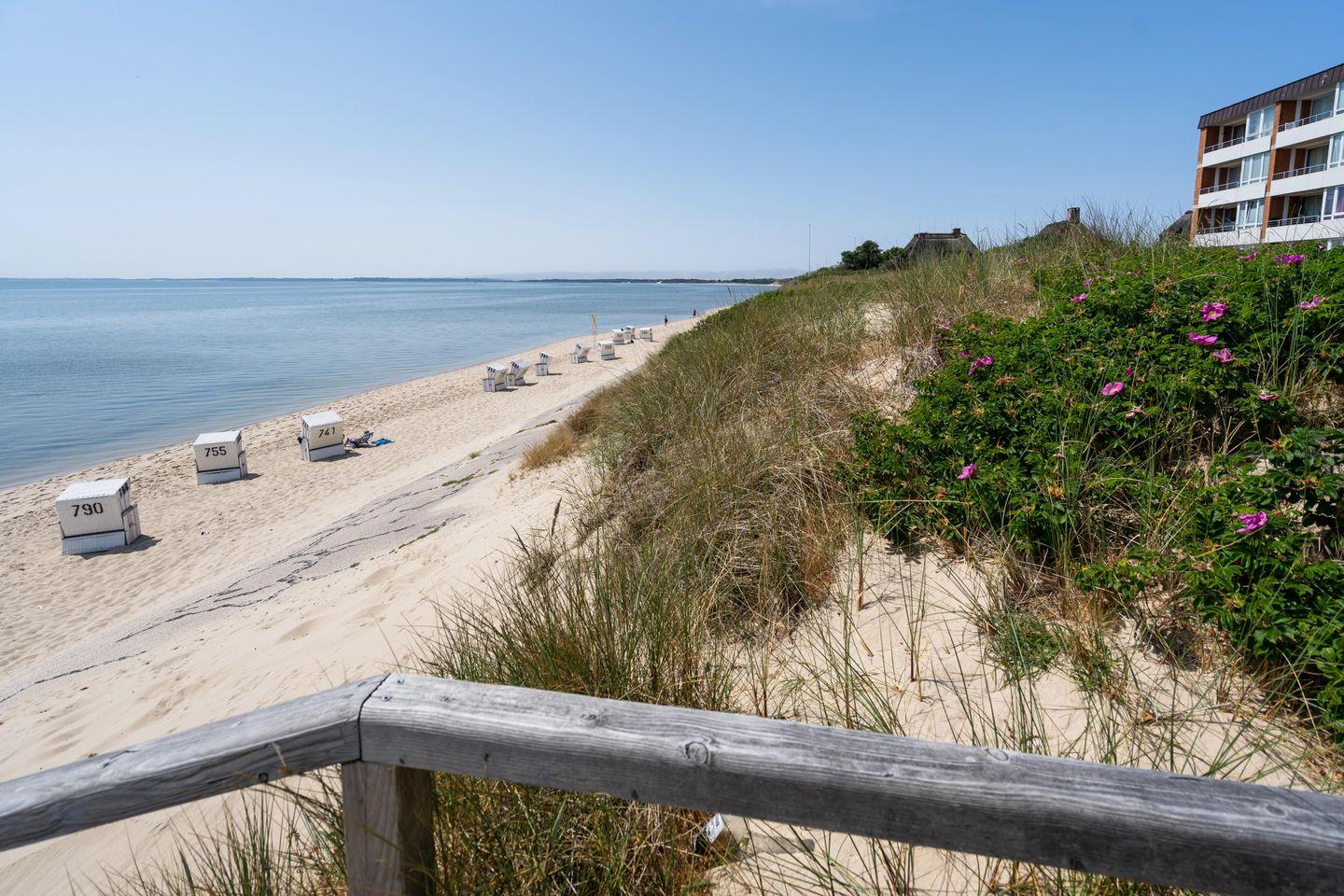 Das moderne 1-Zimmer App. "Strandwärts" für bis zu 2 Personen befindet sich im Hochparterre und zeichnet sich durch seine direkte Strandlage am Lister Watt aus. Der Wohn- und Schlafbereich inkl. Essecke bietet Ihnen eine Kombination aus hochwertiger Ausstattung und höchstem Komfort. Genießen Sie die Ruhe sowie den schönen Blick aufs Meer vom angrenzenden Balkon. Die Küchenzeile samt Geschirrspüler ist voll ausgestattet. Das Badezimmer verfügt über eine Dusche. Ein PKW-Stellplatz (maximale Fahrzeughöhe beträgt 190 cm) sowie WLAN stehen Ihnen kostenfrei zur Verfügung. Haustiere sind erlaubt. Der Fahrstuhl des Apartmenthauses ist über wenige Treppenstufen erreichbar.