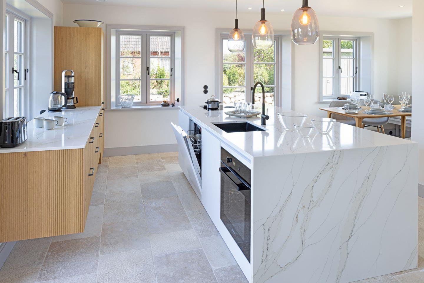 Das Haus erstreckt sich über mehrere Ebenen und verbindet modernes Wohnen mit einer warmen, einladenden Atmosphäre. Im Erdgeschoss erwartet Sie ein gemütlicher Wohnbereich mit Gaskamin und Flachbildfernseher, der zu entspannten Abenden einlädt. Die offene, moderne Küche mit angrenzendem Essbereich ist bestens ausgestattet und bietet ideale Voraussetzungen für gemeinsame Mahlzeiten. Ein Gäste-WC befindet sich ebenfalls auf dieser Etage.