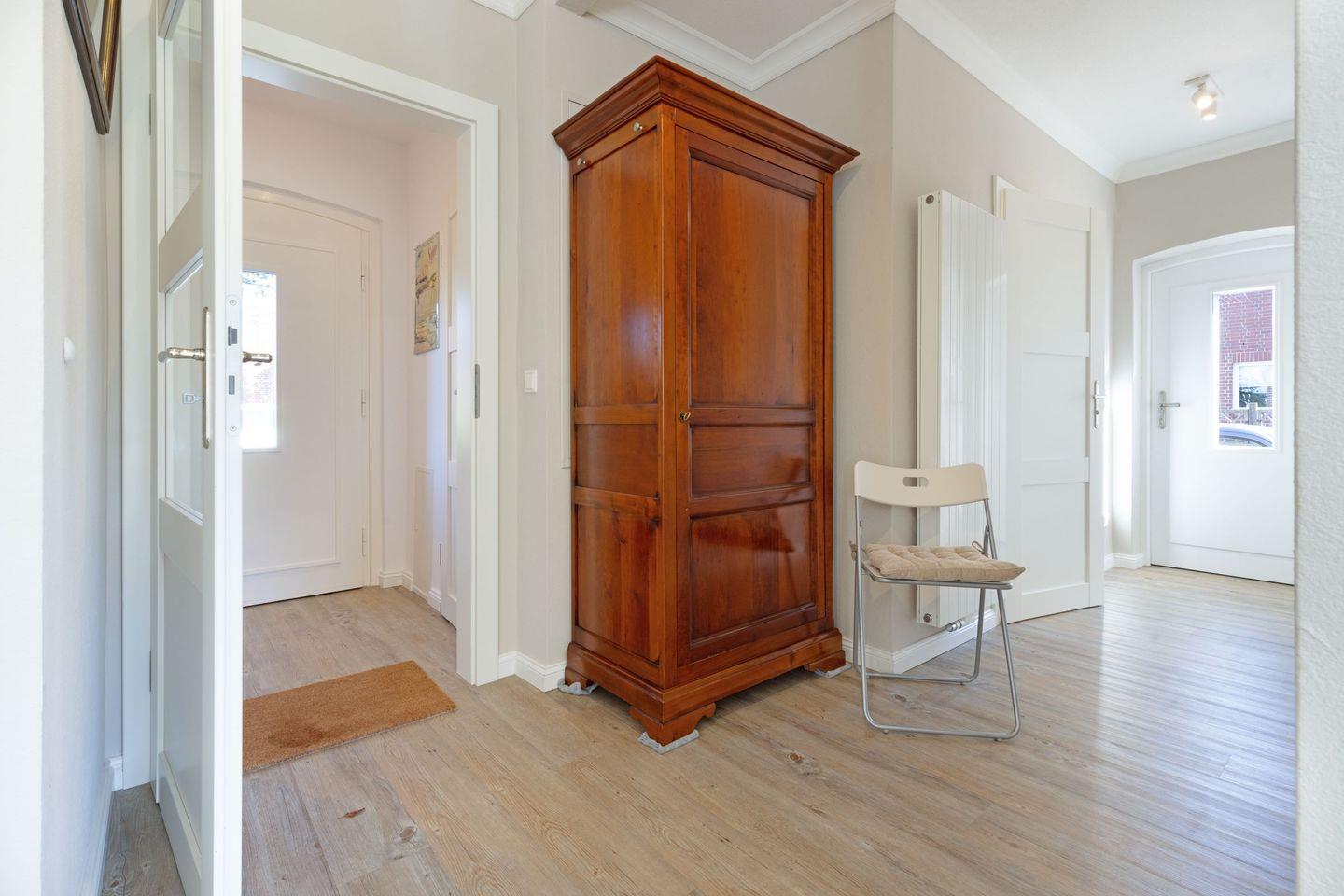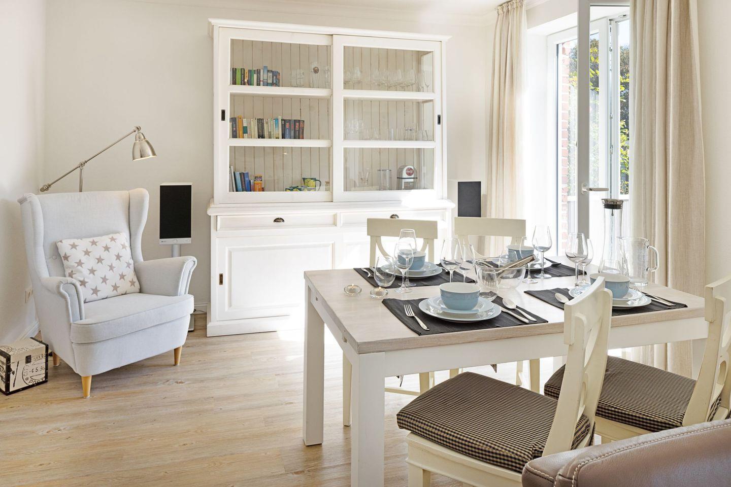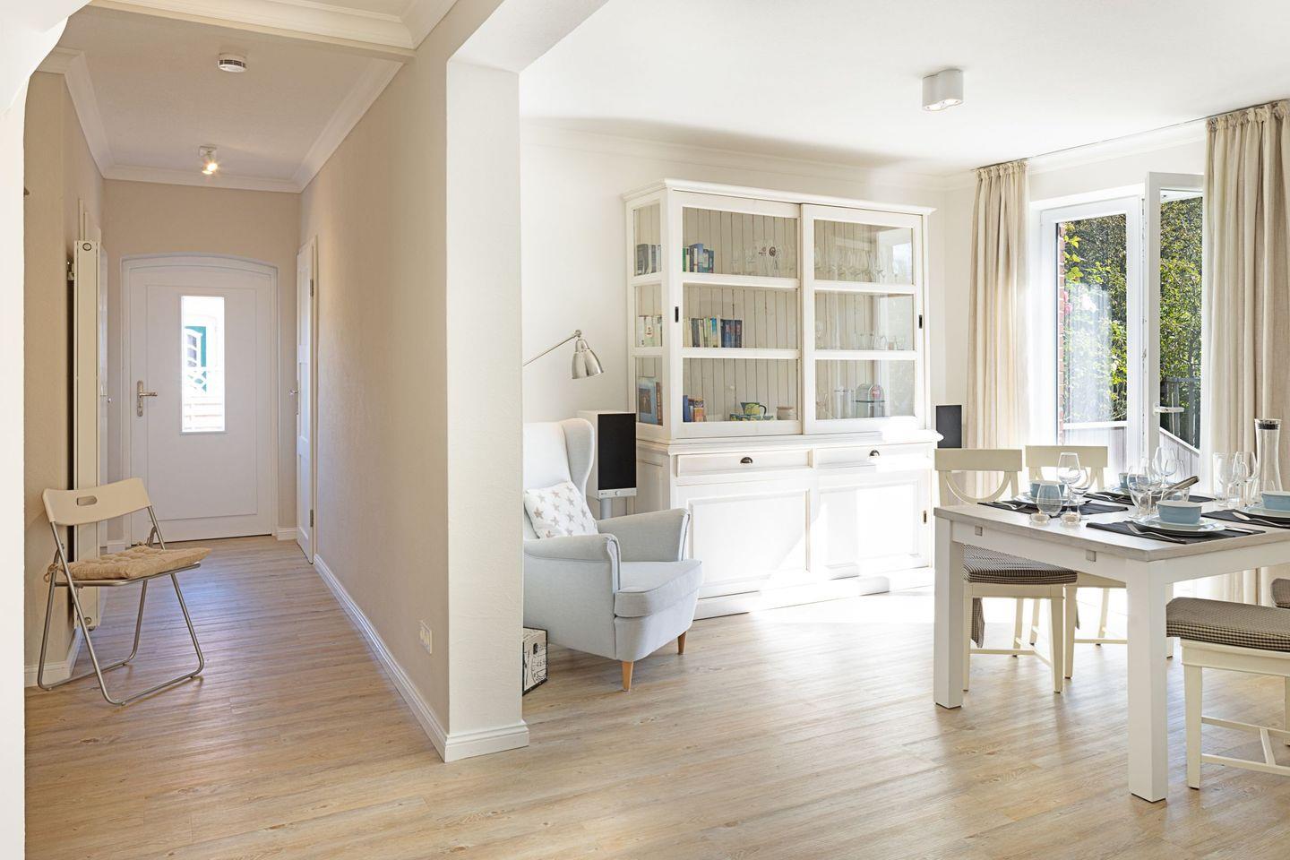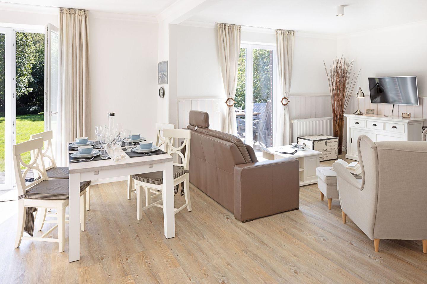 Großzügiges familienfreundliches Feriendoppelhaus für vier Personen mit Kamin, Terrasse und Strandkorb.