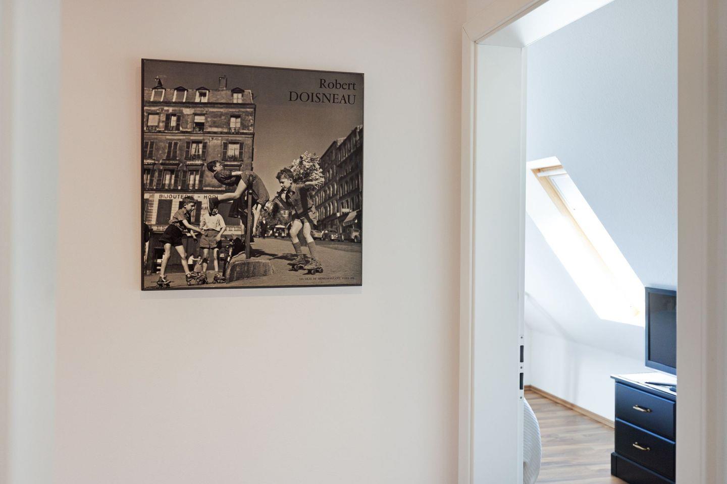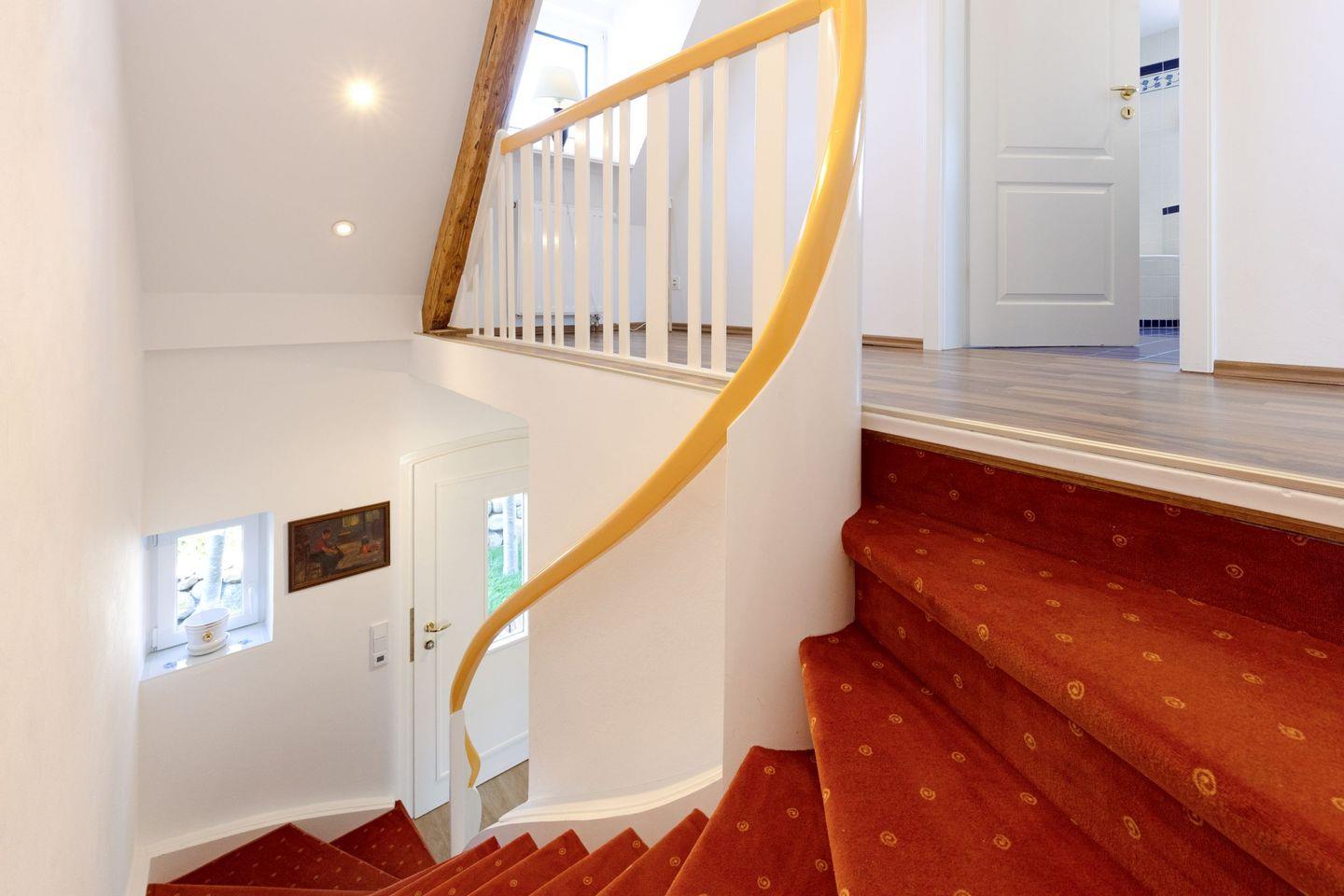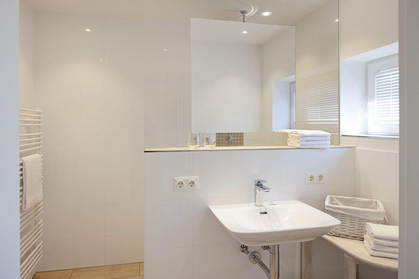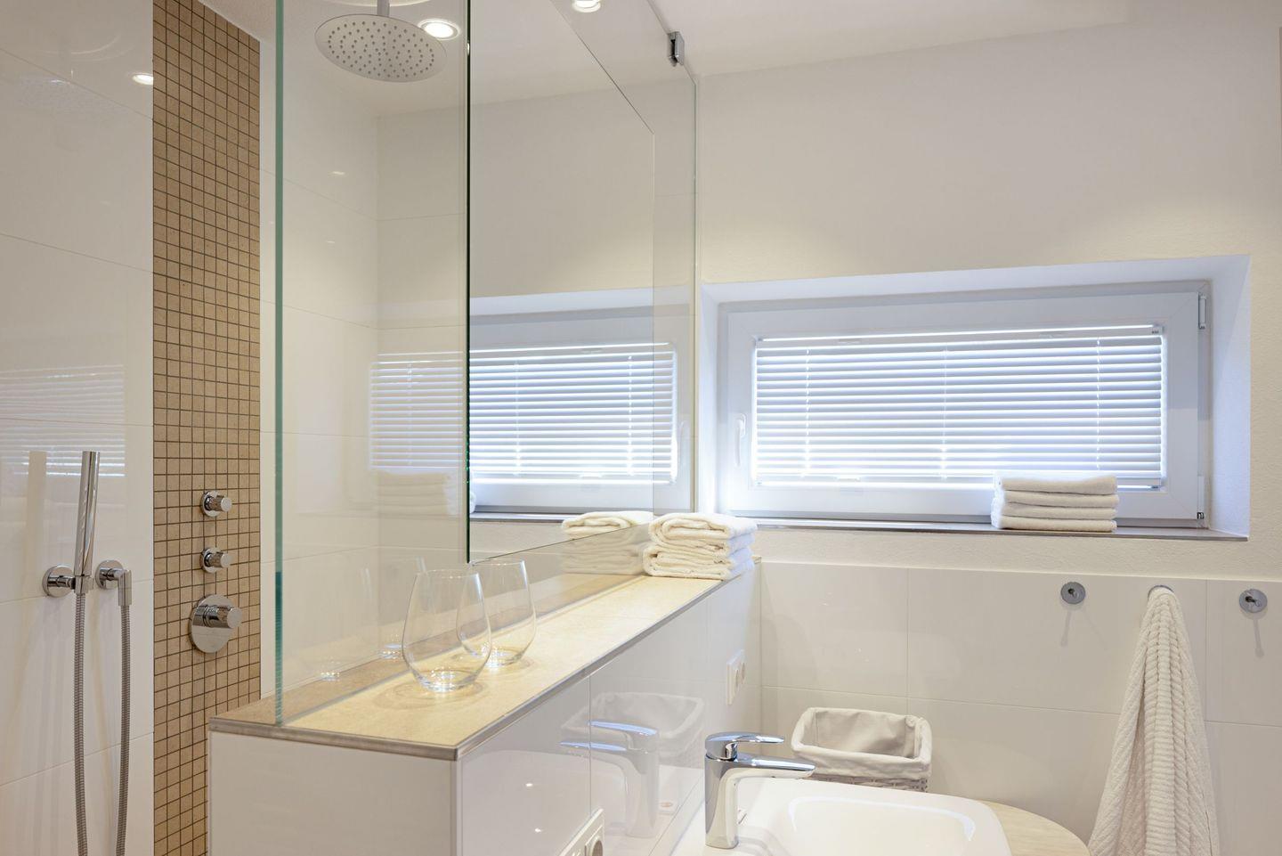 Zwei Schlafzimmer mit jeweils einem Doppelbett und ein Bad mit Badewanne und Dusche befinden sich in der 1. Etage.