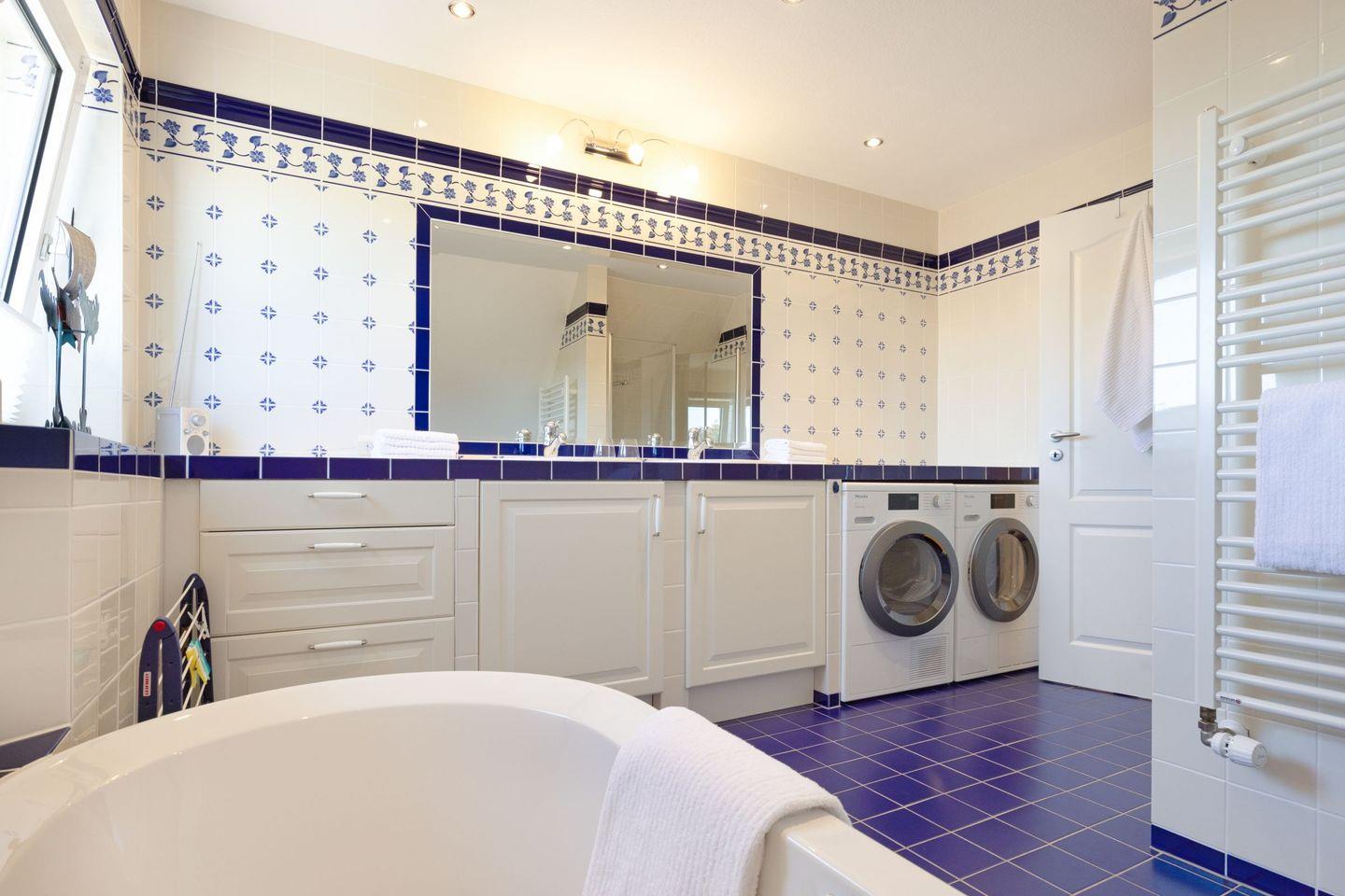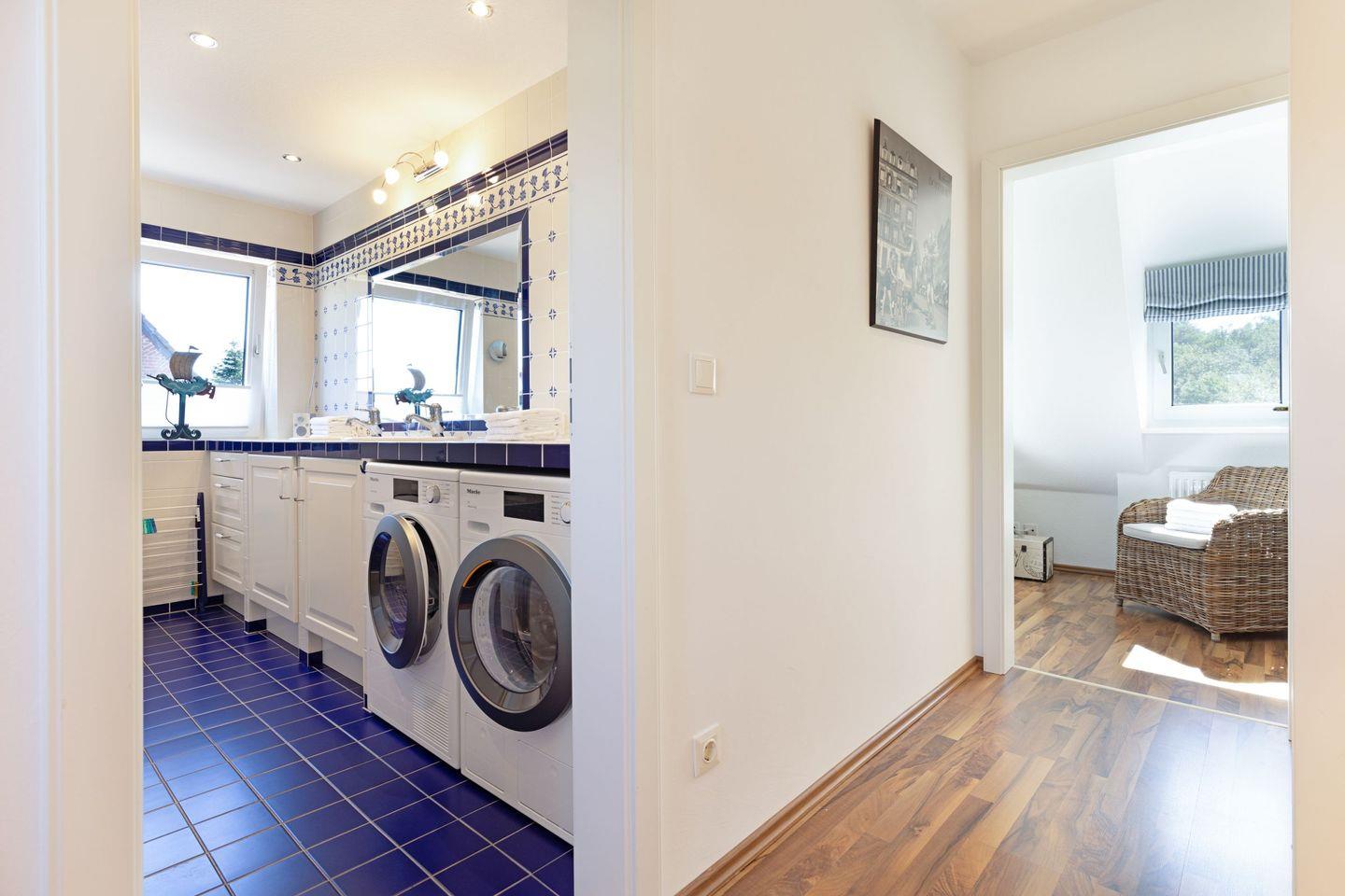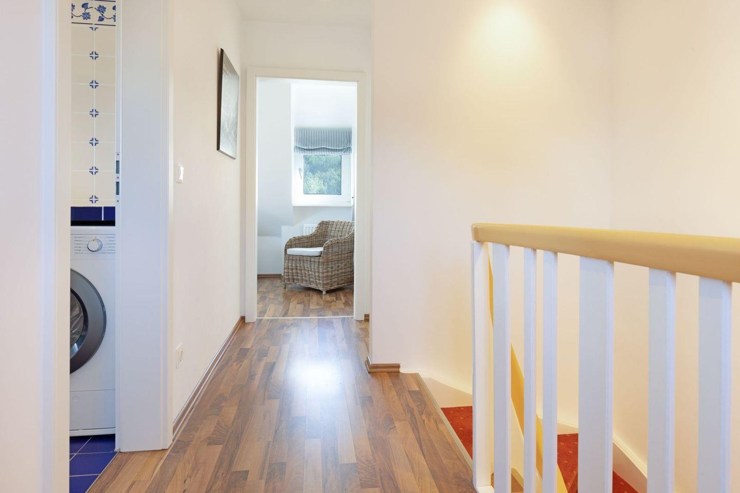Im Außenbereich lädt Ihr großzügiger Garten mit Terrasse (saisonal Gartenmöbel und Strandkorb) zum Relaxen ein. Waschmaschine und Trockner sind vorhanden.