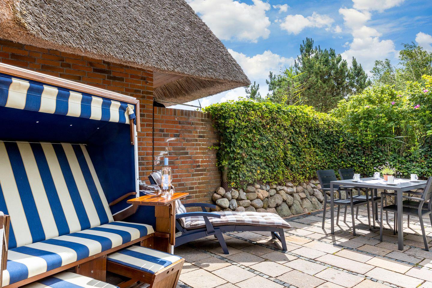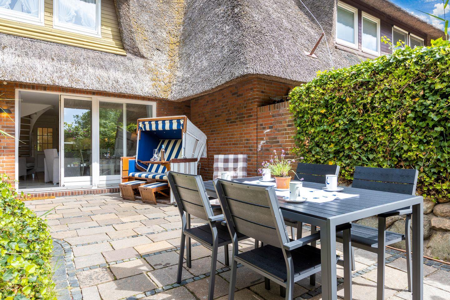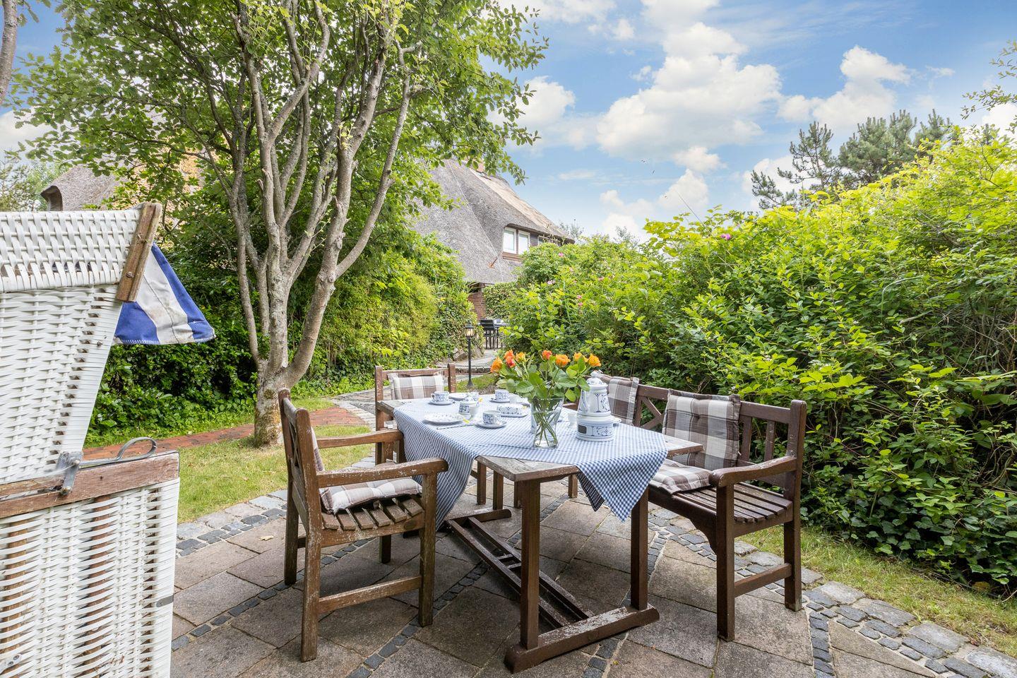Als besonders erwähnenswert ist der weitläufige und wunderschön lauschig-verzweigte Gartenbereich - ein wahres Kinder-Versteck- und Tobeparadies ! Ihre hübsch angelegte Süd-Ost-Terrasse lässt Sie in Ihrem Strandkorb die Sylter Sonne genießen. Ein weiterer, zweiter Terrassenbereich steht Ihnen im Garten darüberhinaus zur Verfügung. Ihre ganz private Zuwegung zum Wattenmeer/Strand führt Sie durch Ihren Garten. Durch Ihre abschließbare Pforte sind es nur noch wenige Schritte zum Strandübergang.