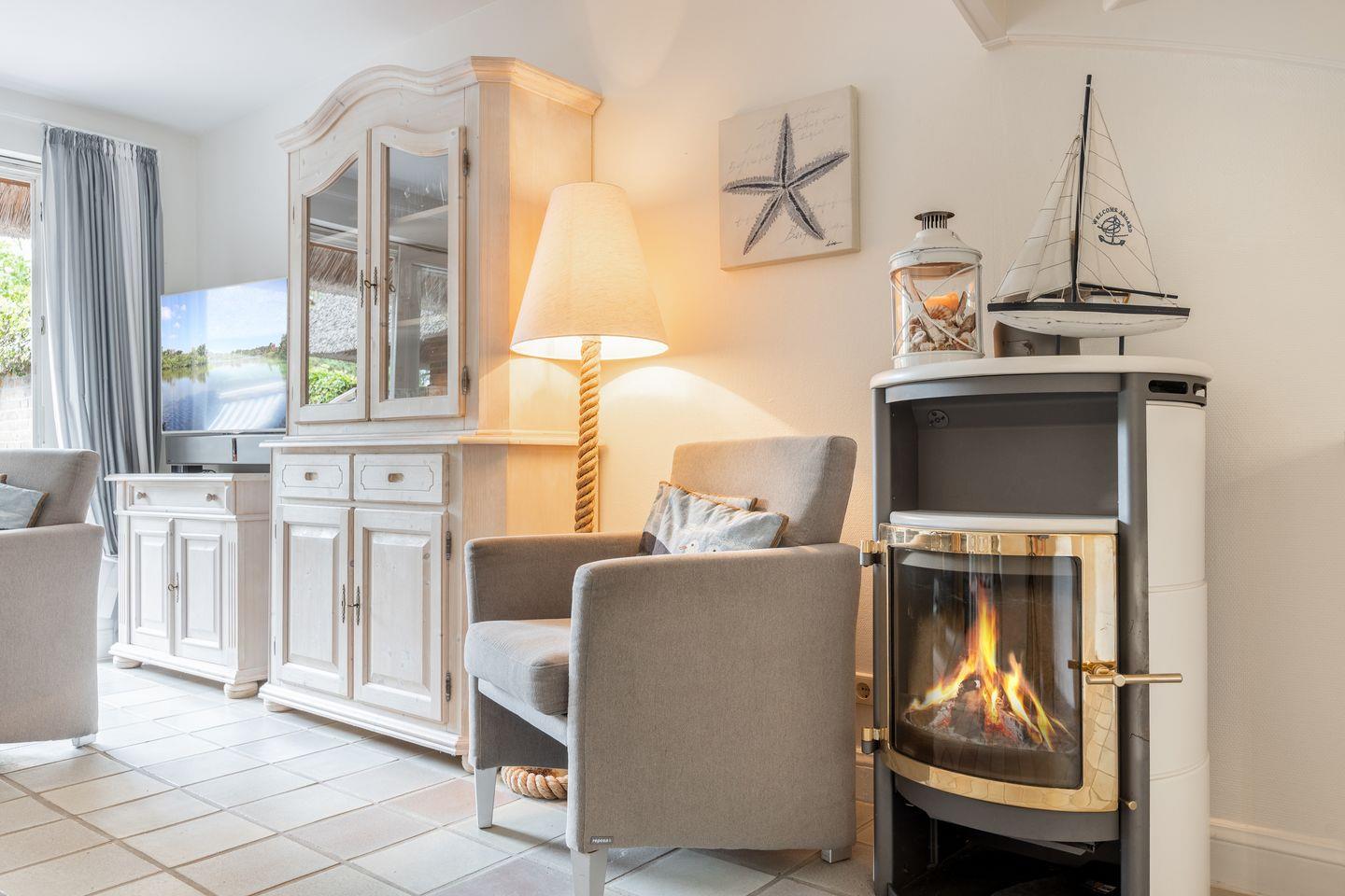 Der Kaminofen gestaltet Ihren Aufenthalt nicht nur an kälteren Tagen behaglich und kuschelig. Ein Bad mit Dusche, Waschtisch und WC steht Ihnen im Erdgschoss ebenfalls zur Verfügung.