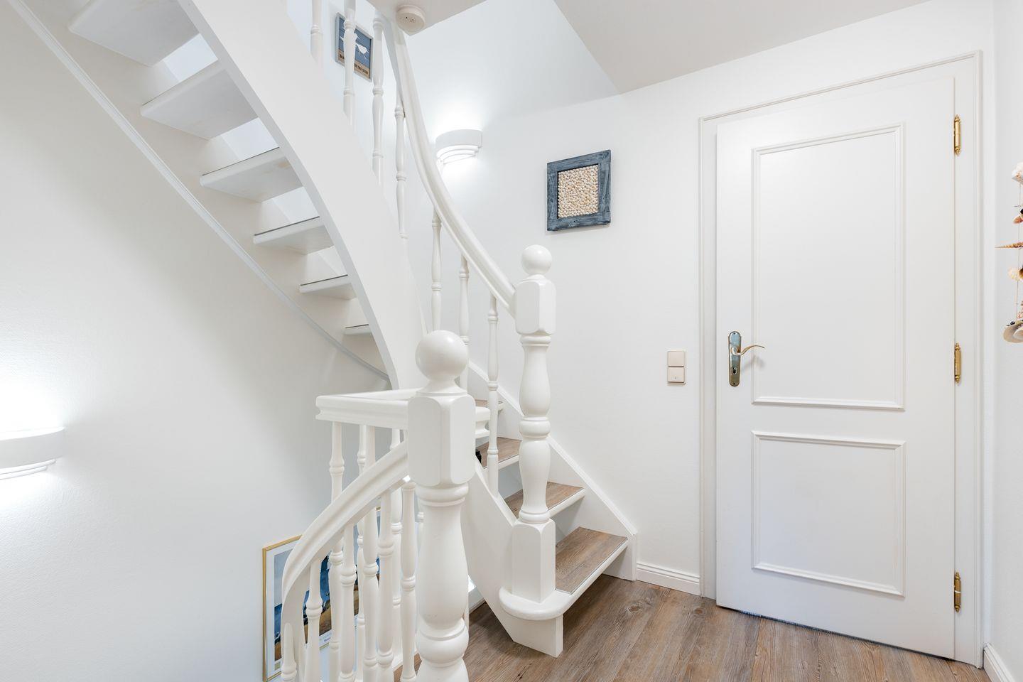 Durch Ihren lauschigen Garten sind es über eine private Zuwegung nur wenige Schritte bis zum wunderschönen Strand am Wattenmeer. Zum Bestaunen brauchen Sie übrigens noch nicht einmal zu laufen, eröffnet sich Ihnen ein atemberaubender Wattenmeer-Blick aus Ihrem Schlafzimmer im Obergeschoss sowie aus dem Dachgeschossbereich.