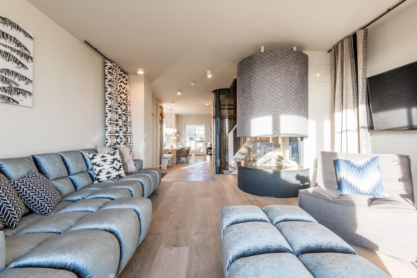 Die wunderschöne durchdachte Inneneinrichtung erlaubt es Ihnen, in den teils loftartigen Geschossen mit der Natur zu leben, so wurden z.B. durch Textilien Möglichkeiten gewählt, dass Sie auf Wunsch die TV-Geräte unsichtbar werden lassen können.