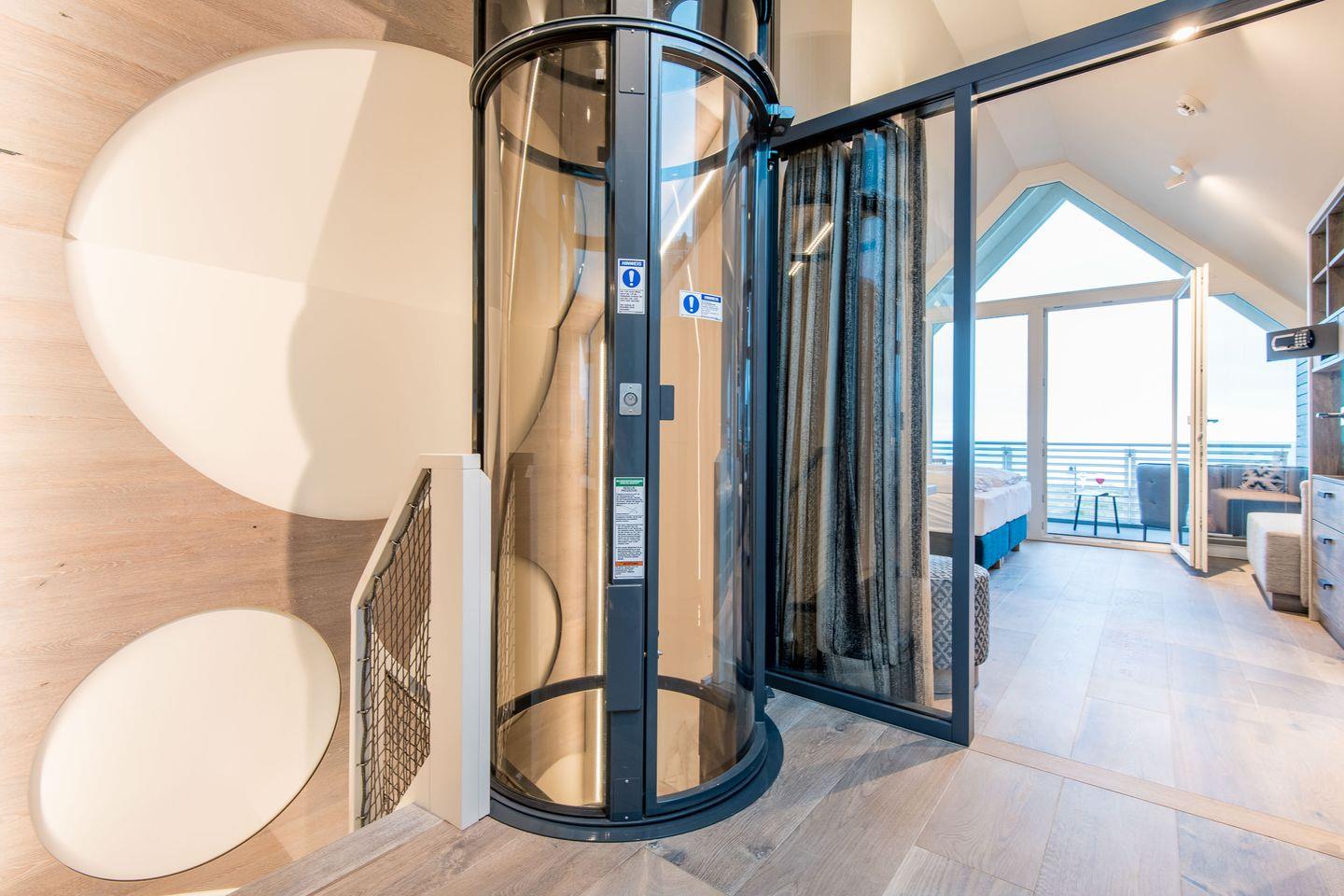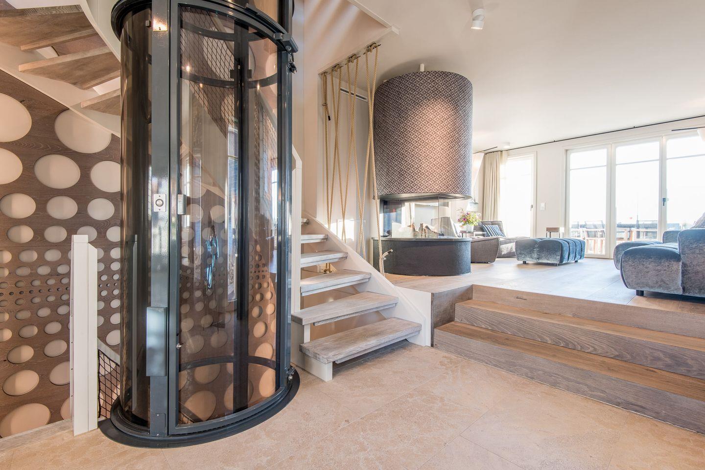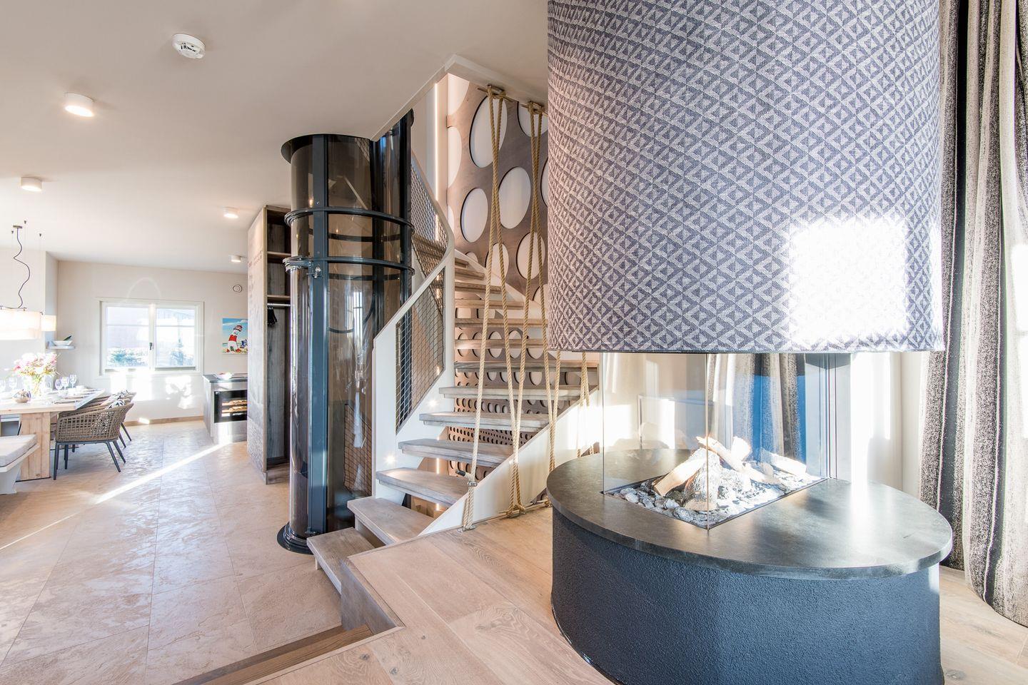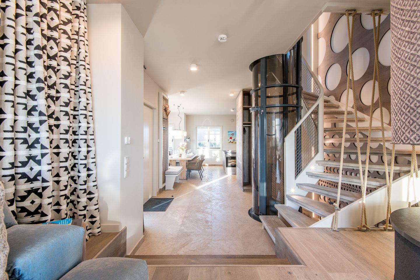 Von hier aus gelangen Sie auch direkt mit dem vollständig transparenten Aufzug zu allen weiteren Ebenen Ihres Beachhouses.