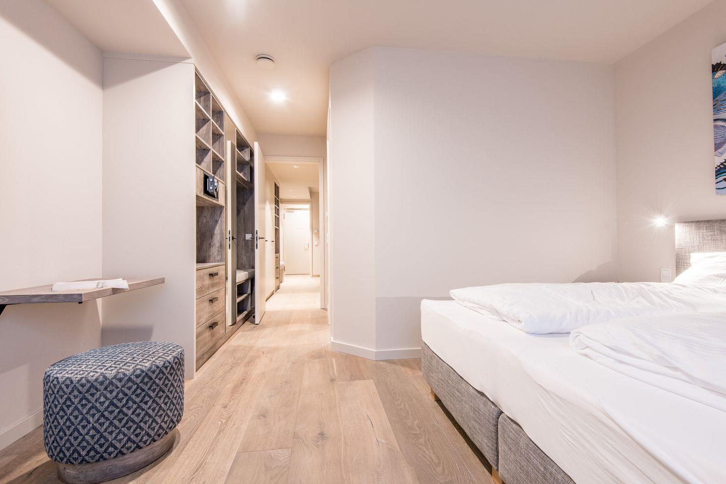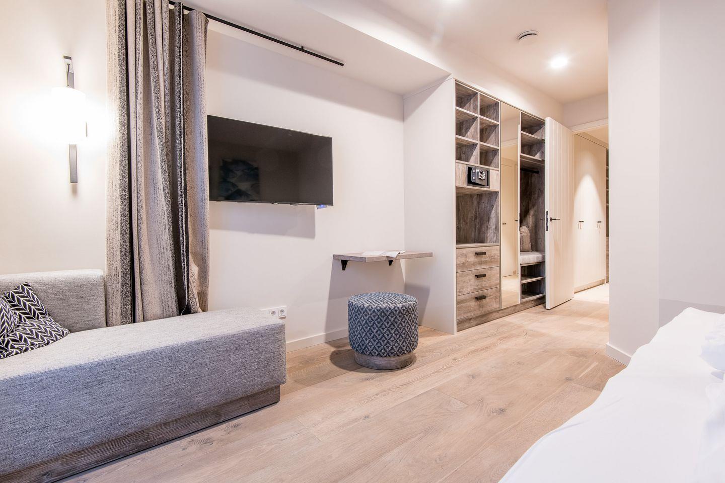 In jedem der Schlafzimmer befindet sich ein Hotelsafe und ausreichend Platz in den tischlergefertigten Schrankeinbauten.