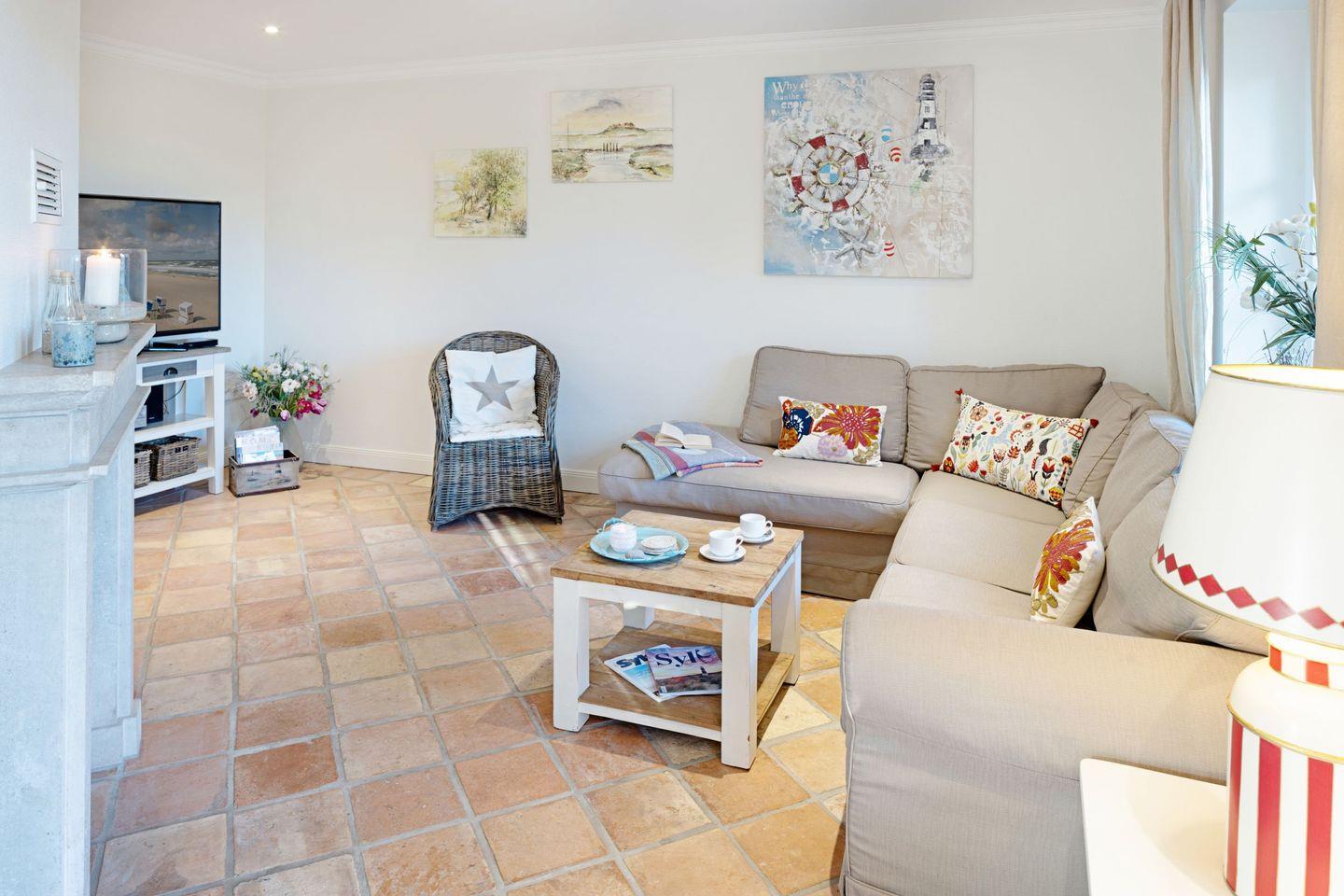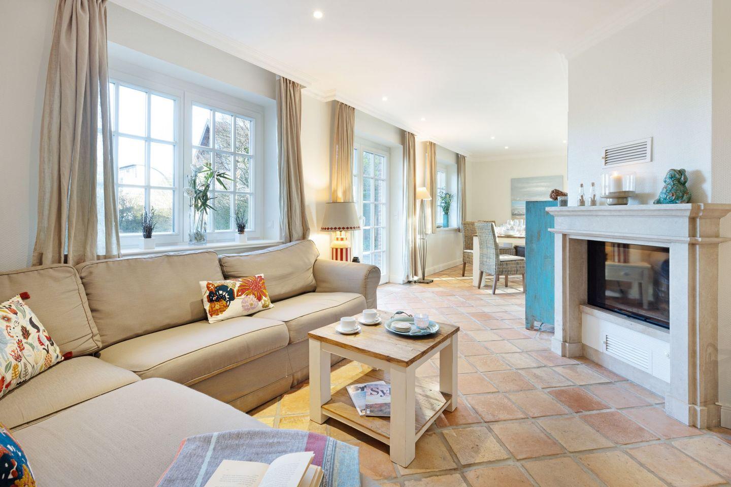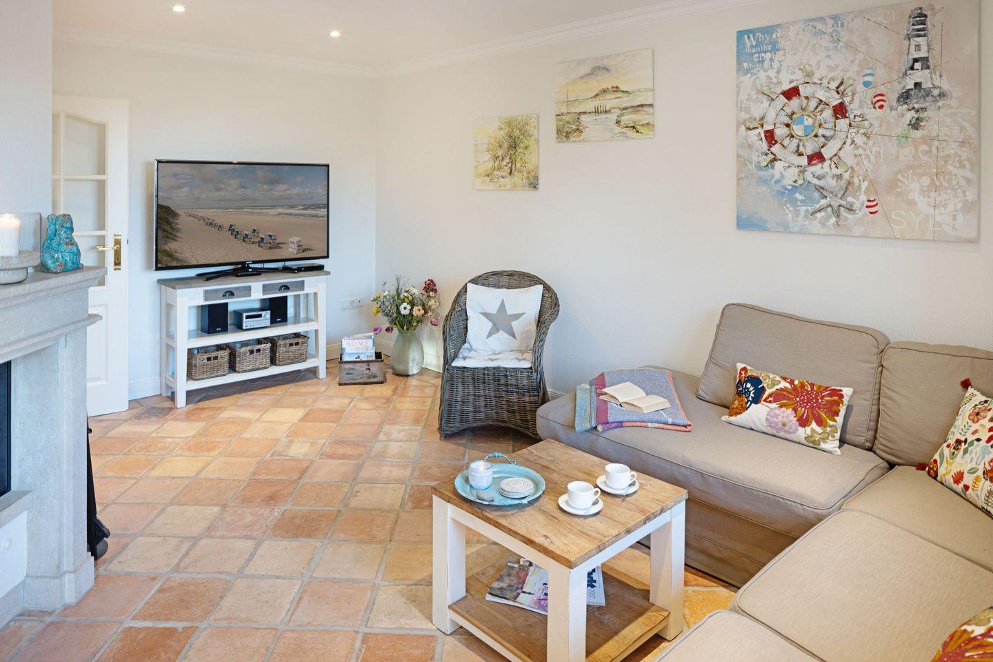 Im Erdgeschoss des Hauses finden Sie neben dem gemütlichen Wohnzimmer mit Kamin und Flachbildfernseher eine