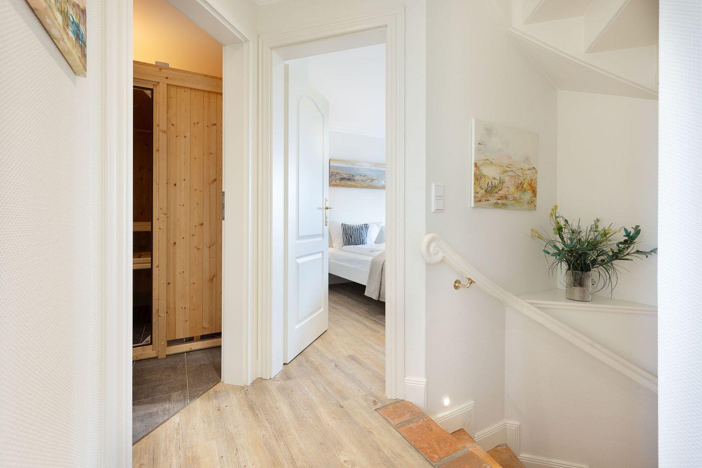 Großzügiges Ferienhaus für sechs Personen mit Kamin, Sauna und Meerblick