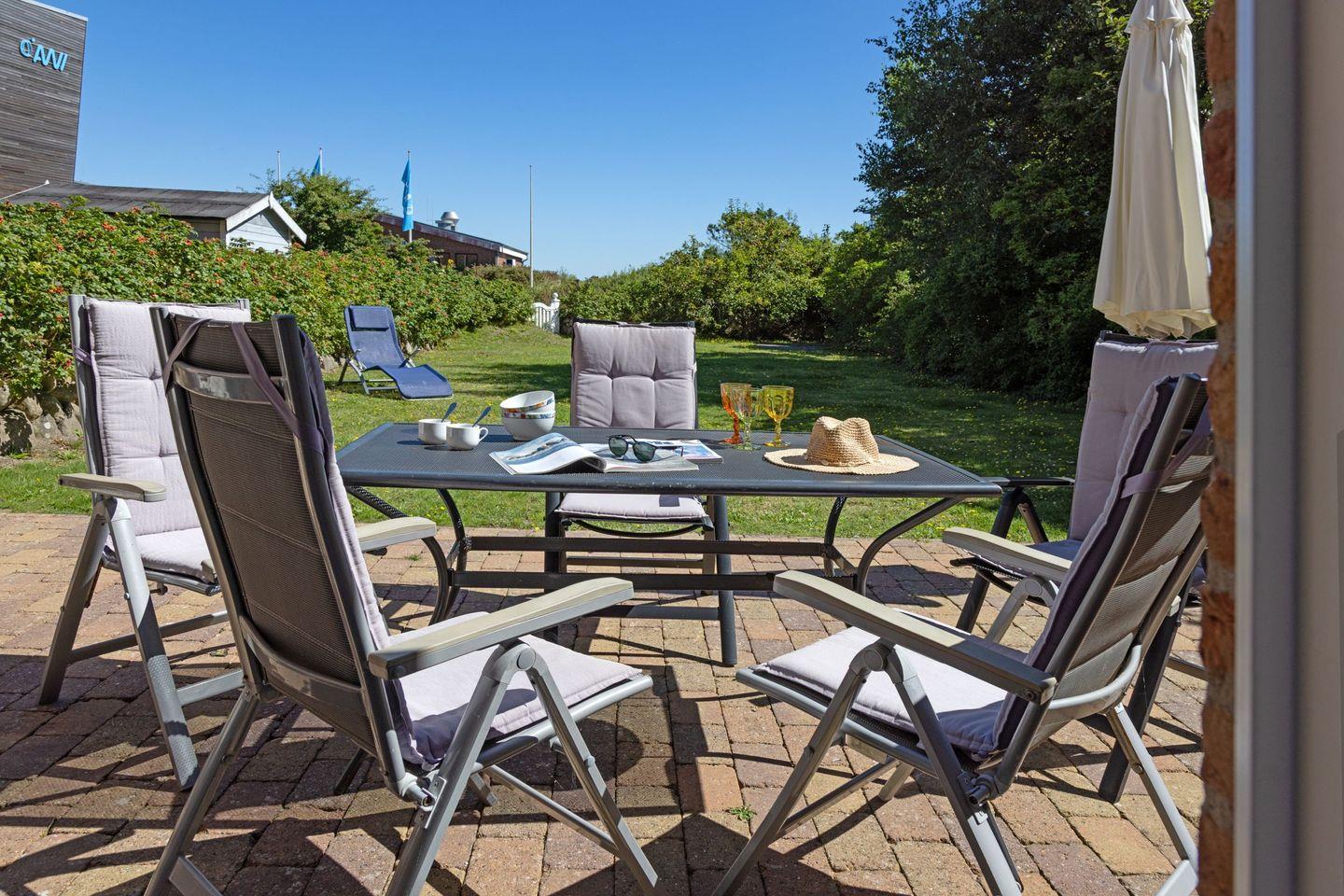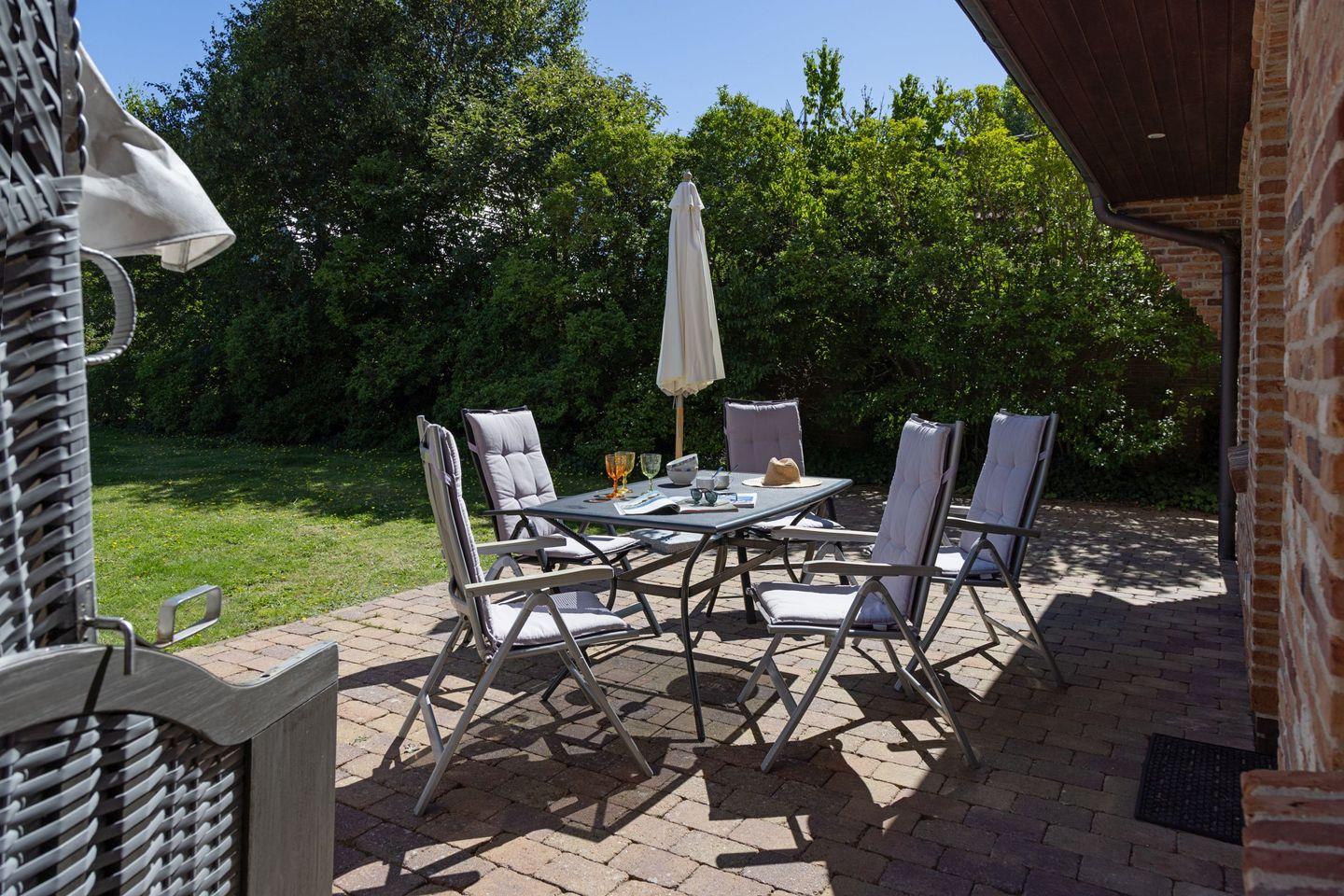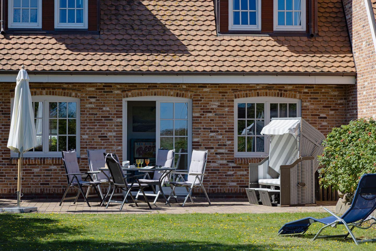 Gartenmöbel und ein Strandkorb stehen Ihnen saisonal begrenzt zur Verfügung.
