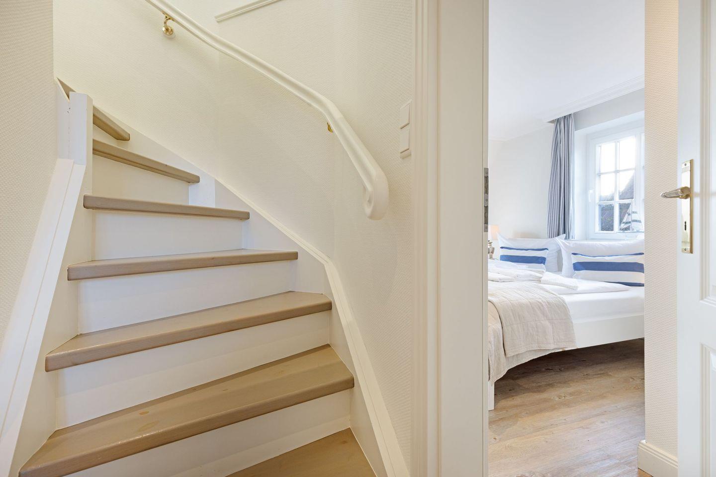 Im ersten Stock des Hauses finden sie zwei Schlafzimmer mit Doppelbett und Fernseher (eingeschränkter Meerblick).