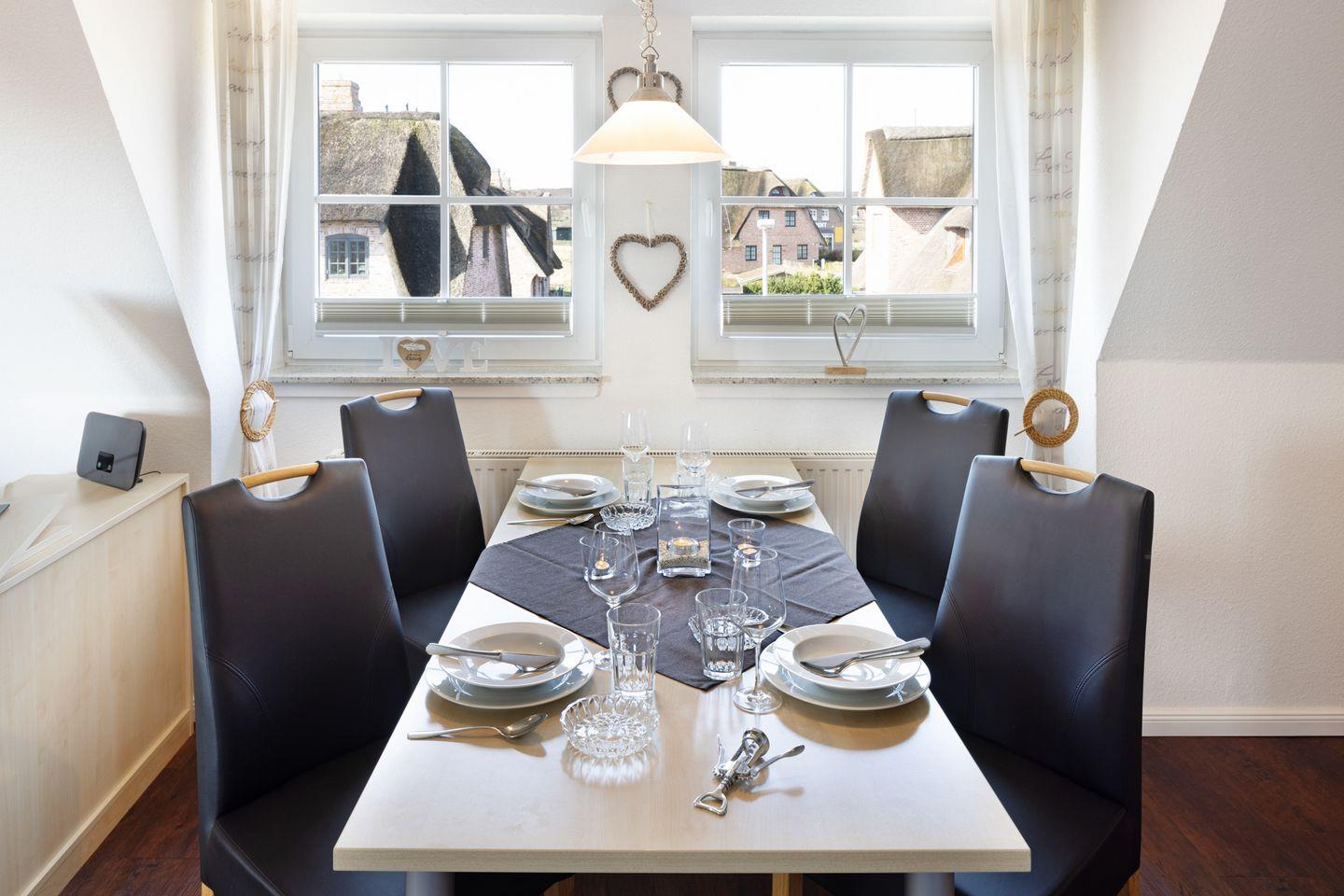 Eine der besonderen Highlights des Appartement Meier ist die private Terrasse. Ob Sie einen Kaffee am Morgen genießen oder den Tag bei einem Glas Wein ausklingen lassen möchten, die Terrasse bietet Ihnen einen angenehmen Ort, um die frische Sylter Luft zu genießen.
