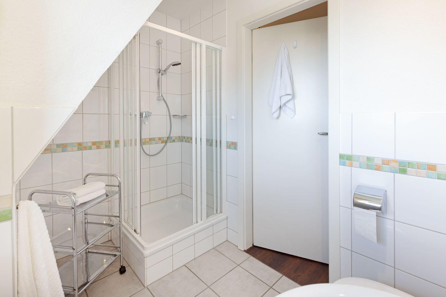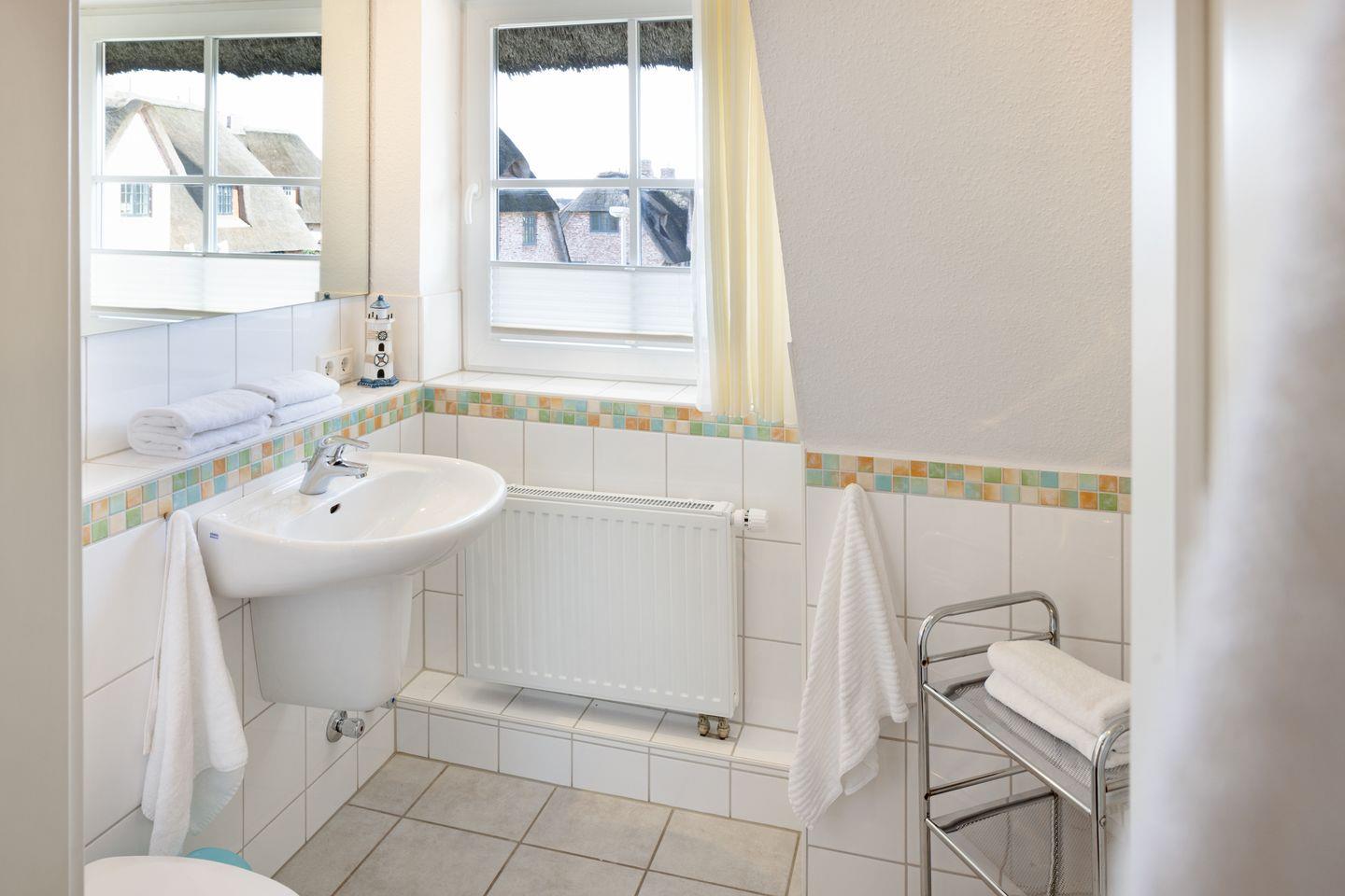 Das moderne Badezimmer ist funktional gestaltet und erfüllt alle Bedürfnisse für Ihren Aufenthalt.