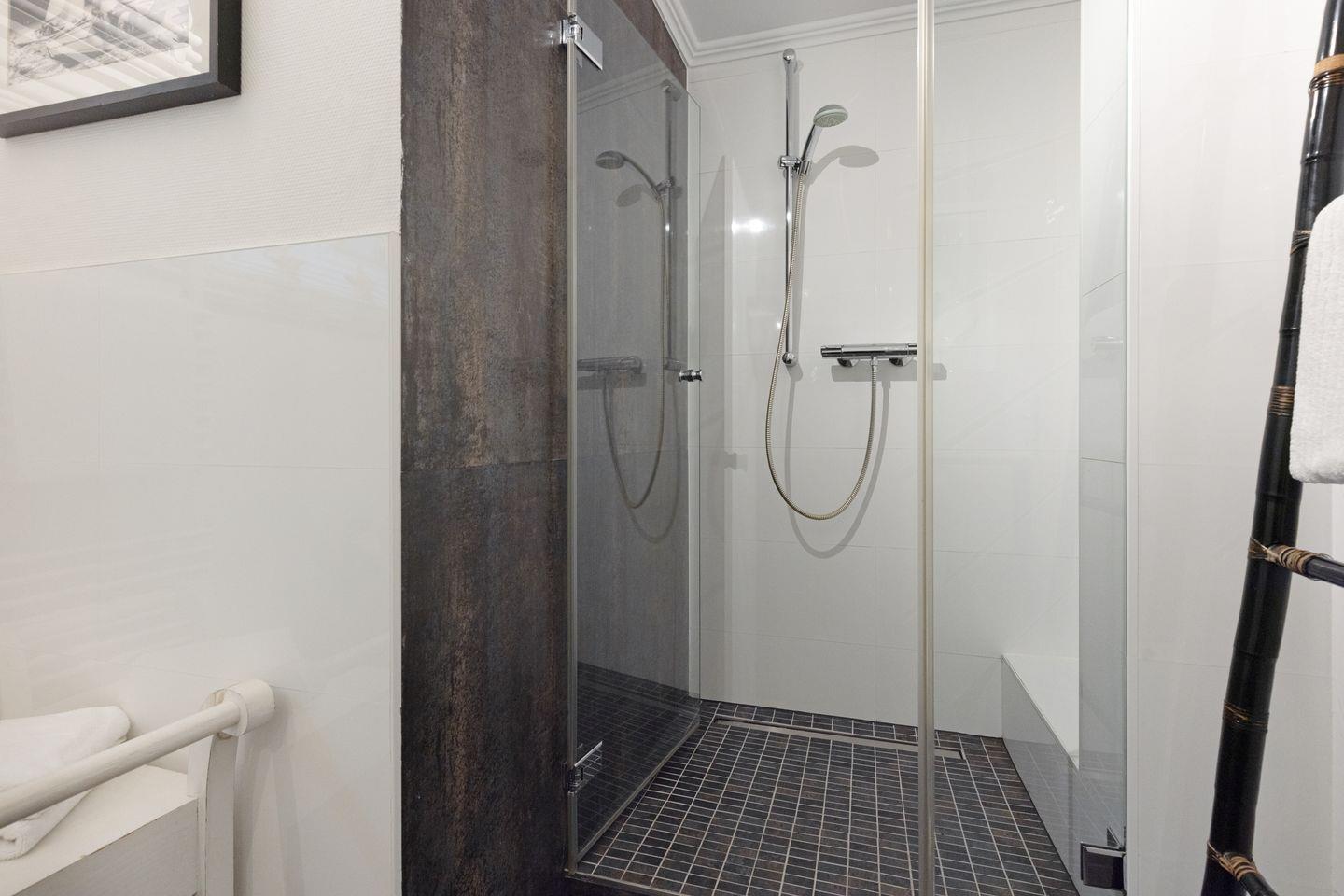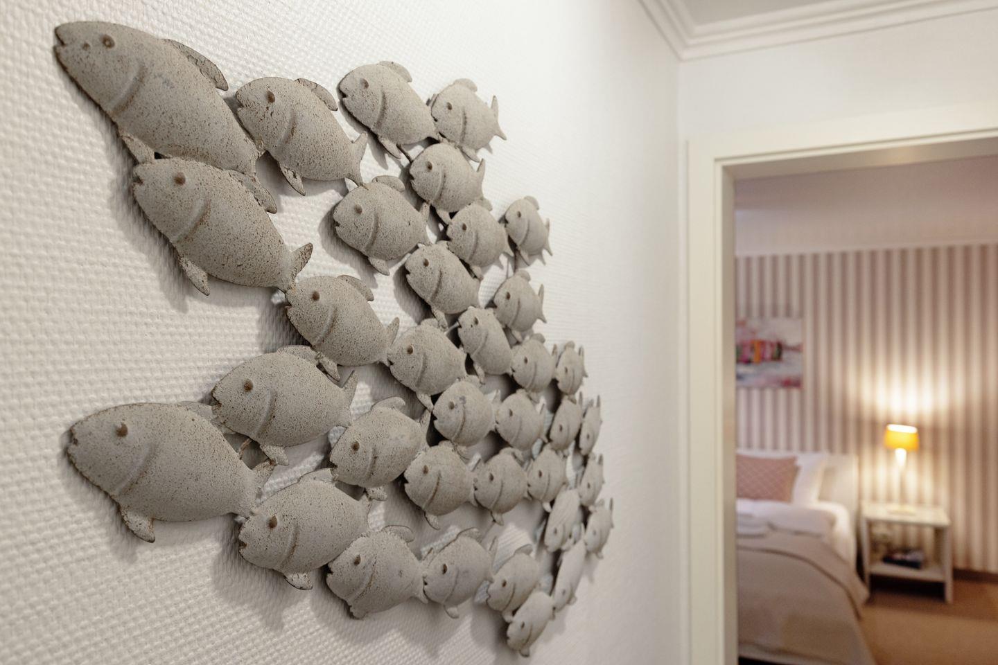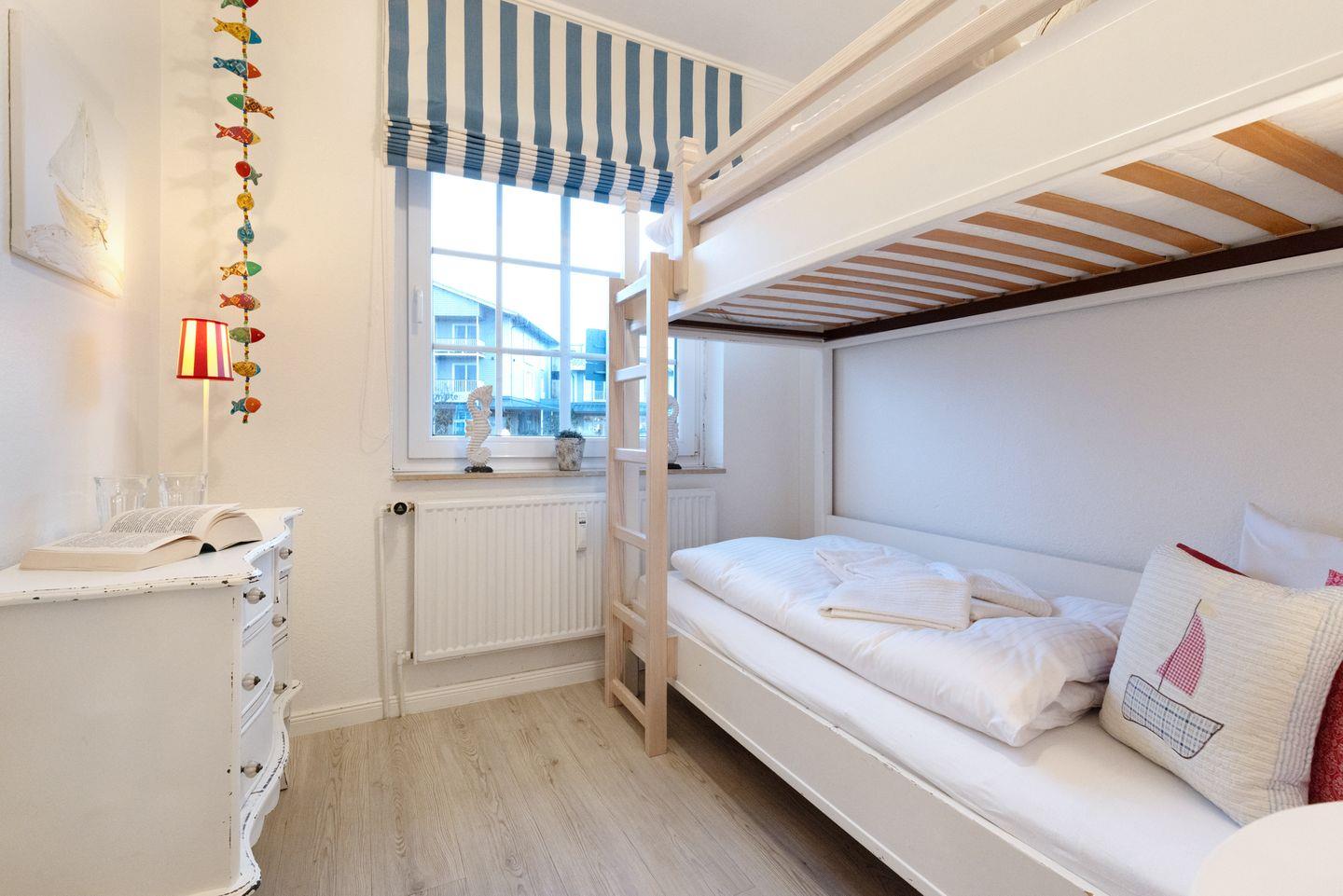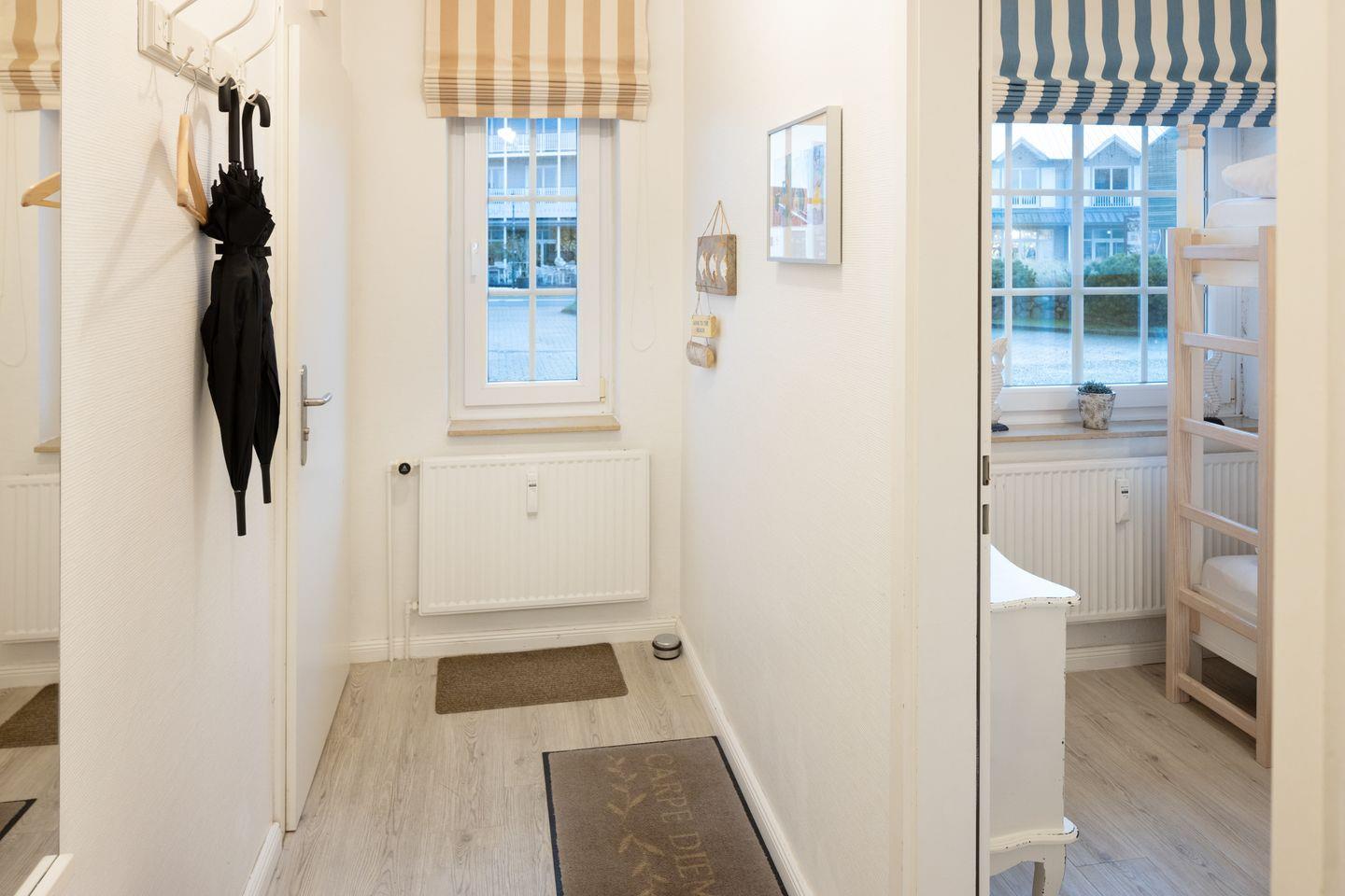 Über den charmant gestalteten Flur gelangen Sie in die untere Ebene des Appartements. Hier befinden sich zwei weitere komfortable Schlafzimmer, jeweils mit Doppelbetten ausgestattet, die für erholsame Nächte sorgen. Ergänzt wird diese Etage durch ein Badezimmer sowie ein zusätzliches Gäste-WC.