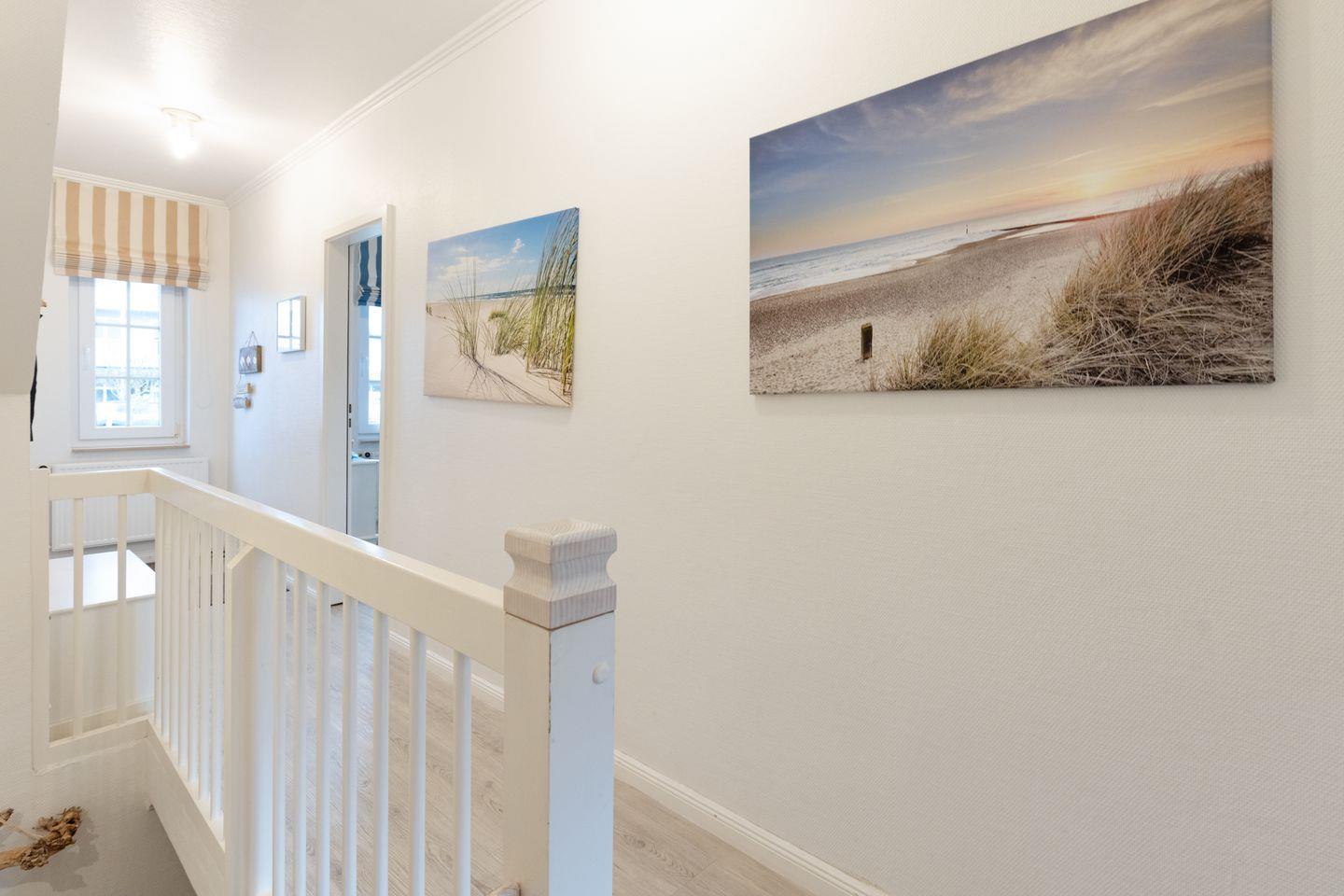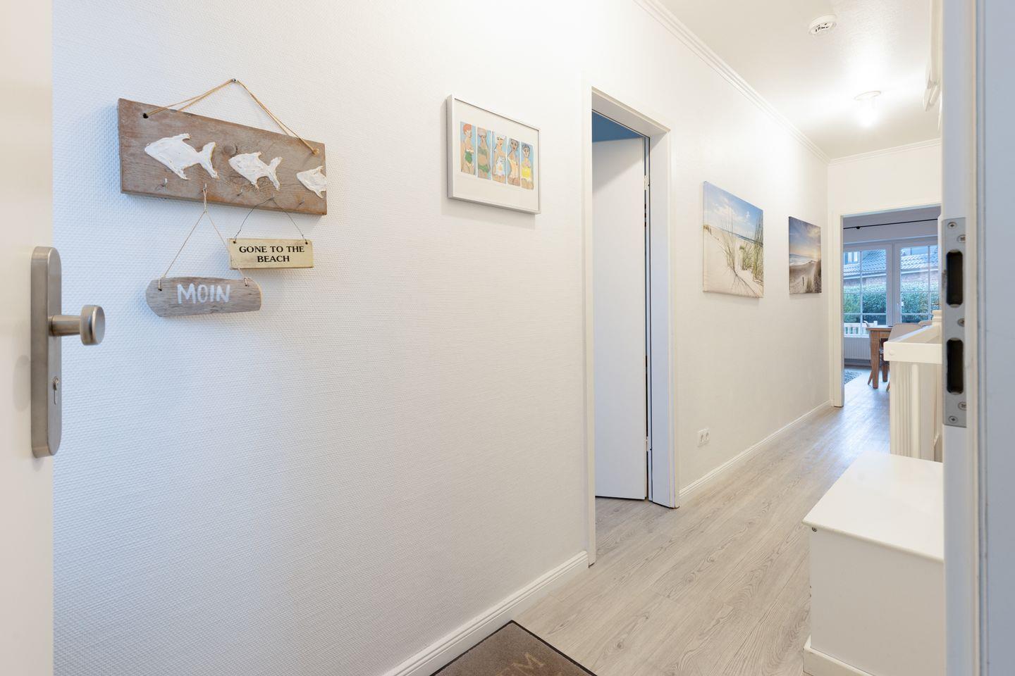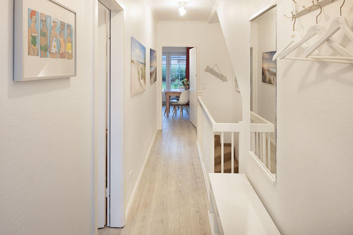 Der Zugang zur Terrasse rundet das Erdgeschoss perfekt ab. Ausgestattet mit Gartenmöbeln und einem Strandkorb lädt sie dazu ein, die frische Luft zu genießen und entspannte Stunden im Freien zu verbringen.