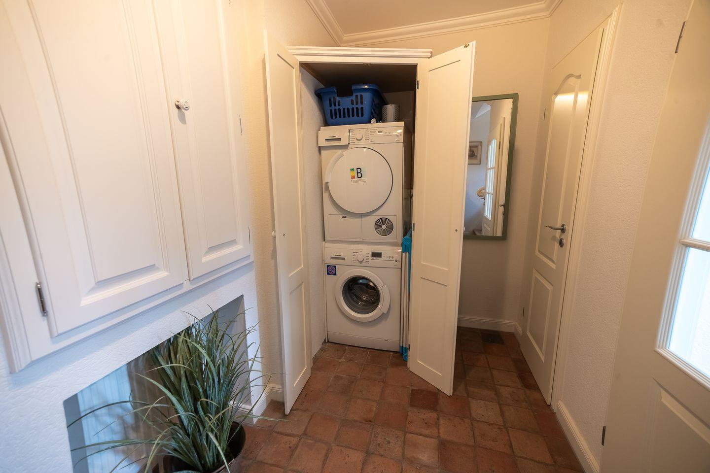 Zu den weiteren Annehmlichkeiten von "Koje 2" gehört die Nutzung von Waschmaschine und Trockner, die sich in einem Gemeinschaftsbereich befinden. Ein Staubsauger sorgt für zusätzliche Sauberkeit, und ein Bügelbrett sowie ein Bügeleisen stehen Ihnen ebenfalls gemeinschaftlich zur Verfügung, sodass Sie Ihre Kleidung ganz mühelos pflegen können.