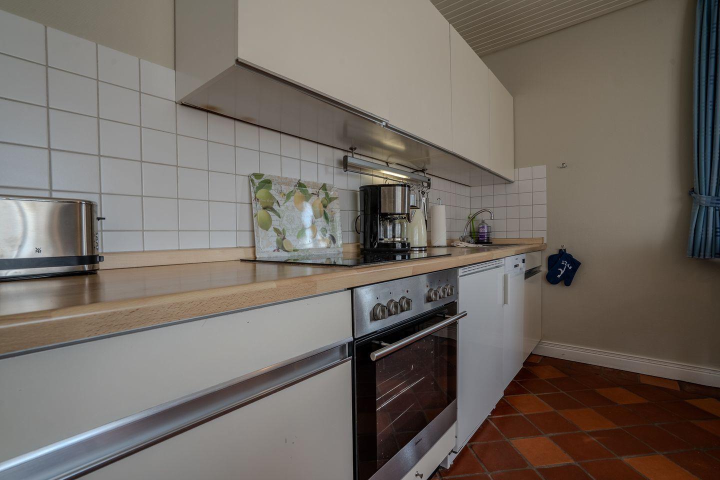 Der großzügige Wohnbereich ist durch eine offene Küche mit Esstisch verbunden und bietet ein Sofa, Sessel sowie einen Fernseher, Radio und kostenloses WLAN. Für Lektürefreunde steht eine kleine Büchersammlung zur Verfügung. Die Küche ist voll ausgestattet mit Ceranherd, Elektrobackofen, Kühlschrank samt Gefrierfach, Spülmaschine, Kaffeemaschine, Wasserkocher, Toaster, Mixer sowie sämtlichen nötigen Küchenutensilien, Geschirr und Besteck.