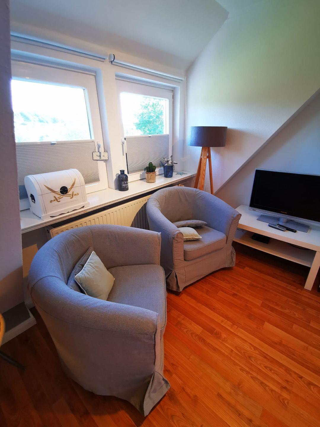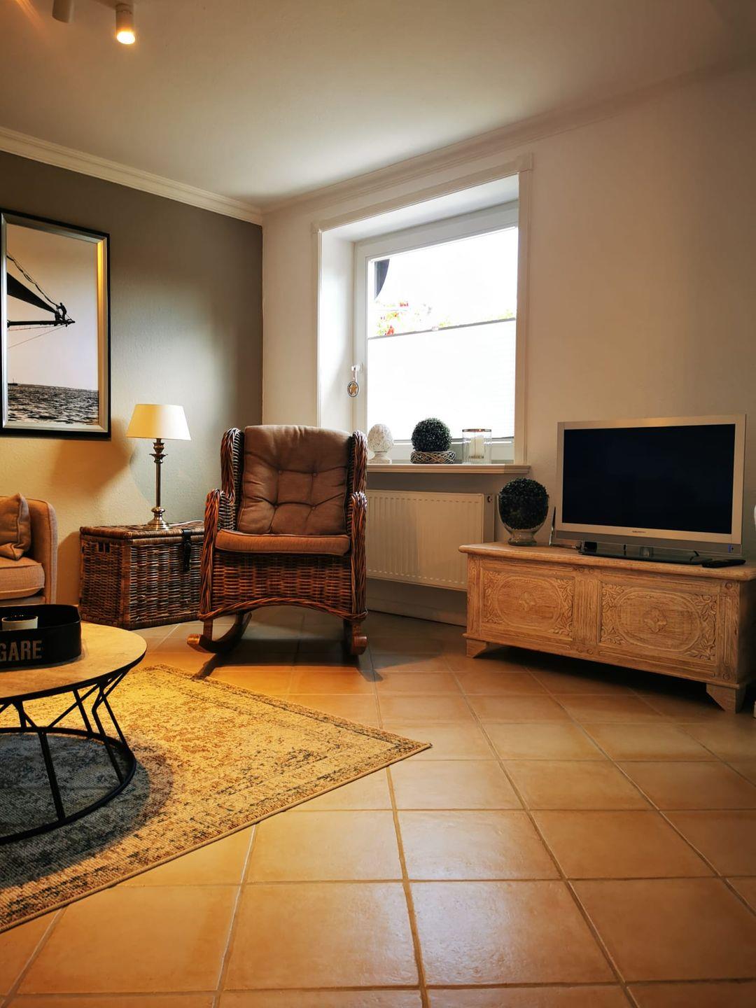 Der einladende Wohnbereich überzeugt mit einer gemütlichen Sofaecke, Sessel, Kommode, Ganzkörperspiegel, digitalem TV (insgesamt drei Geräte mit Bilddiagonalen zwischen 35 und 44 Zoll), einer Auswahl an Büchern und Spielen sowie einem Essbereich mit großem Esstisch. Für wohlige Wärme außerhalb der Sommermonate sorgt die installierte Heizung. Zudem steht kostenfreies WLAN und Internet zur Verfügung, sodass Sie auch während Ihres Aufenthaltes stets gut vernetzt sind.