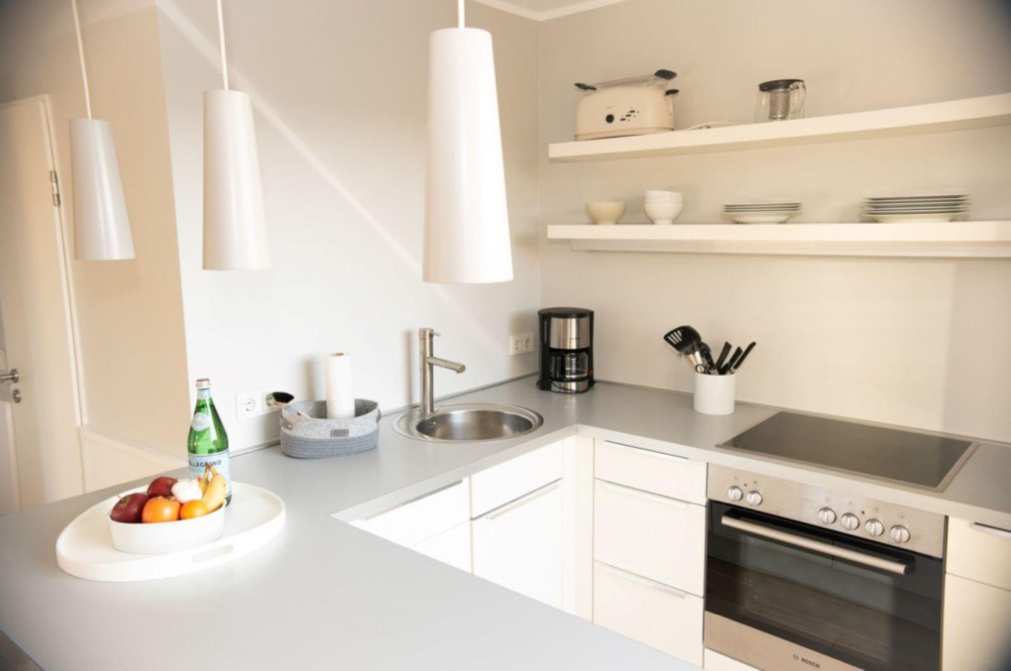 Zu den Highlights der Ausstattung zählt der Zugang zu einem eigenen Balkon. Hier können Sie entspannte Stunden im Freien verbringen und den Tag ausklingen lassen. Die offene Küche ist vollständig eingerichtet und bietet Ihnen neben einem modernen Ceranherd, Backofen und Kühlschrank mit integriertem Gefrierfach auch eine Spülmaschine, Kaffeemaschine, Wasserkocher, Toaster sowie diverse Küchenutensilien. Im gemütlichen Wohnbereich laden eine Sofaecke und ein Fernseher zum Verweilen ein.