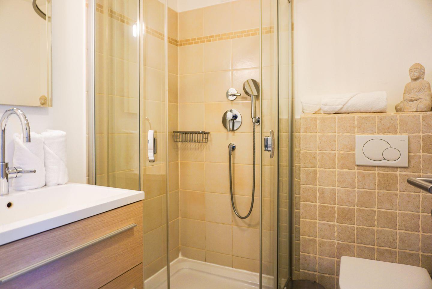 Im Badezimmer finden Sie eine Dusche, ein WC, ein Waschbecken, Spiegel und einen Haartrockner.. Die gesamte Unterkunft ist als Nichtraucherwohnung ausgewiesen; Haustiere sind jedoch ausdrücklich willkommen. Ein Rauchmelder sorgt für Sicherheit. Kinder werden sich beim Spielen oder mit den bereitgestellten Büchern wohlfühlen.