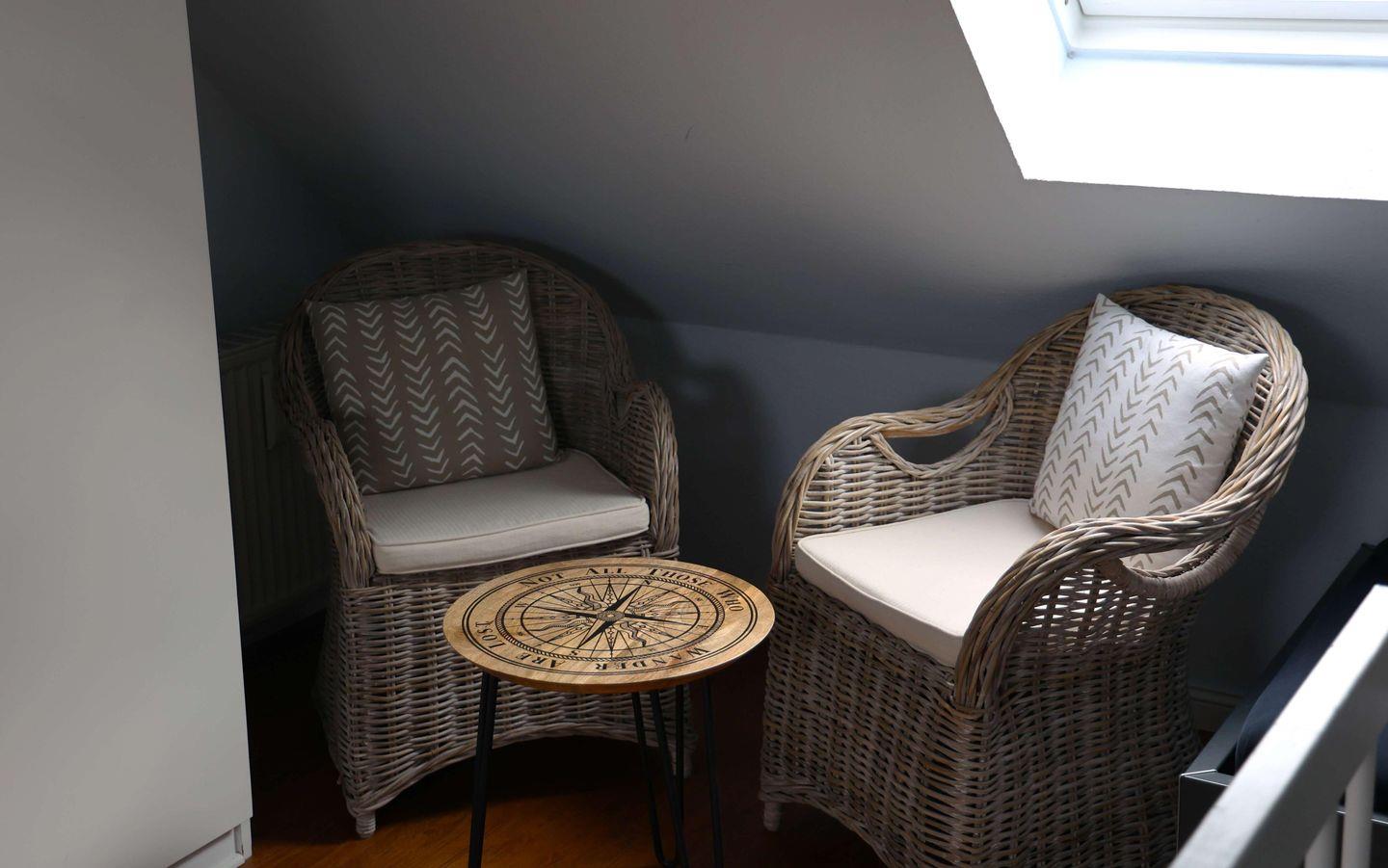 Ein weiteres herausragendes Merkmal ist der zur Wohnung gehörende Strandkorb, der für schöne, entspannte Stunden auf dem Balkon einlädt. Die gesamte Unterkunft ist für Nichtraucher.