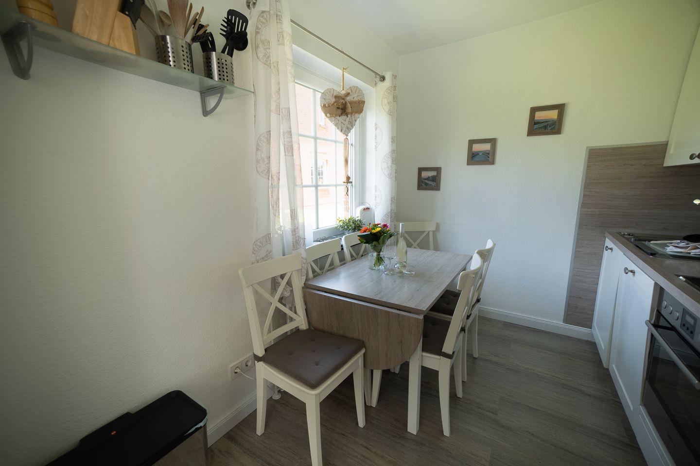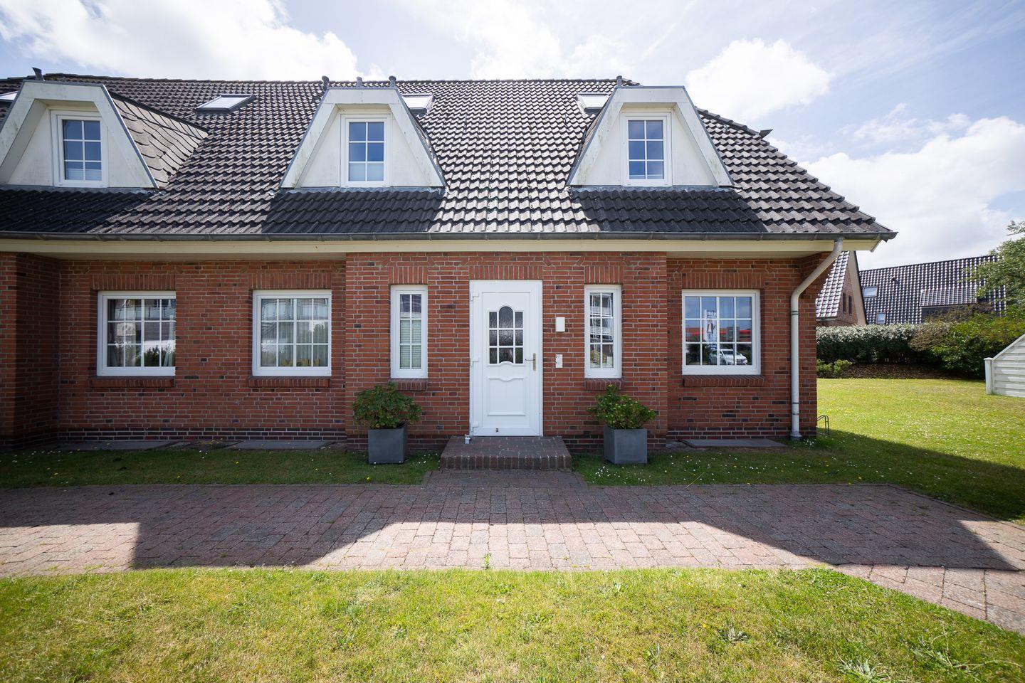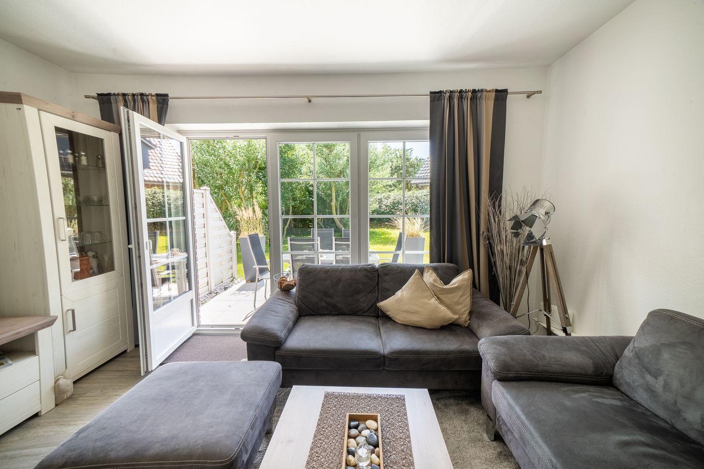 Ihr privater, möblierter Terrassenbereich mit Gartenblick lädt zum Verweilen ein und bietet dank Gartenmöbeln die Möglichkeit, die frische Nordseeluft zu genießen.